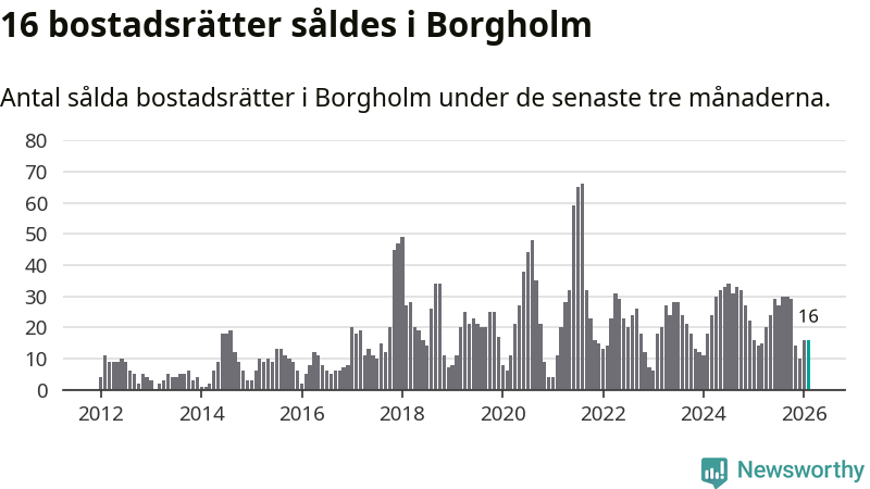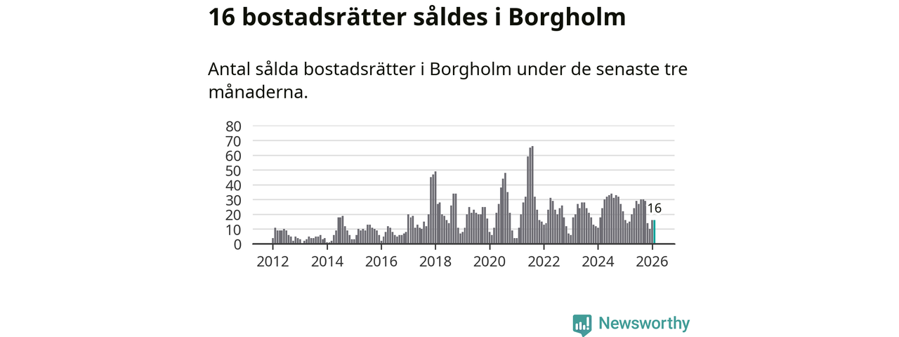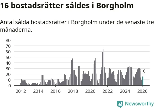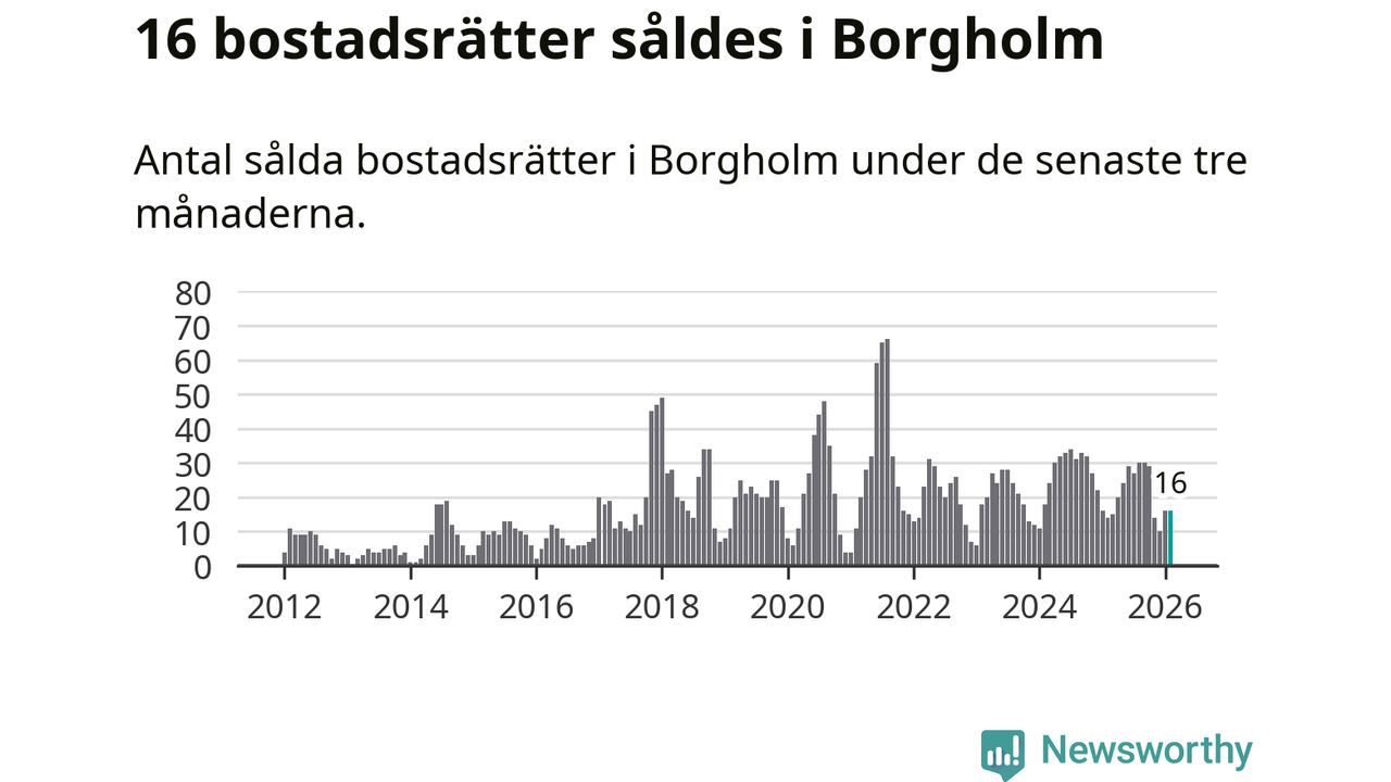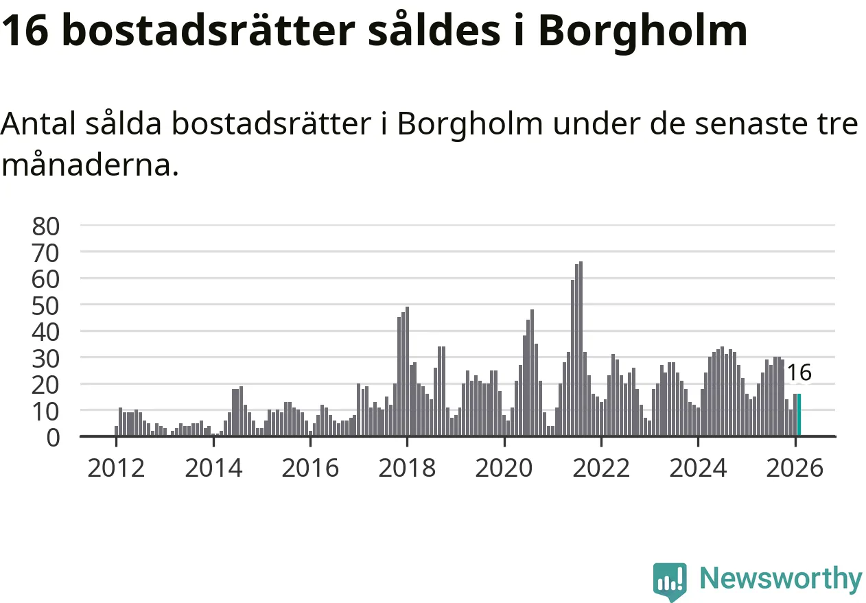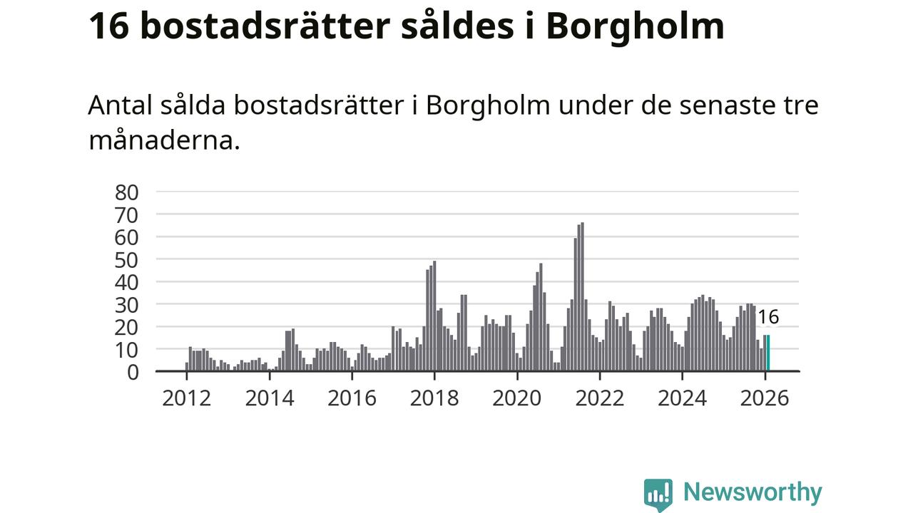 Mellan december och februari gjordes sammanlagt 16 affärer med bostadsrätter i Borgholms kommun. Det kan jämföras med 14 vid motsvarande tid i fjol.