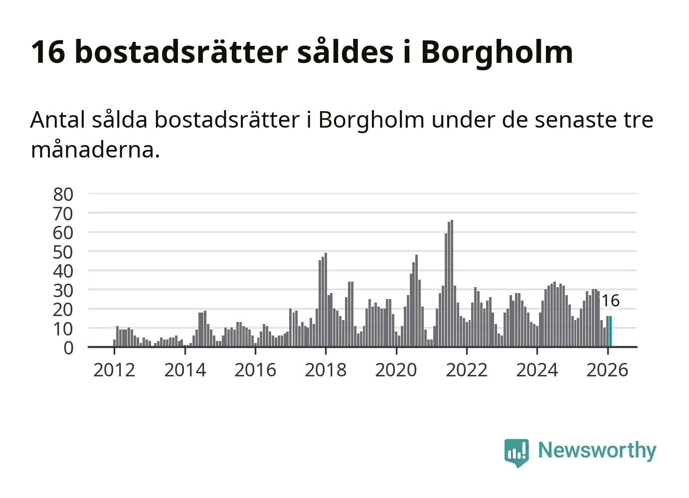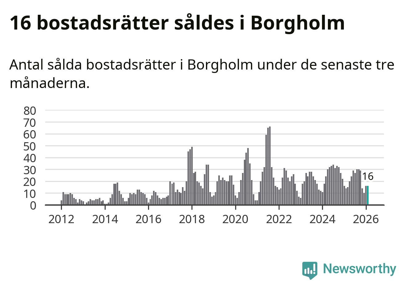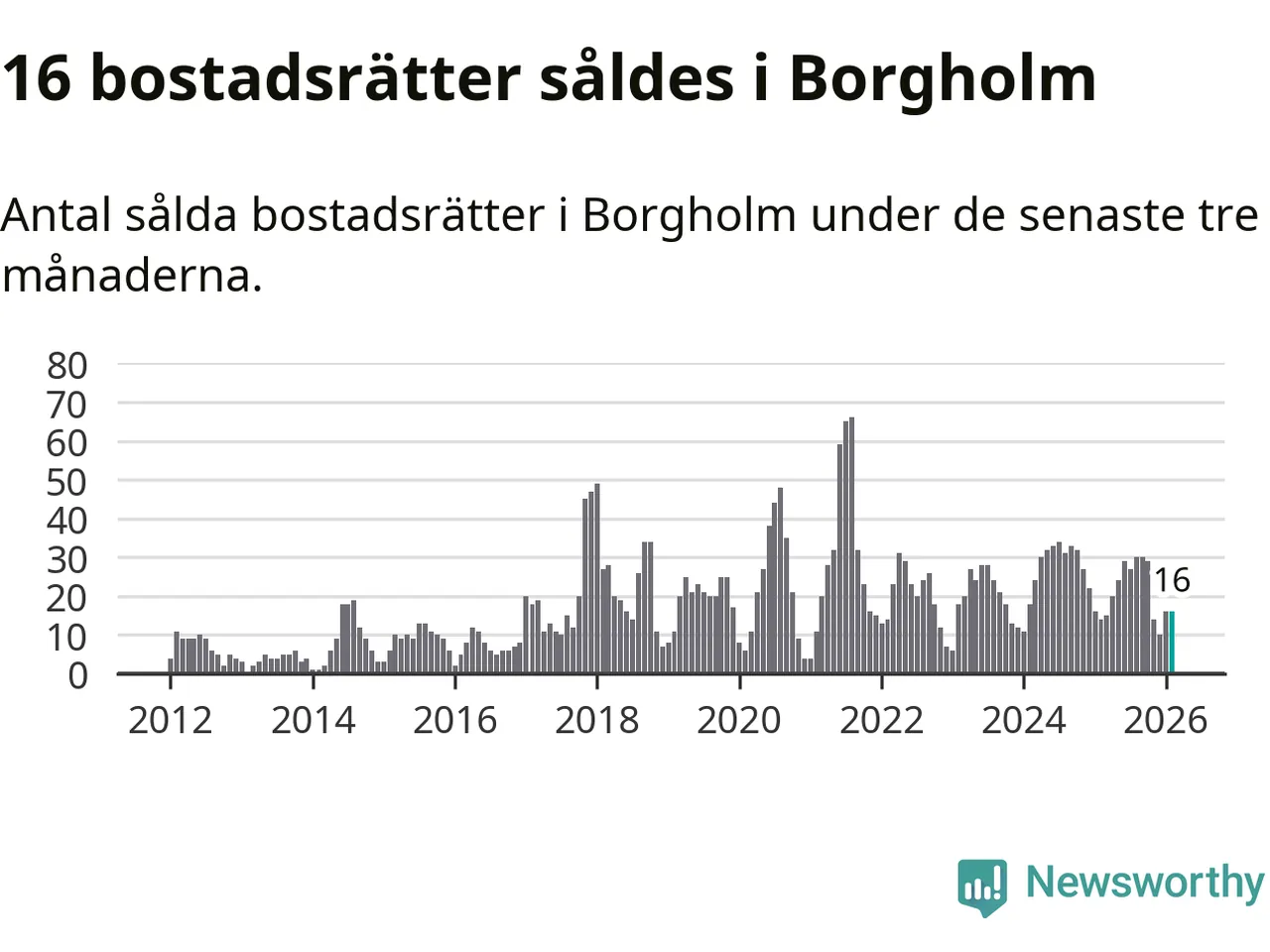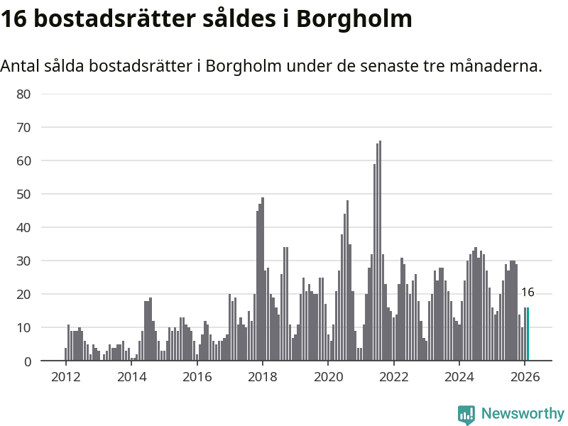 Mellan december och februari gjordes sammanlagt 16 affärer med bostadsrätter i Borgholms kommun. Det kan jämföras med 14 vid motsvarande tid i fjol.