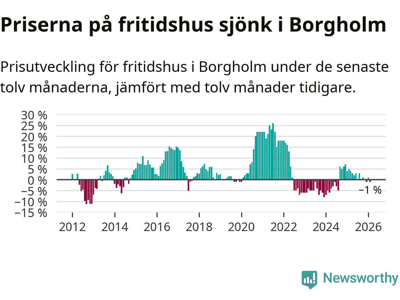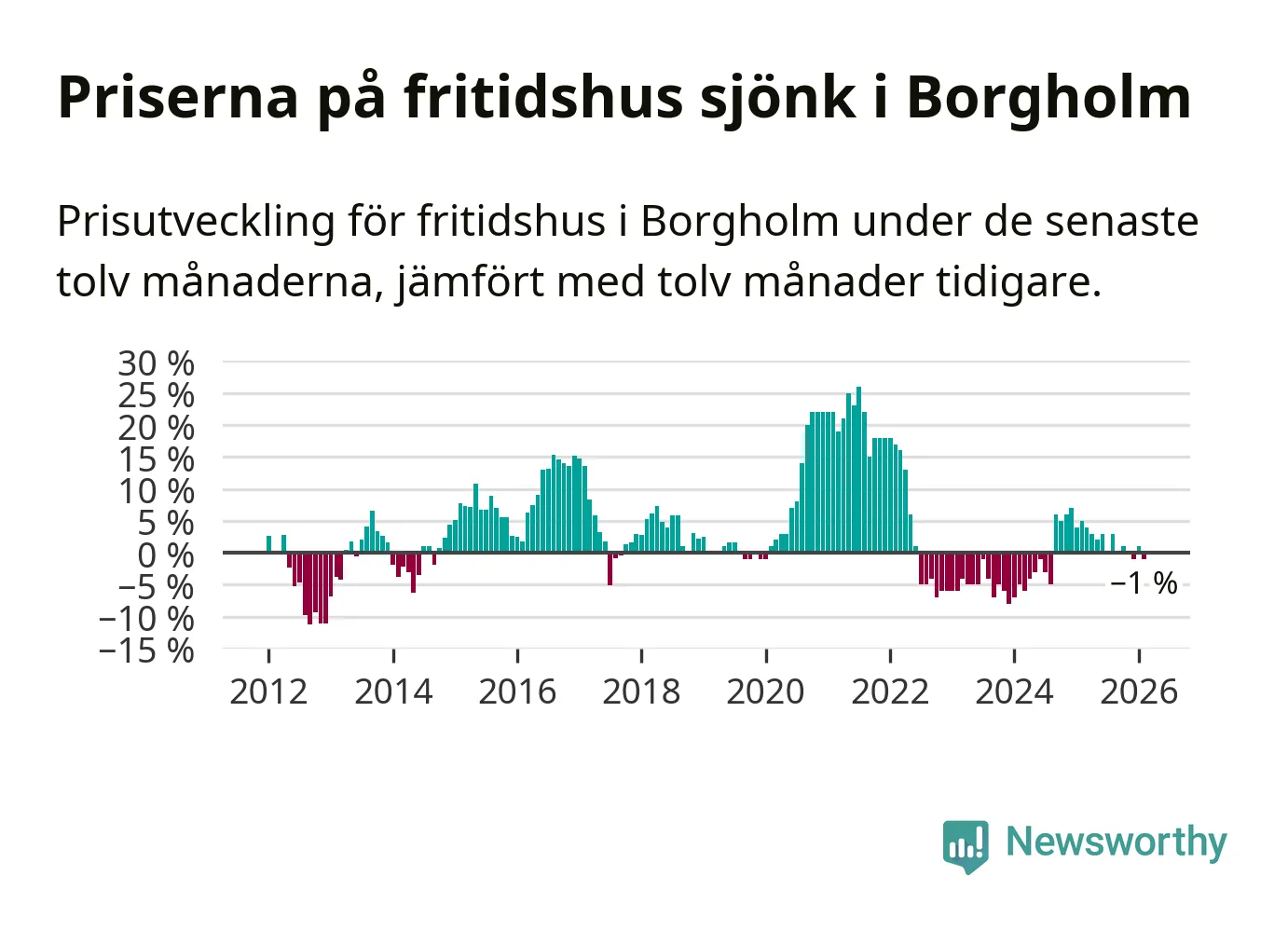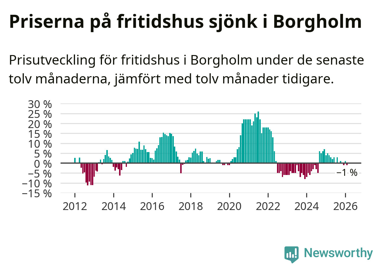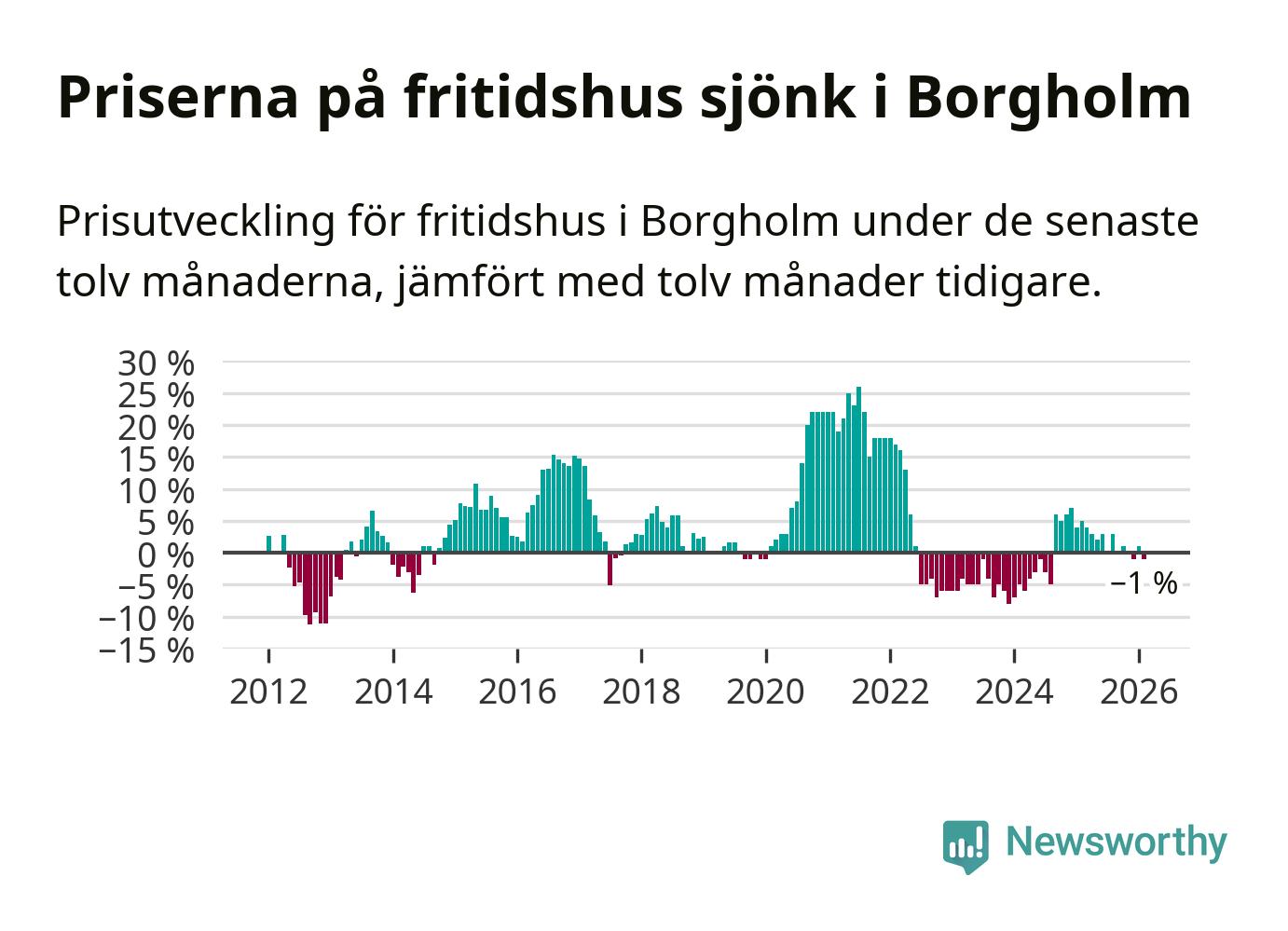 Priserna på fritidshus har gått ner i Borgholms kommun. Medelpriset på försäljningarna under de senaste tolv månaderna visar på en nedgång med 1 procent.