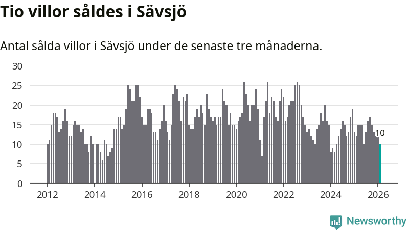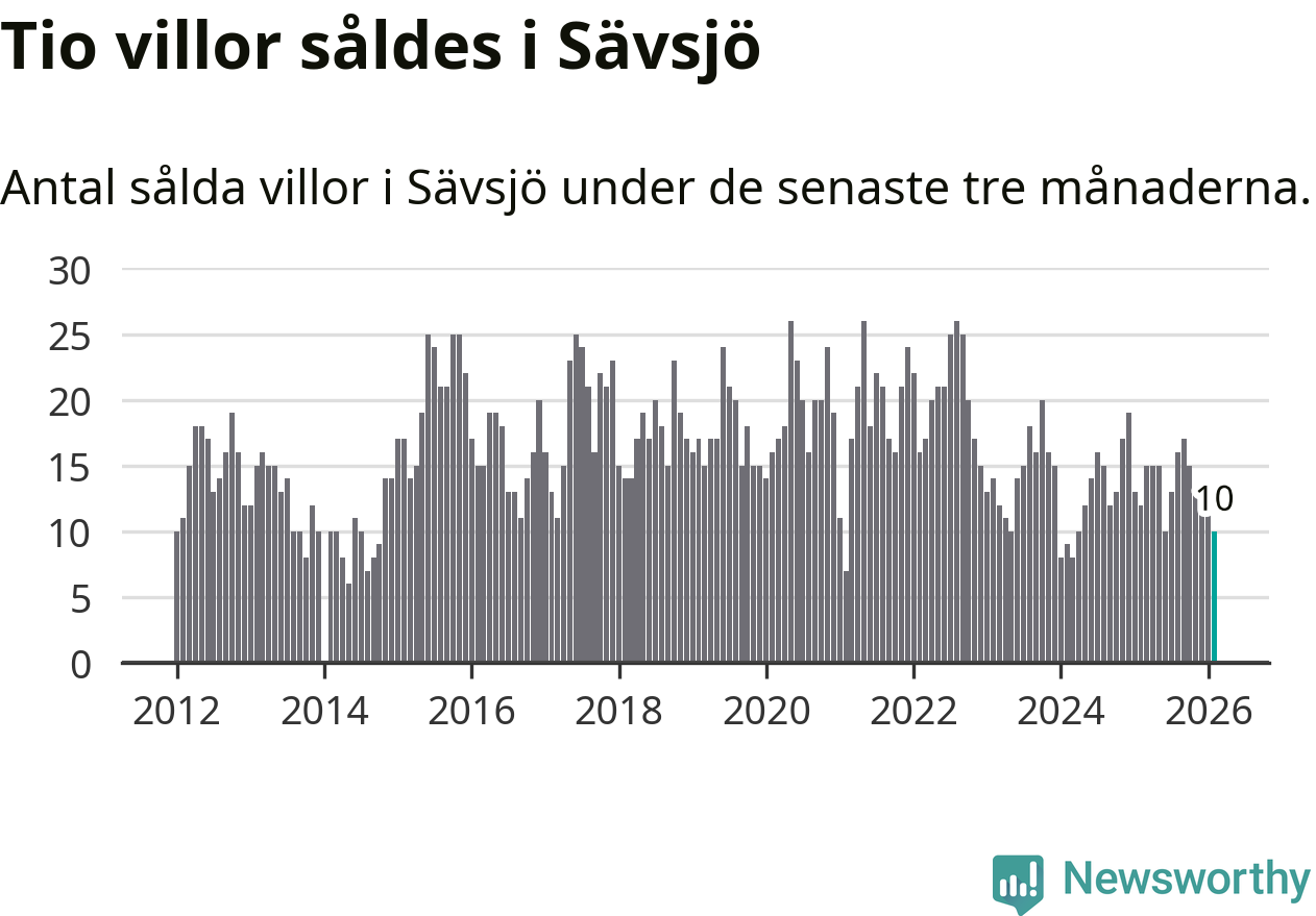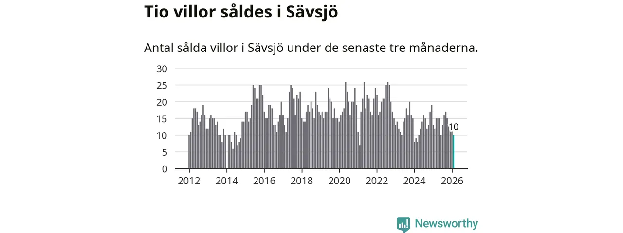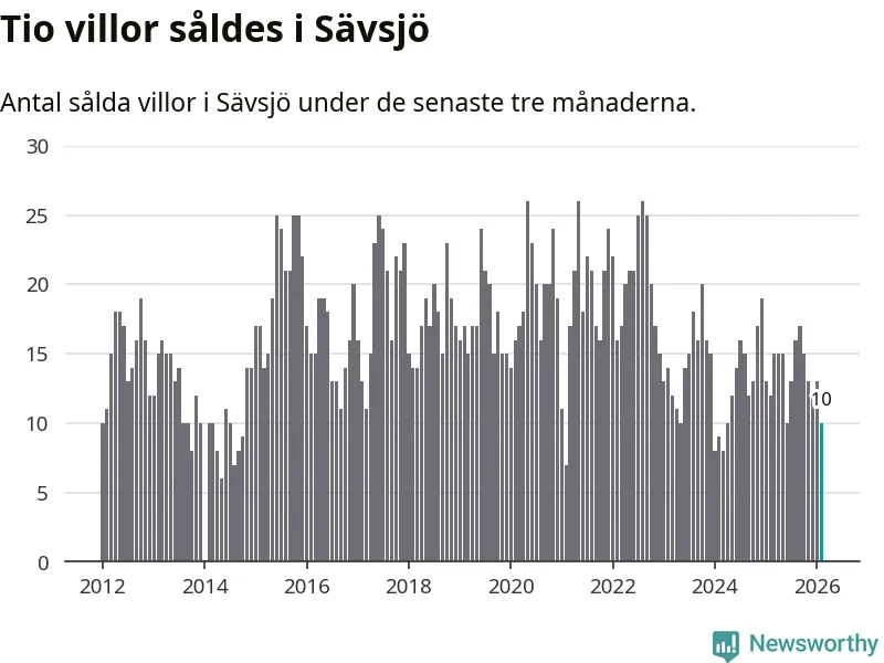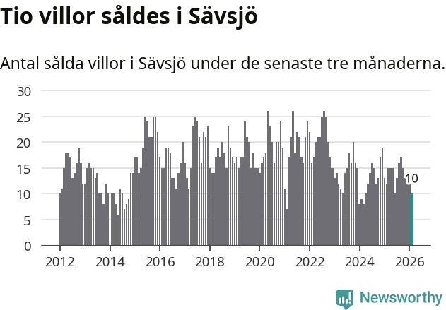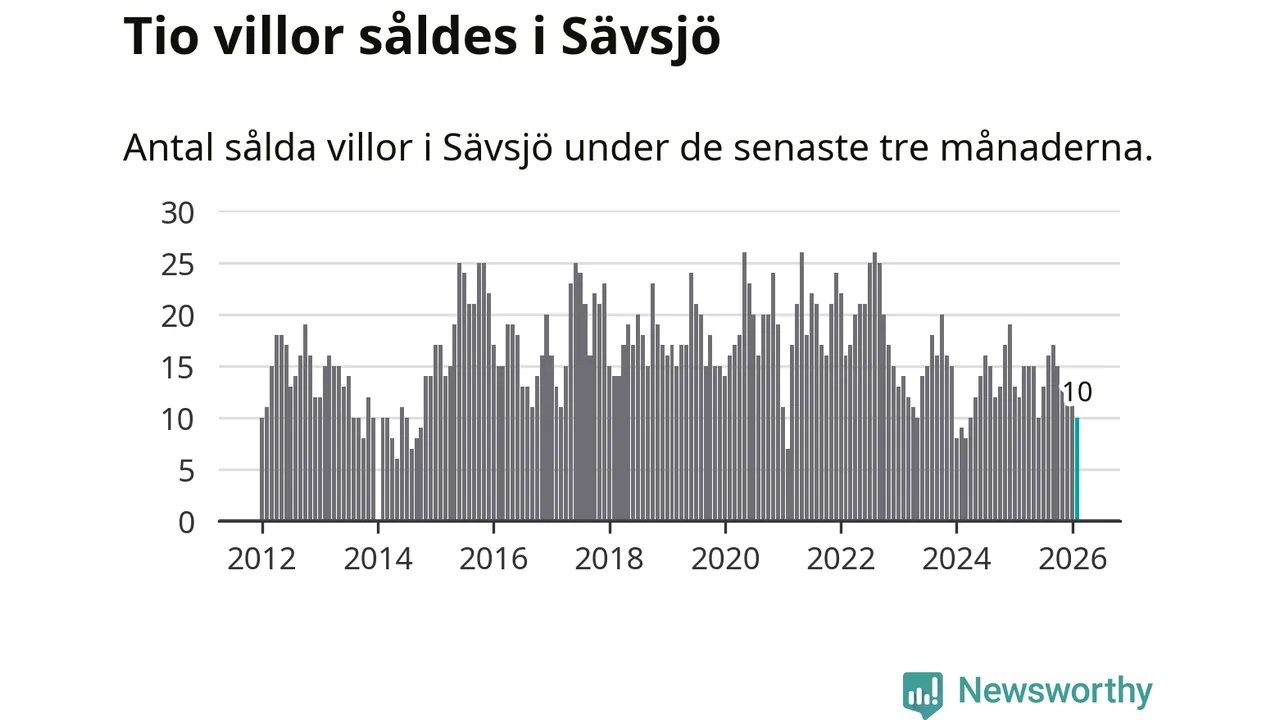 Mellan december och februari gjordes sammanlagt tio affärer med villor i Sävsjö kommun. Det kan jämföras med tolv vid motsvarande tid i fjol.