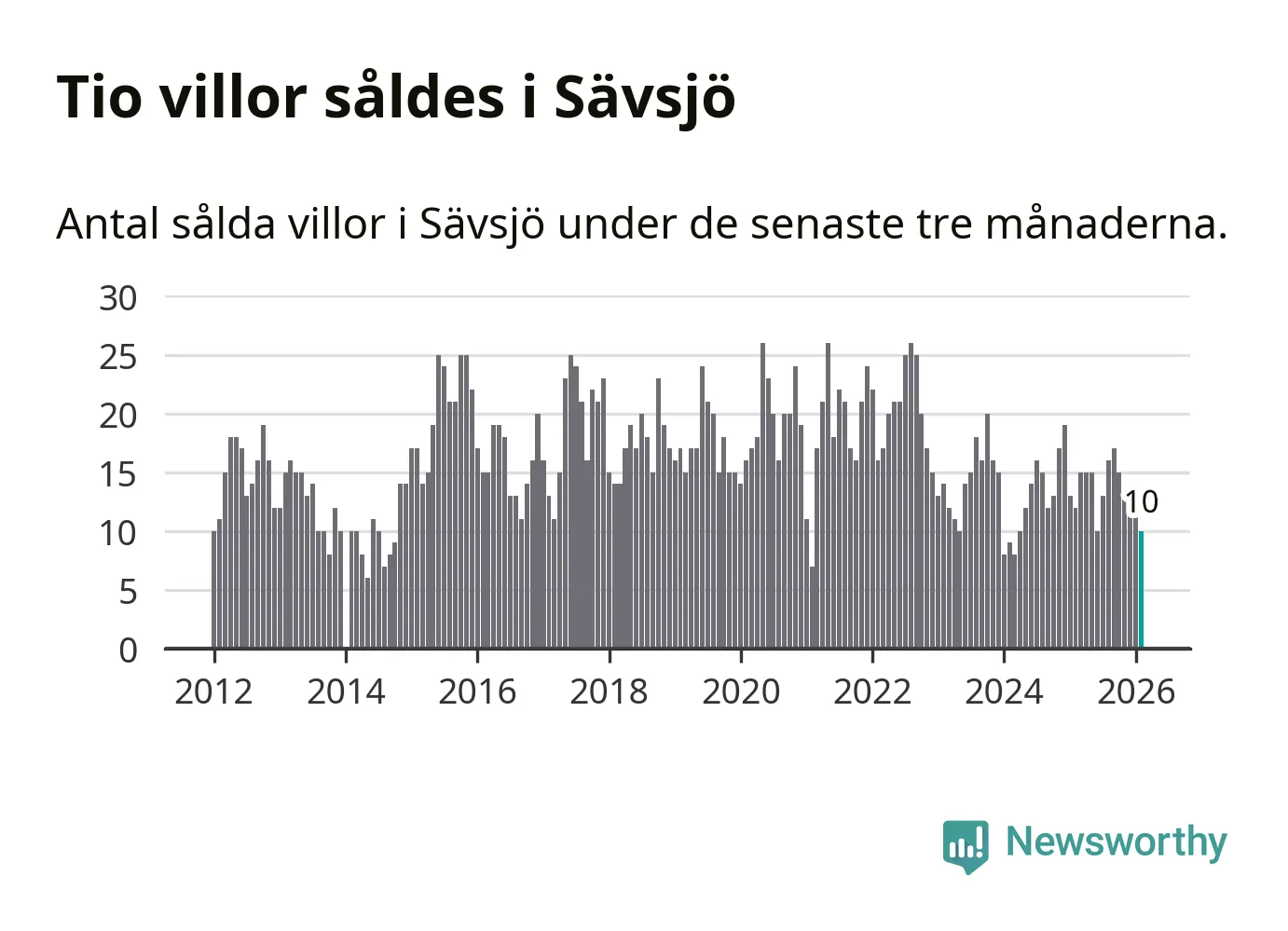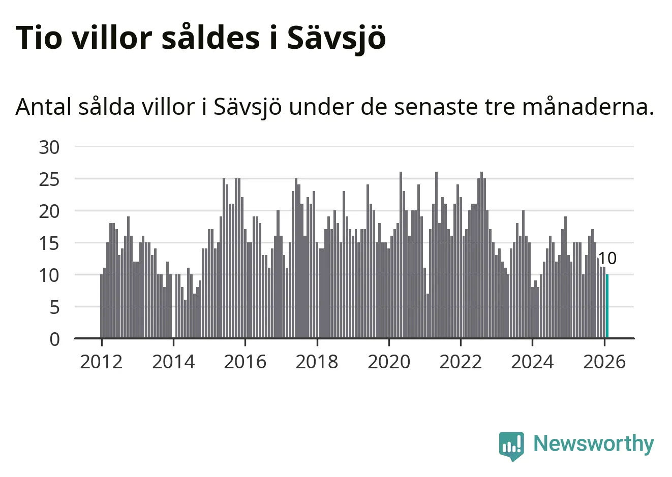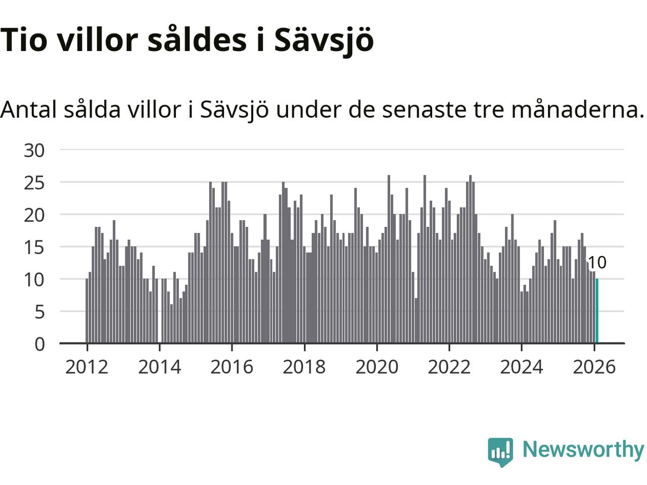 Mellan december och februari gjordes sammanlagt tio affärer med villor i Sävsjö kommun. Det kan jämföras med tolv vid motsvarande tid i fjol.