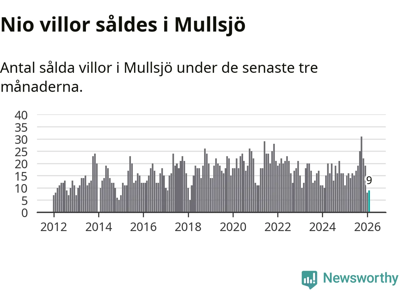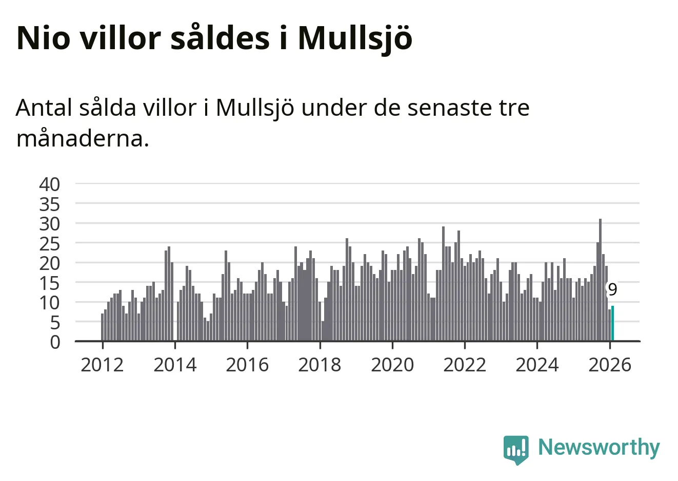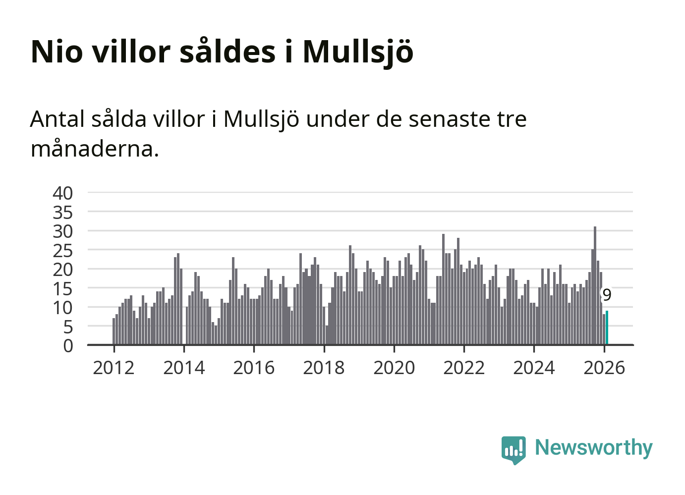 Mellan december och februari gjordes sammanlagt nio affärer med villor i Mullsjö kommun. Det kan jämföras med 15 vid motsvarande tid i fjol.