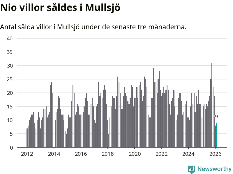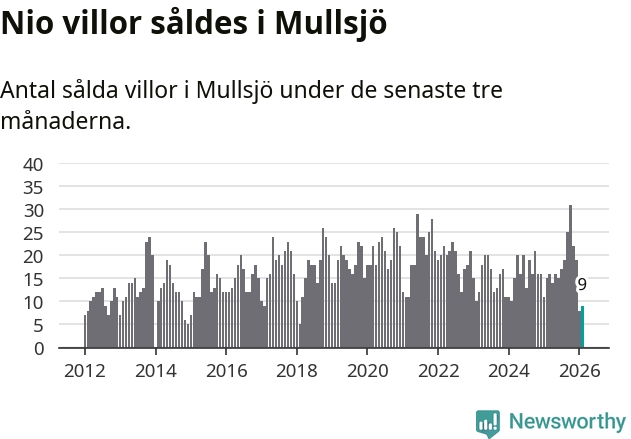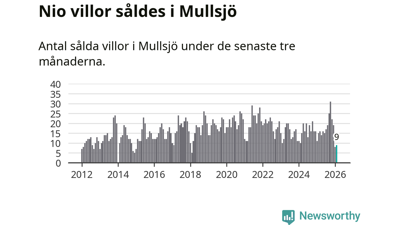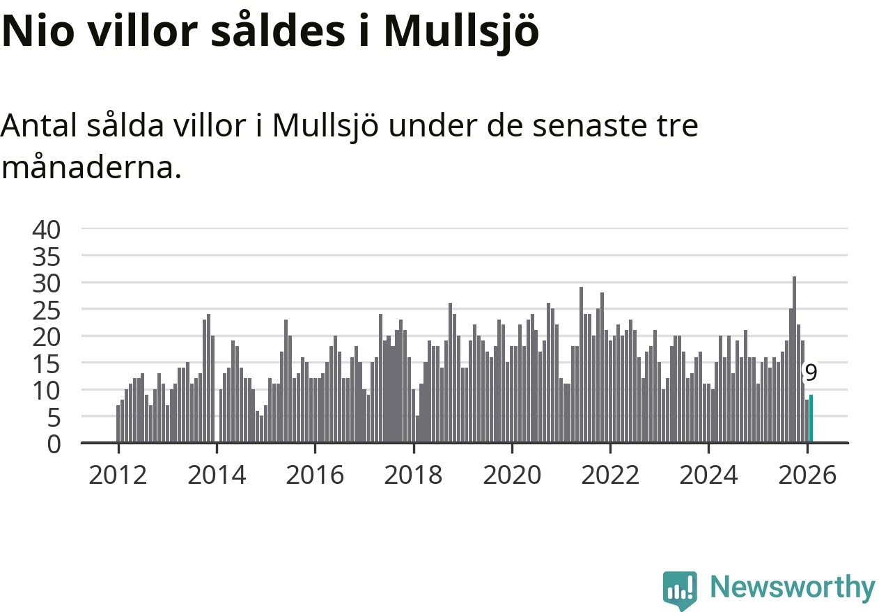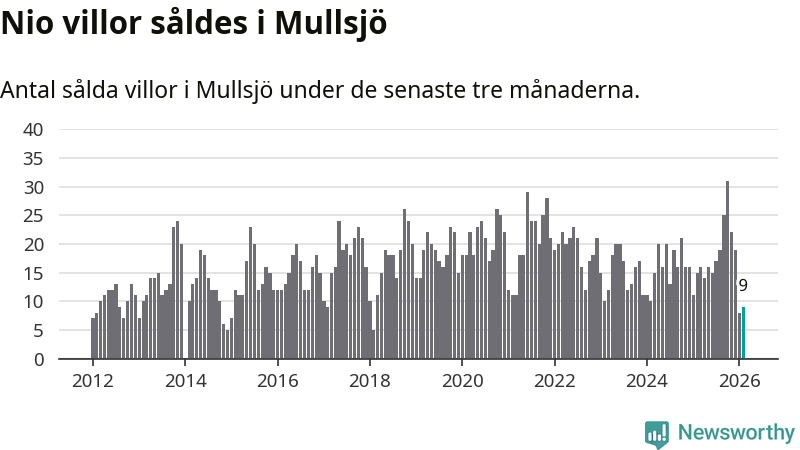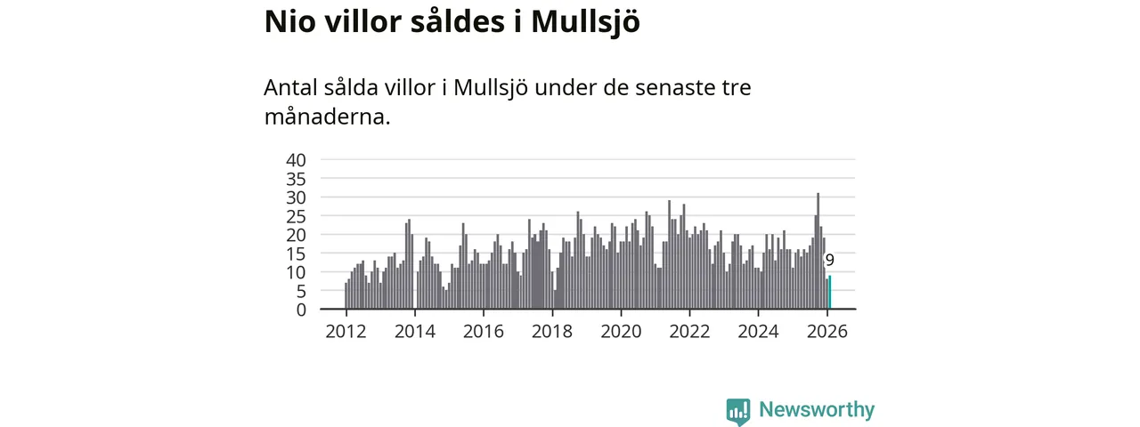 Mellan december och februari gjordes sammanlagt nio affärer med villor i Mullsjö kommun. Det kan jämföras med 15 vid motsvarande tid i fjol.