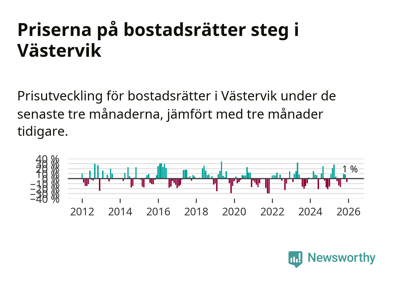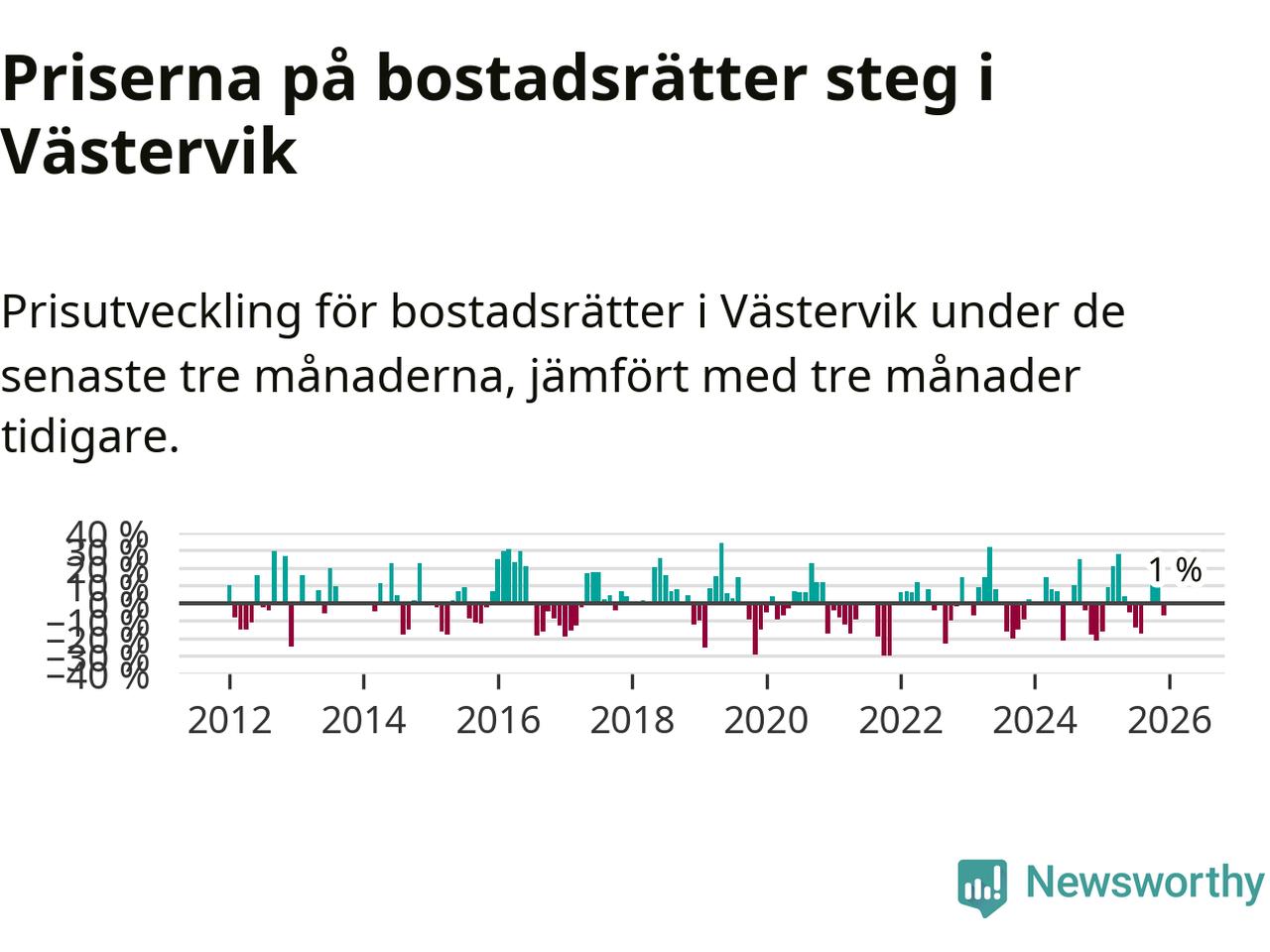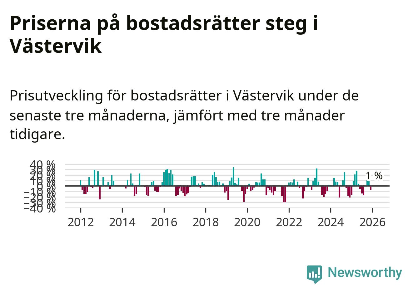 Priserna på bostadsrätter har gått upp i Västerviks kommun. Medelpriset på försäljningarna under de senaste tre månaderna visar på en uppgång med 1 procent.