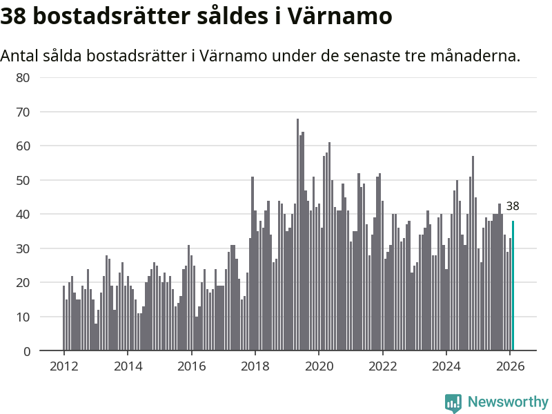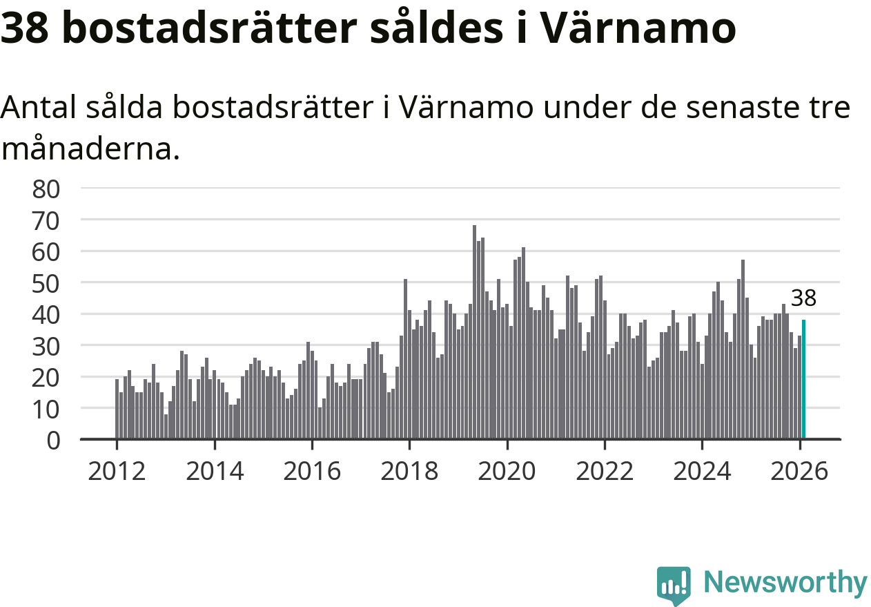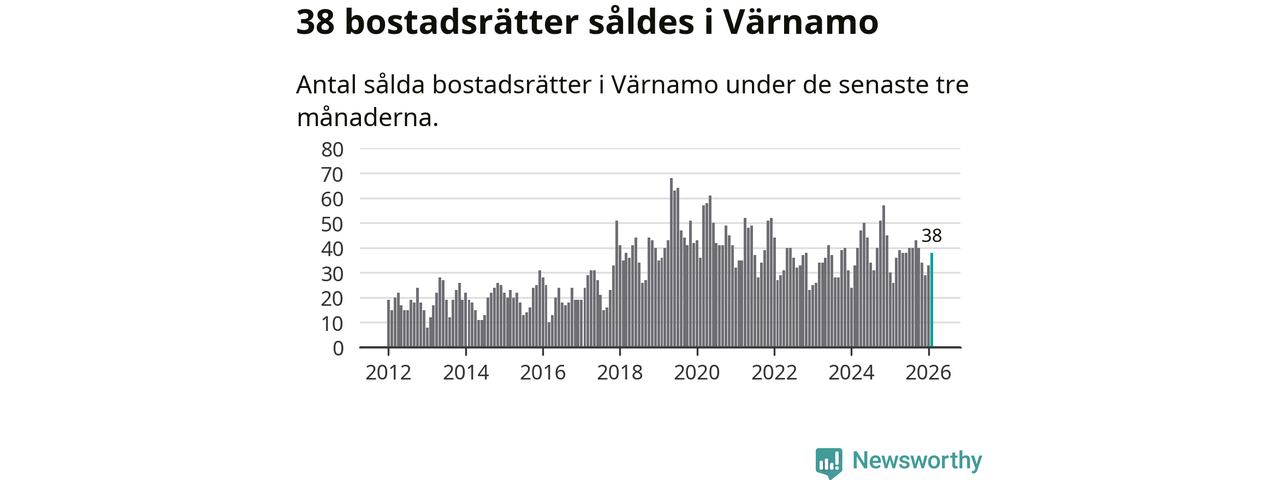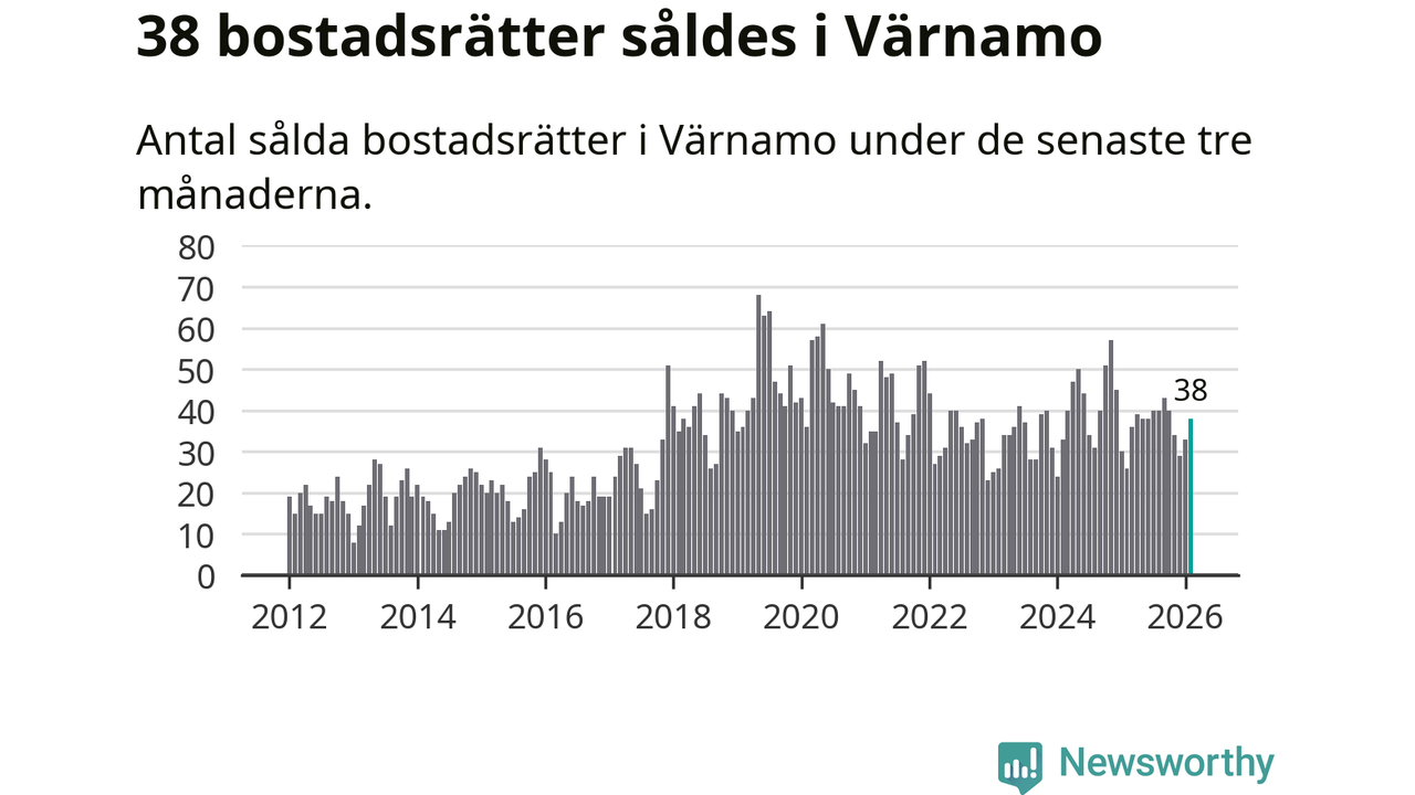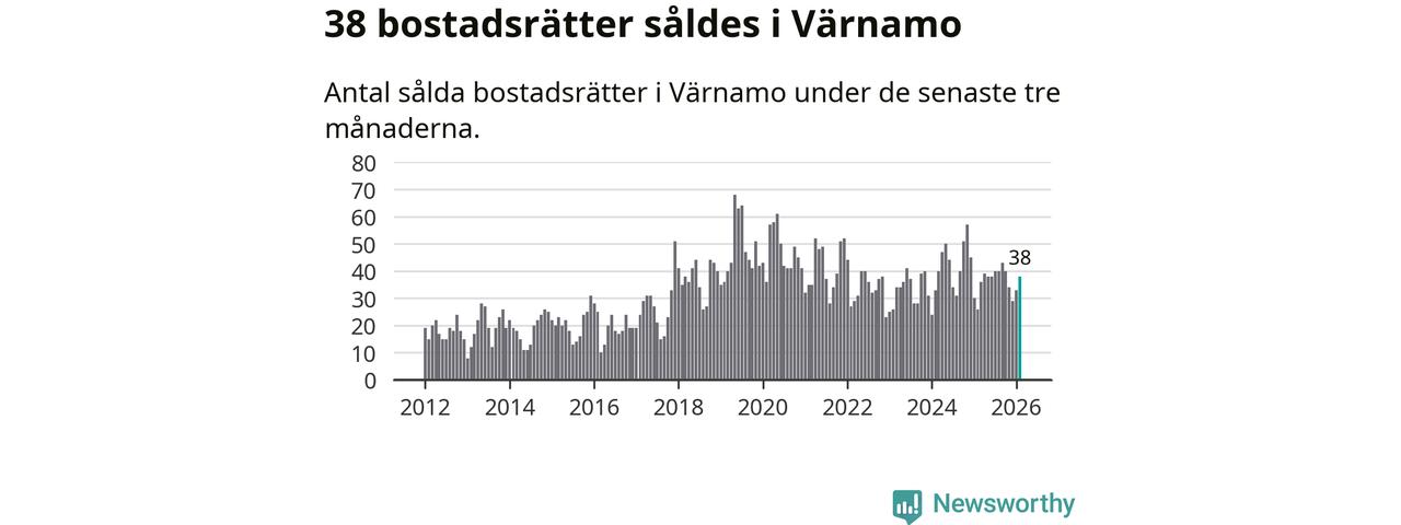 Sammanlagt såldes 38 bostadsrätter i Värnamo kommun mellan december och februari till ett genomsnittligt pris på 1,4 miljoner kronor. I fjol gjordes 26 affärer vid den här tiden på året.