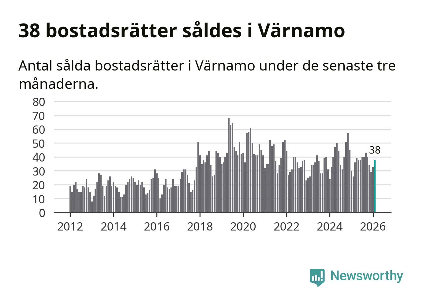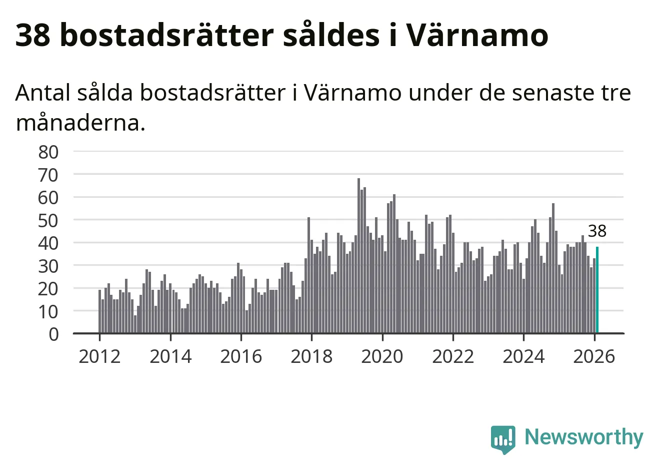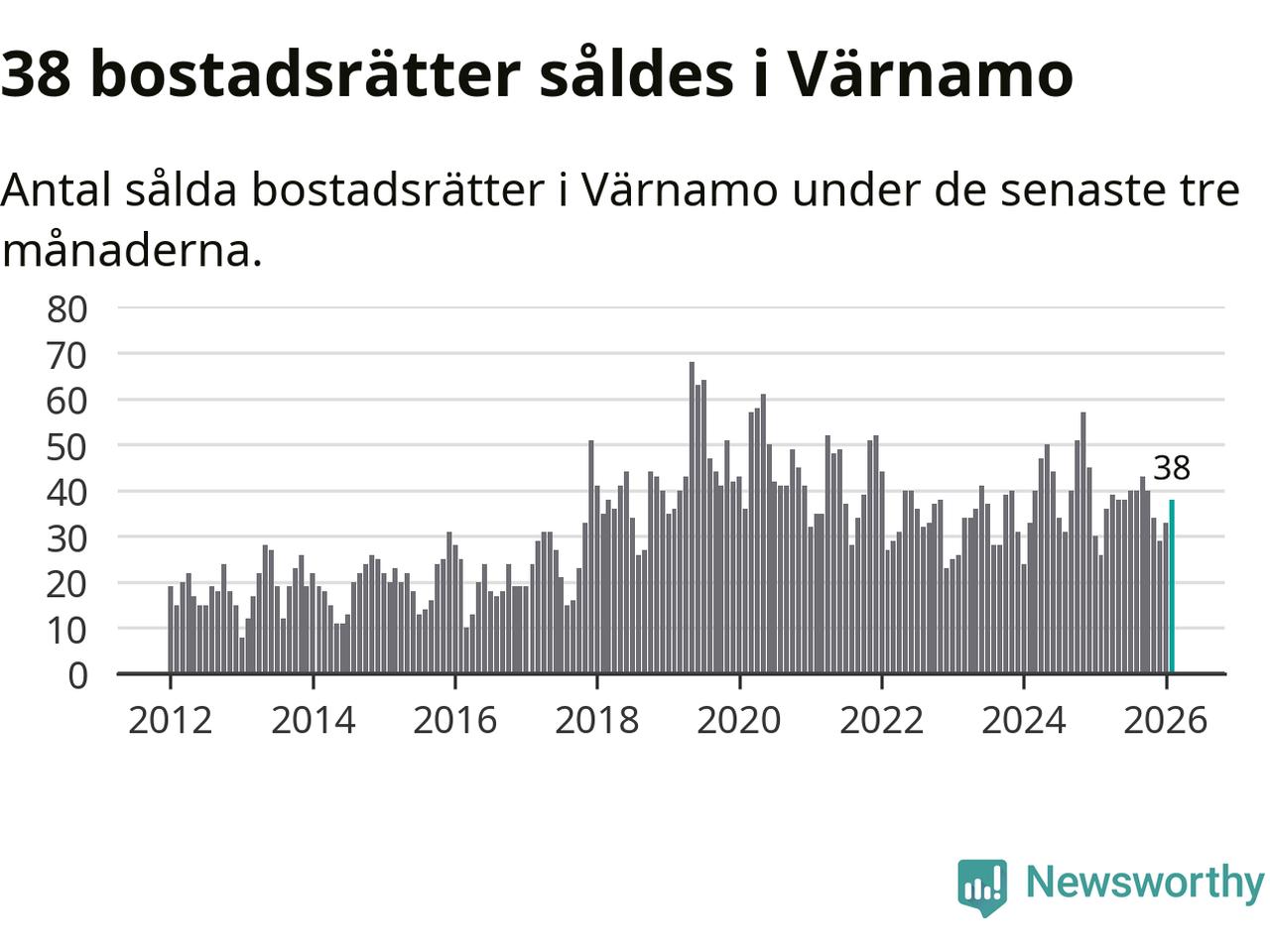 Graf: Antal sålda bostadsrätter i Värnamo kommun