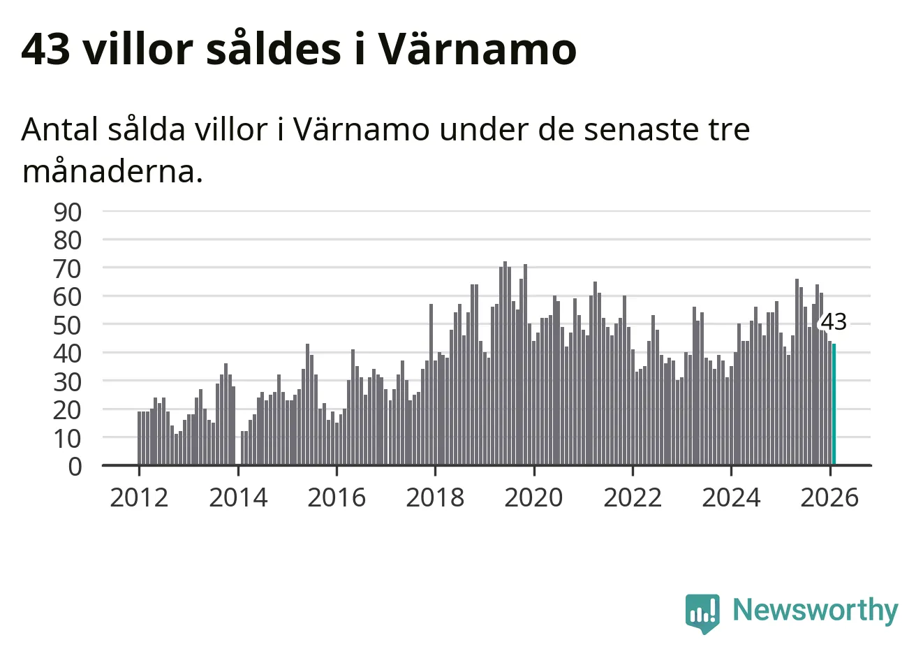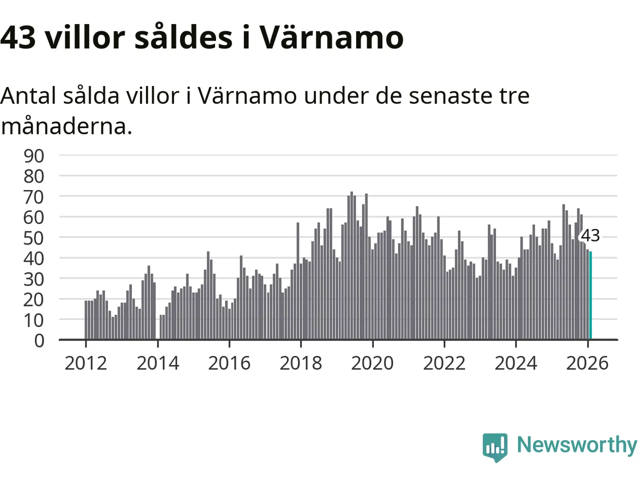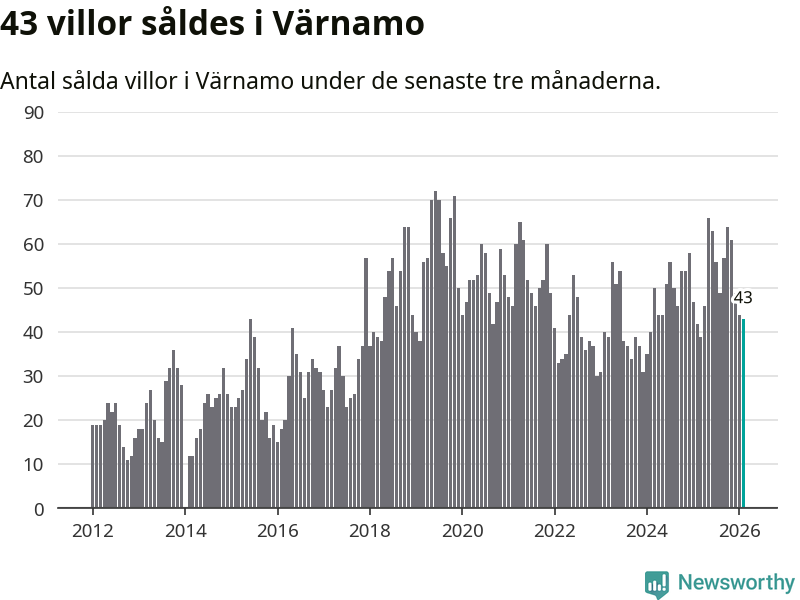 Sammanlagt såldes 43 villor i Värnamo kommun mellan december och februari till ett genomsnittligt pris på 2,5 miljoner kronor. I fjol gjordes 42 affärer vid den här tiden på året.