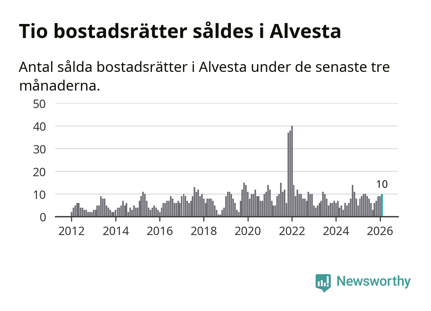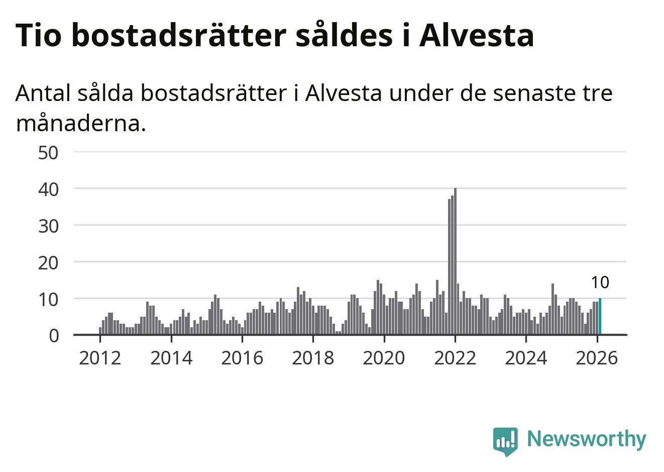Graf: Antal sålda bostadsrätter i Alvesta kommun