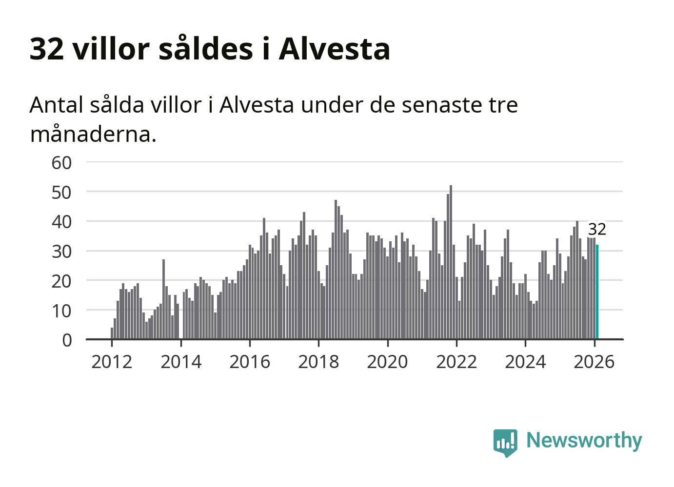 Graf: Antal sålda villor i Alvesta kommun