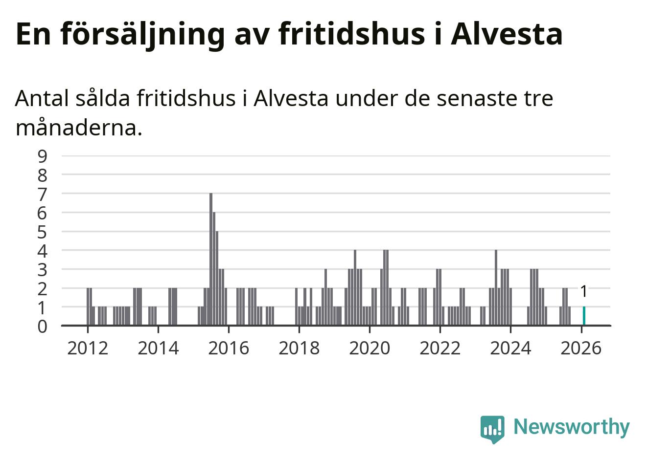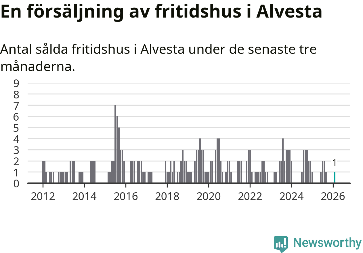 Mellan december och februari gjordes sammanlagt en affär med fritidshus i Alvesta kommun.