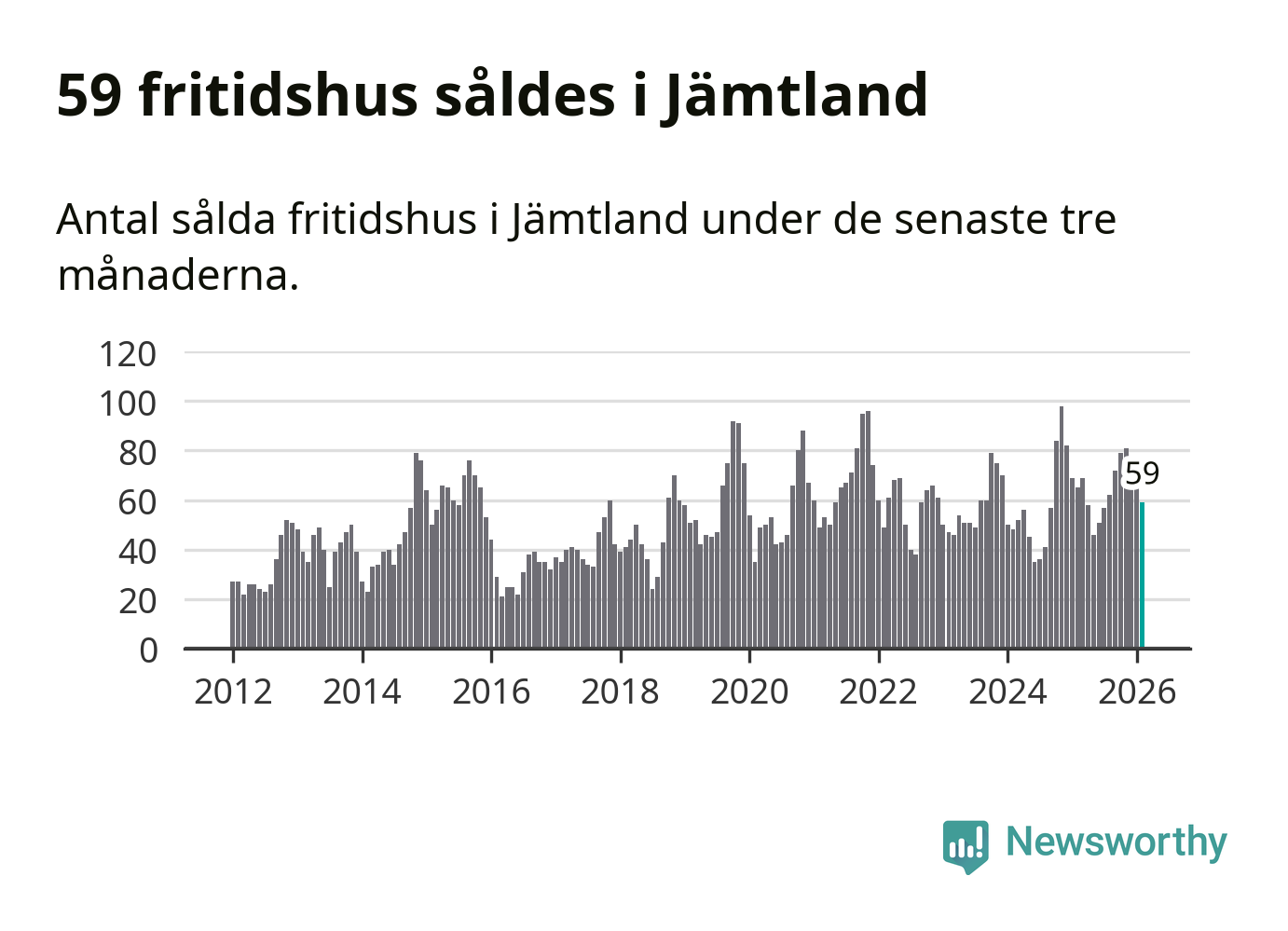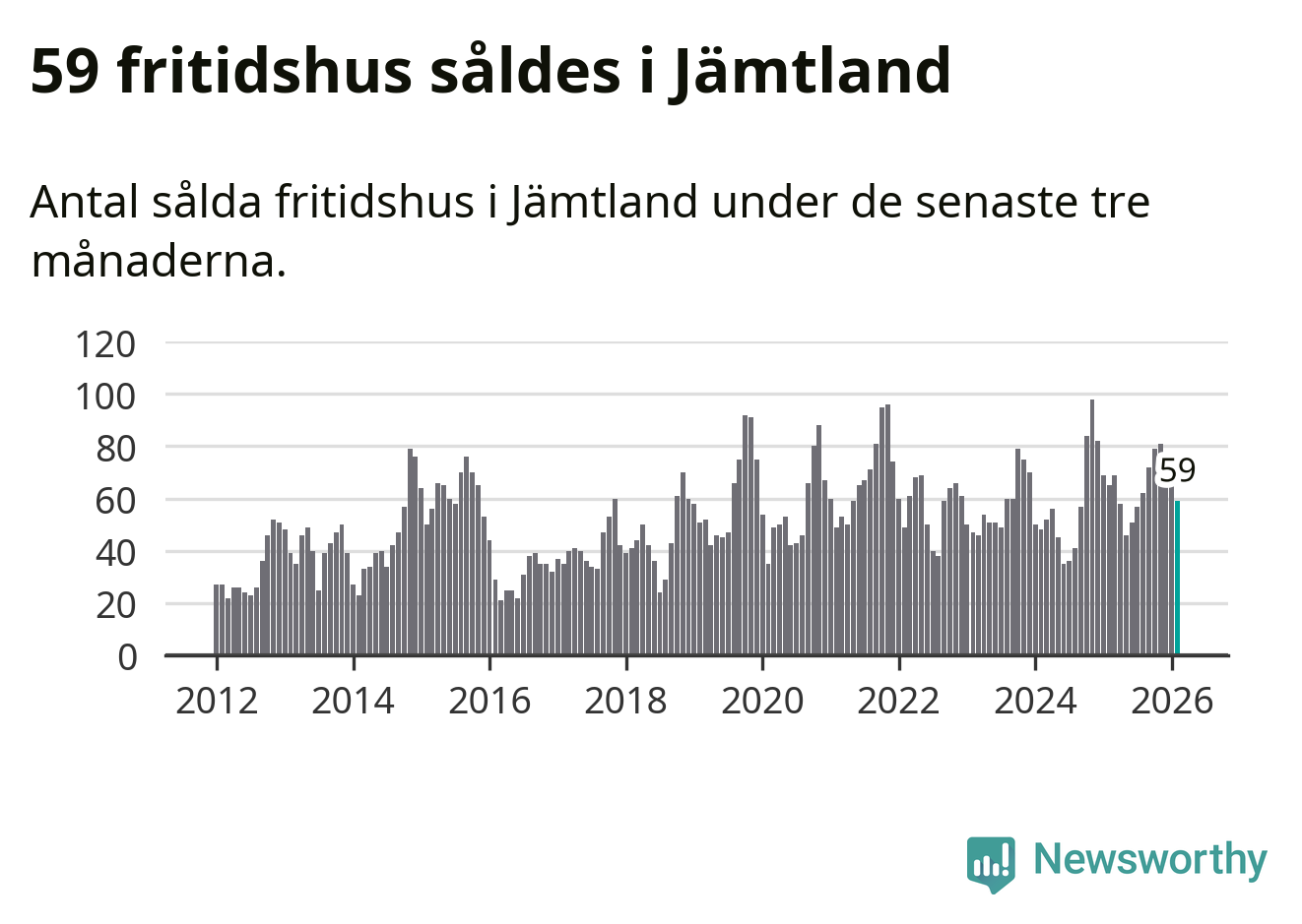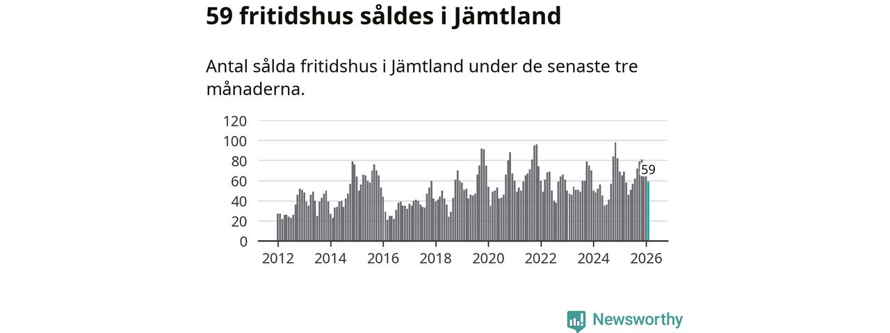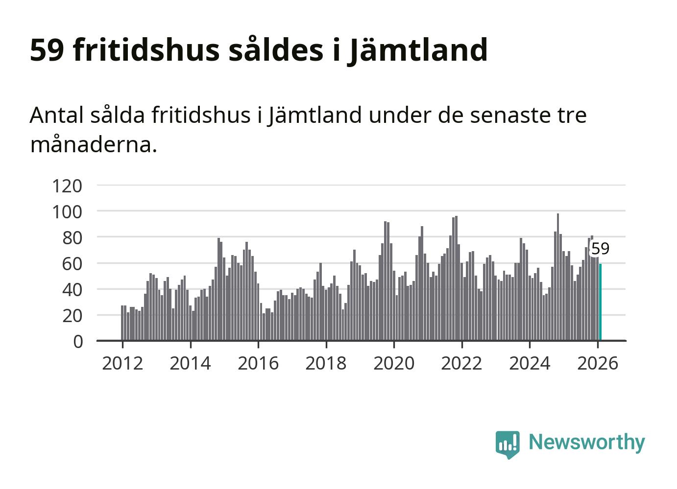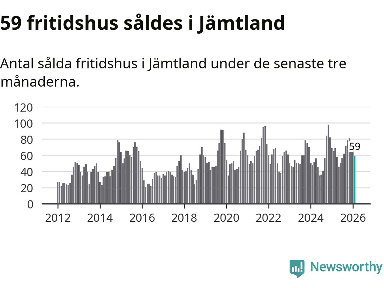 Sammanlagt såldes 59 fritidshus i Jämtlands län mellan december 2025 och februari till ett genomsnittligt pris på 3,1 miljoner kronor. I fjol gjordes 65 affärer vid den här tiden på året.