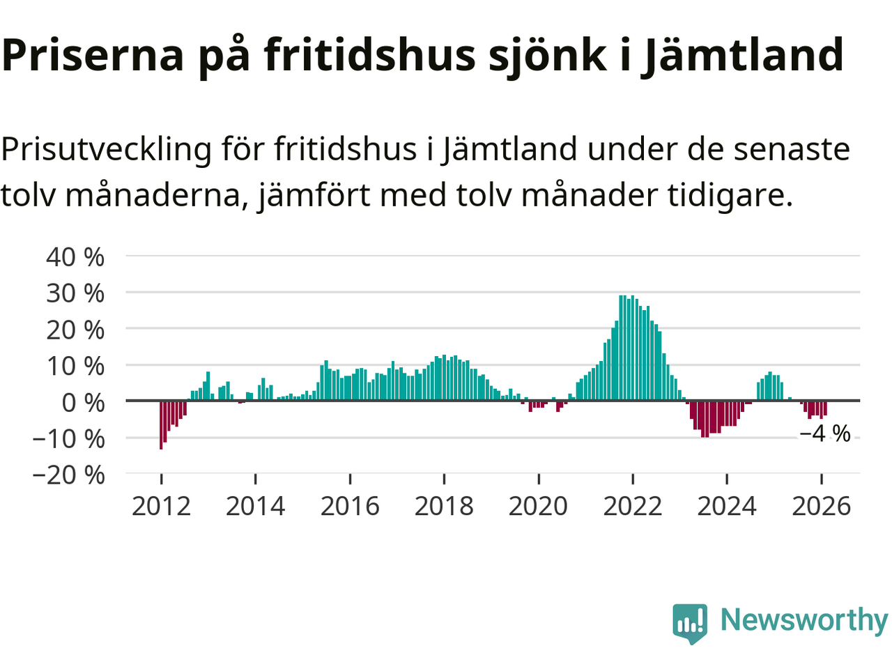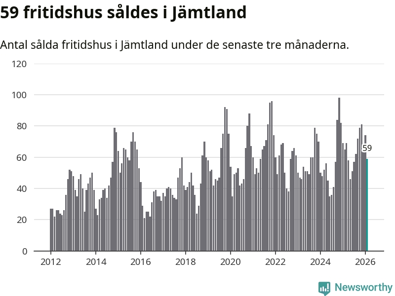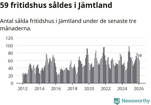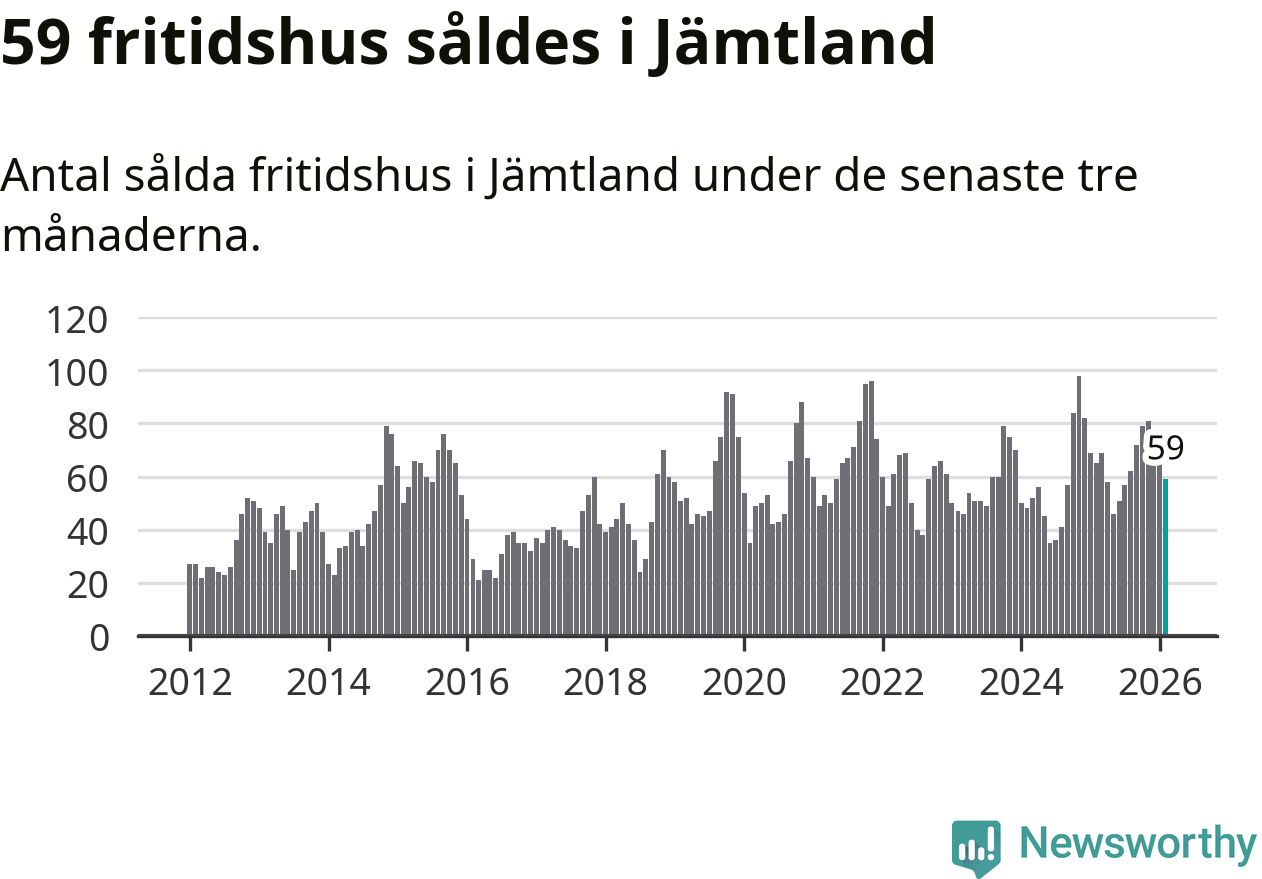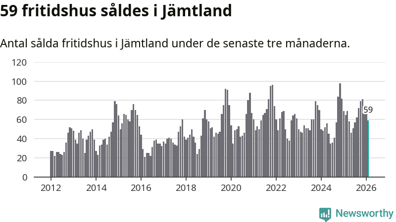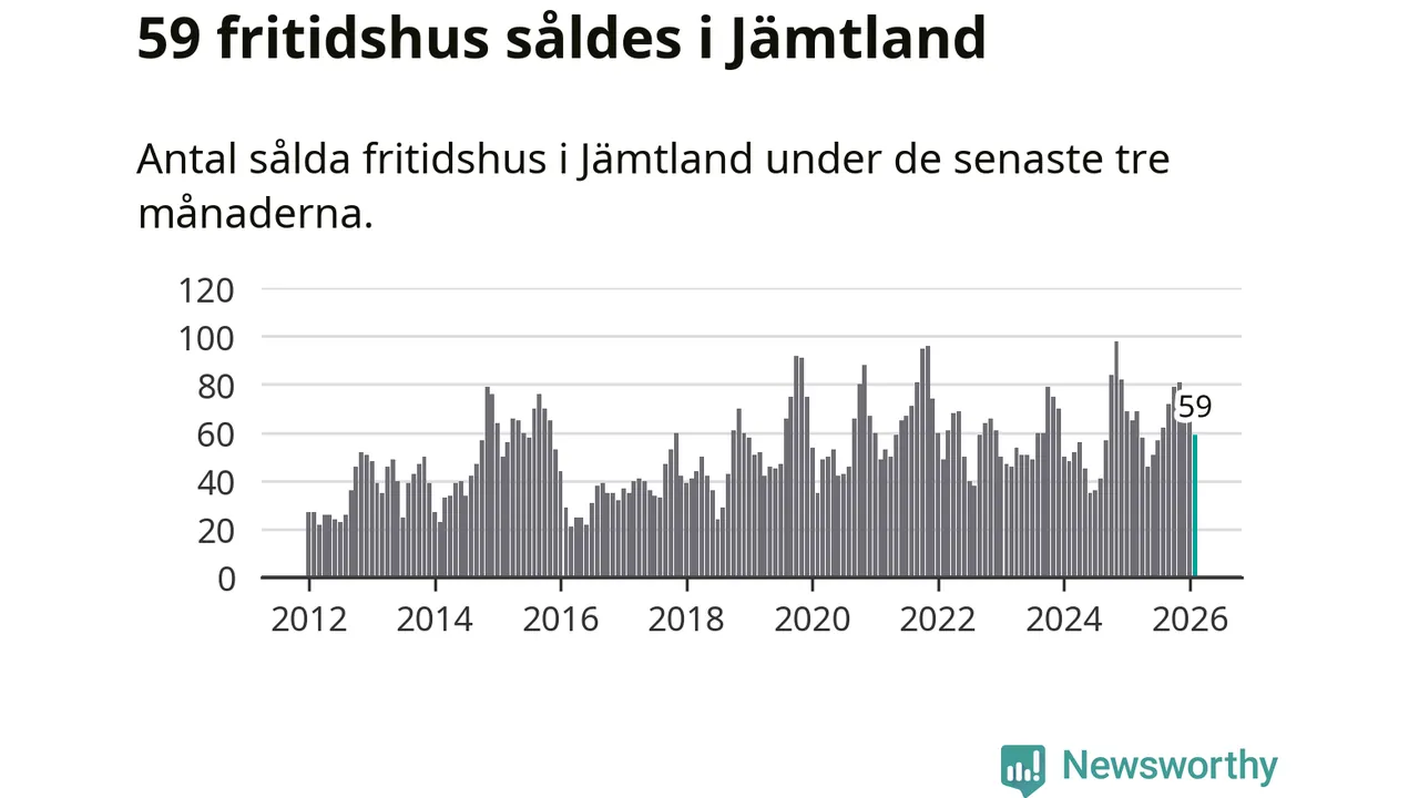 Sammanlagt såldes 59 fritidshus i Jämtlands län mellan december 2025 och februari till ett genomsnittligt pris på 3,1 miljoner kronor. I fjol gjordes 65 affärer vid den här tiden på året.