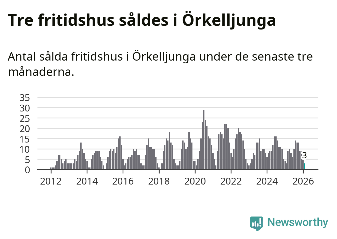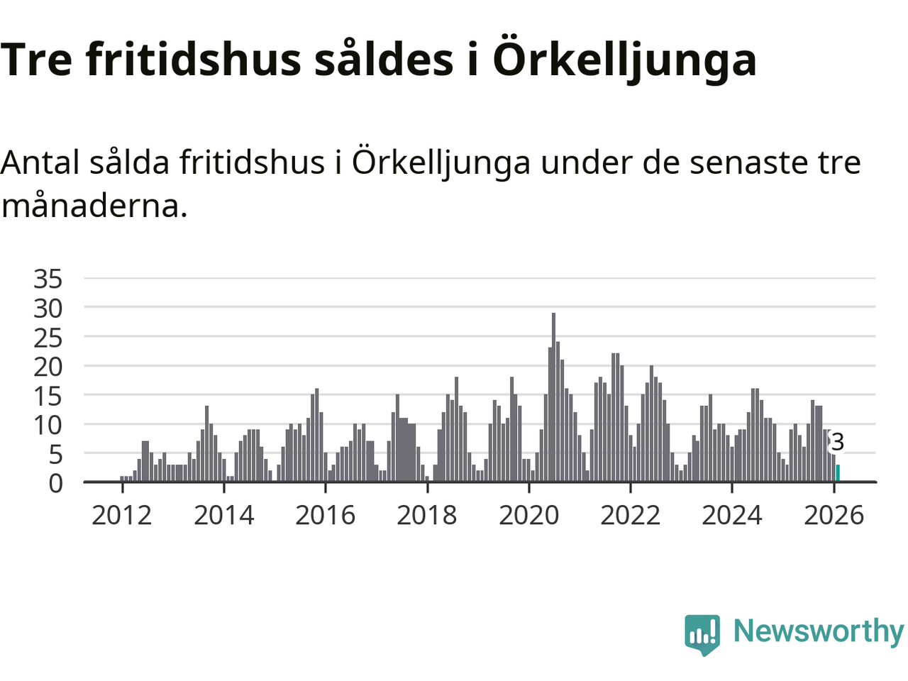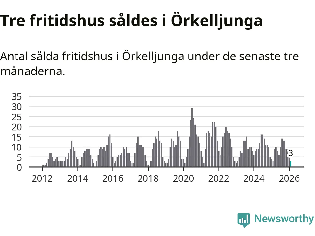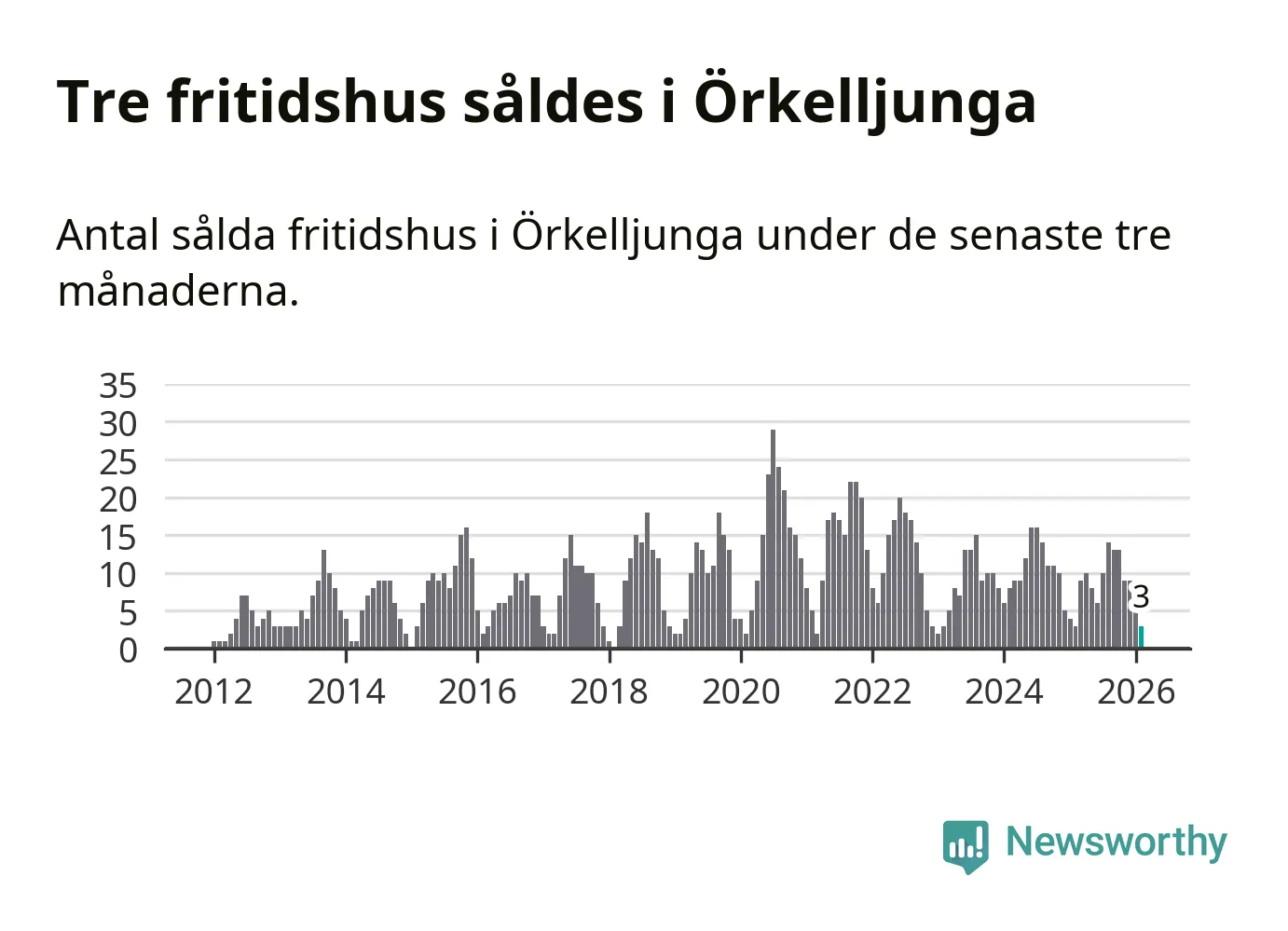 Sammanlagt såldes tre fritidshus i Örkelljunga kommun mellan december 2025 och februari till ett genomsnittligt pris på 1,6 miljoner kronor. I fjol gjordes tre affärer vid den här tiden på året.