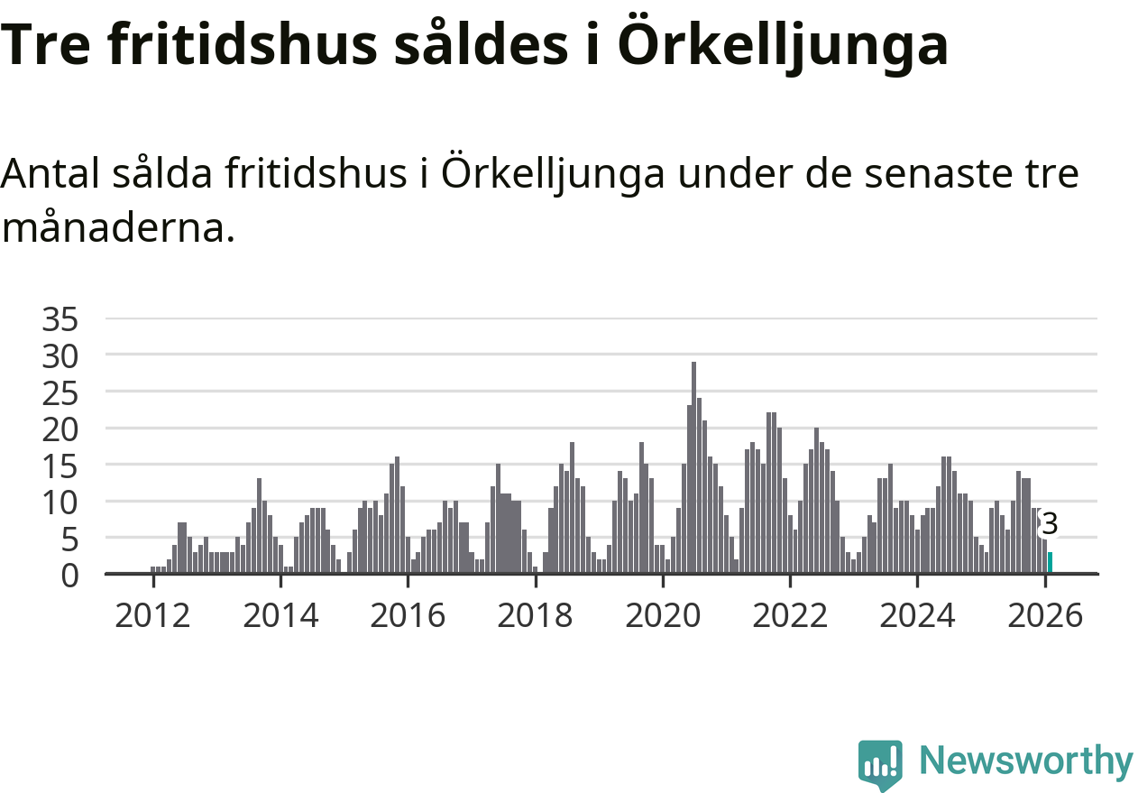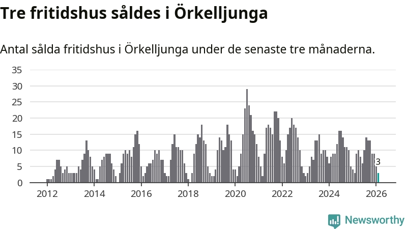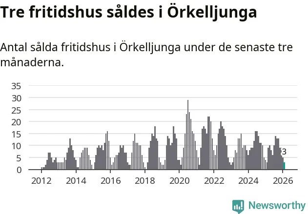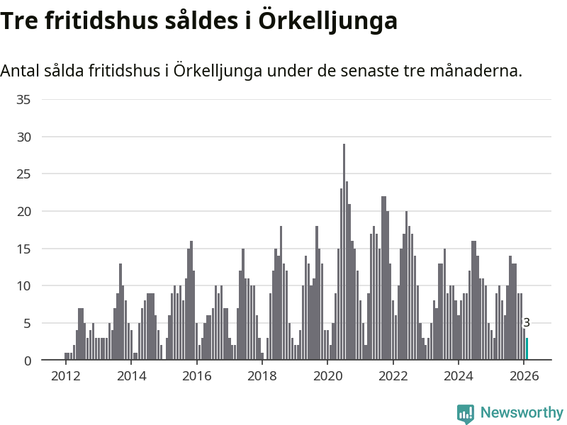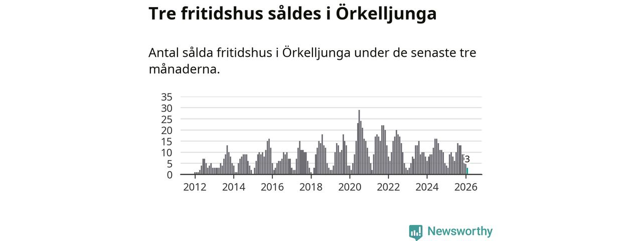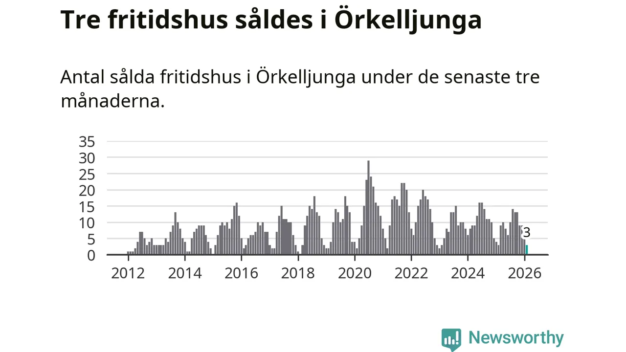 Sammanlagt såldes tre fritidshus i Örkelljunga kommun mellan december 2025 och februari till ett genomsnittligt pris på 1,6 miljoner kronor. I fjol gjordes tre affärer vid den här tiden på året.