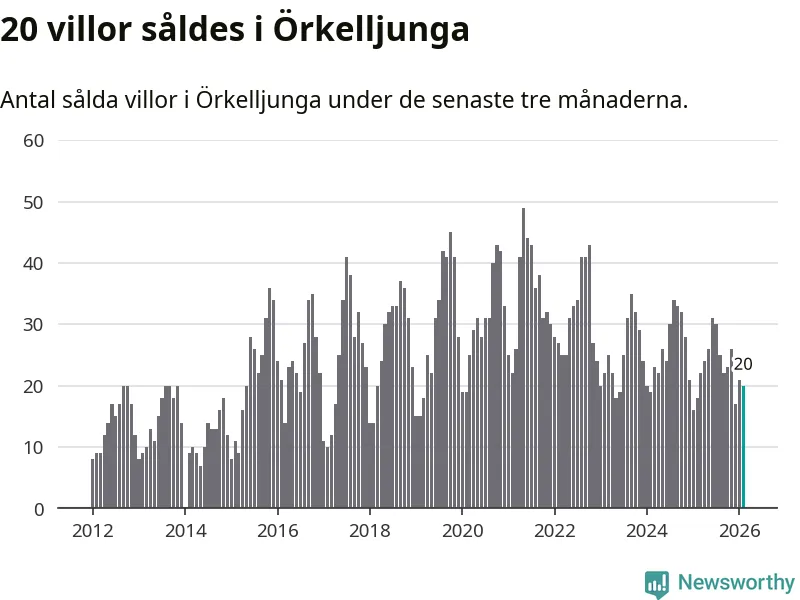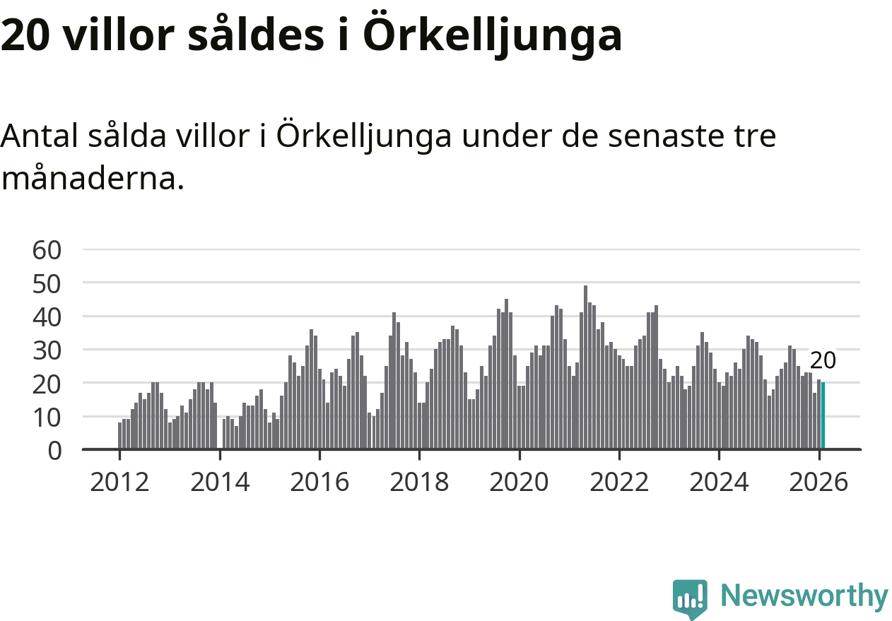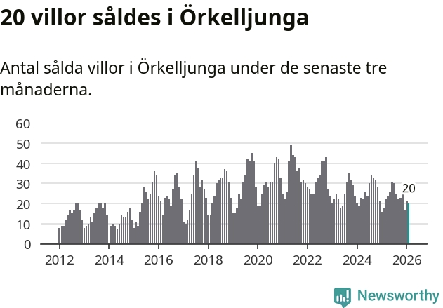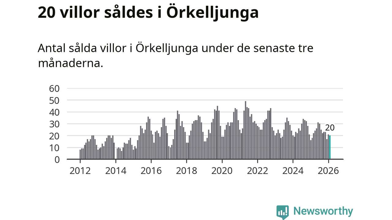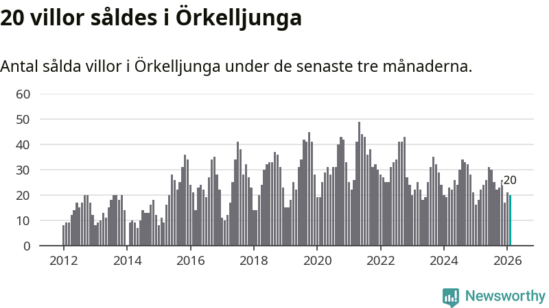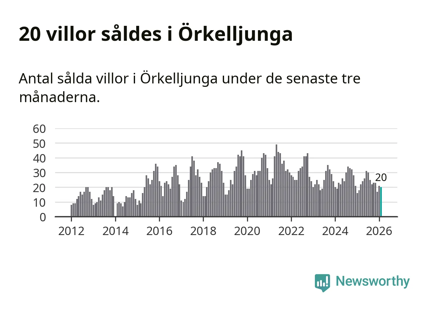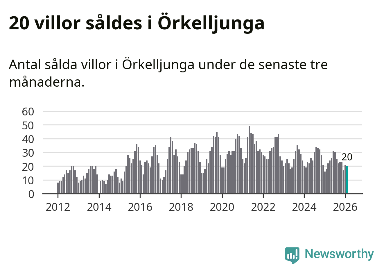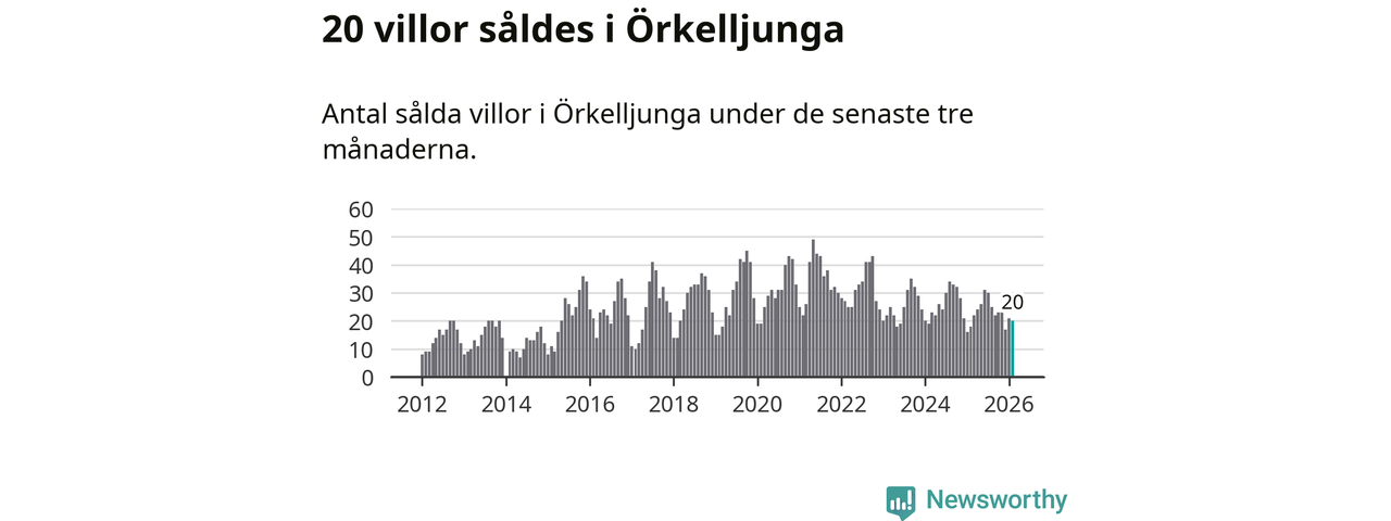 Mellan december och februari gjordes sammanlagt 20 affärer med villor i Örkelljunga kommun. Det kan jämföras med 18 vid motsvarande tid i fjol.