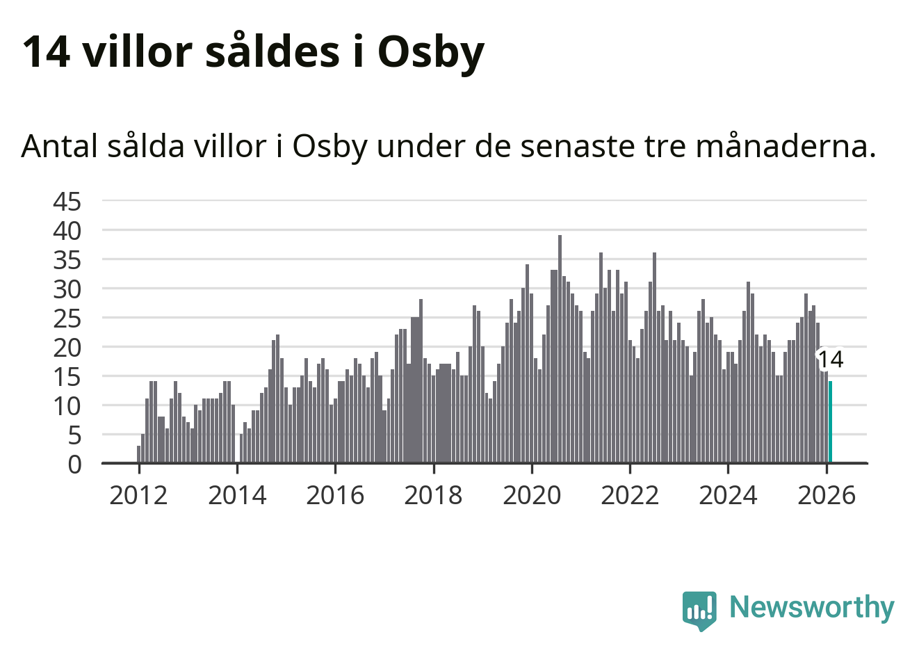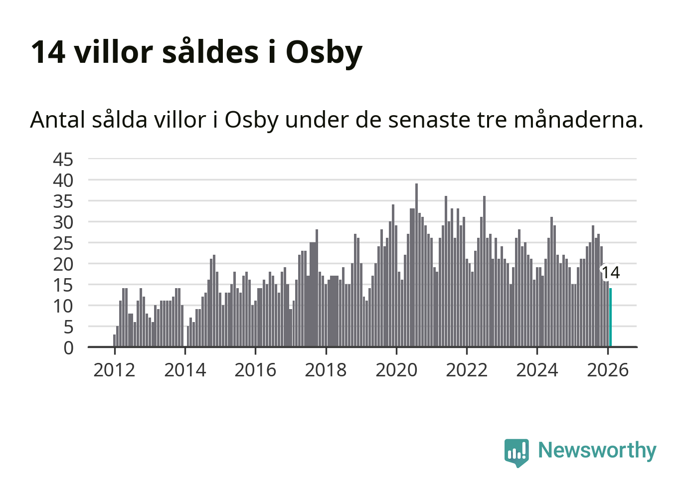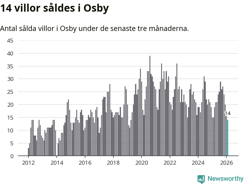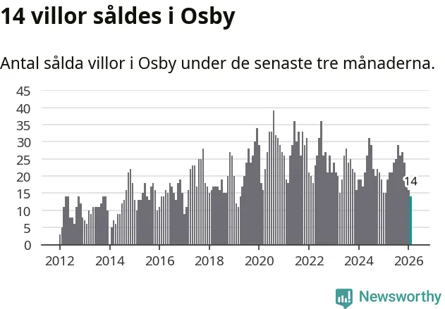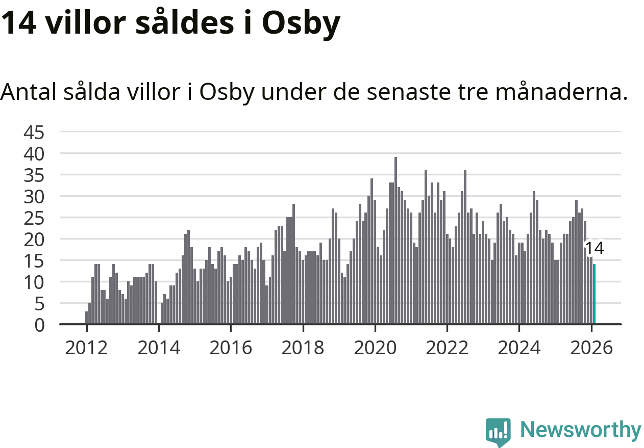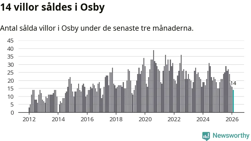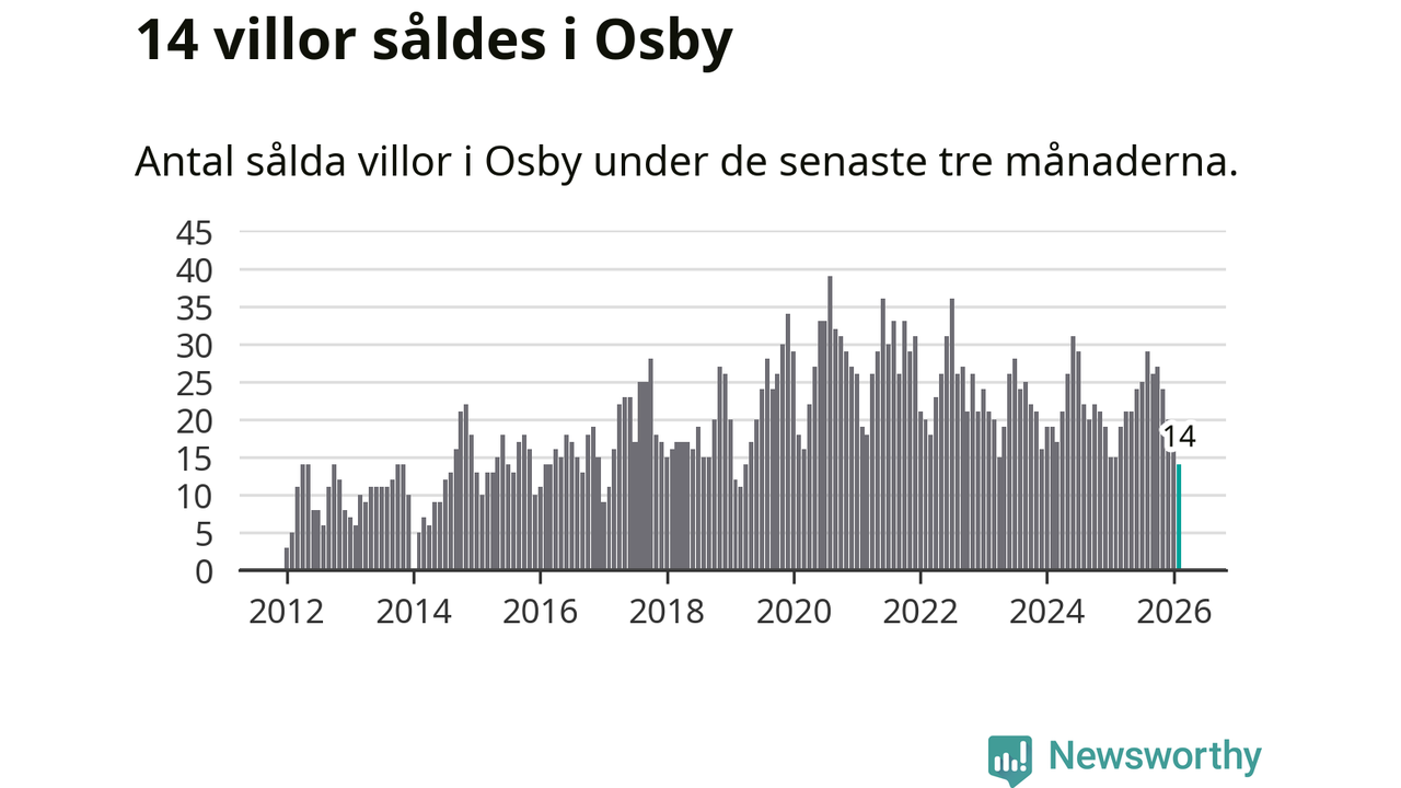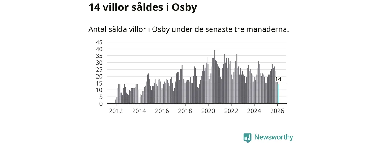 Mellan december och februari gjordes sammanlagt 14 affärer med villor i Osby kommun. Det kan jämföras med 15 vid motsvarande tid i fjol.