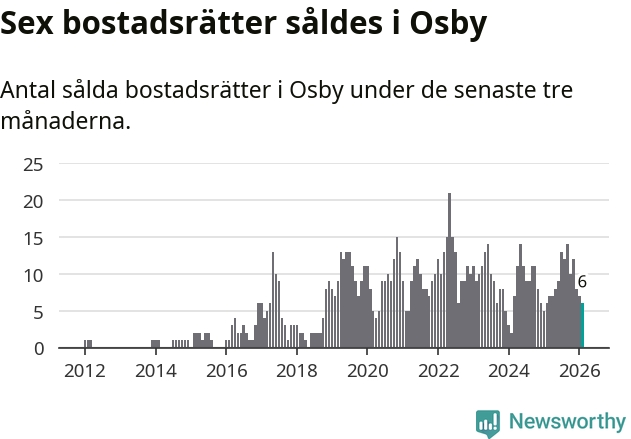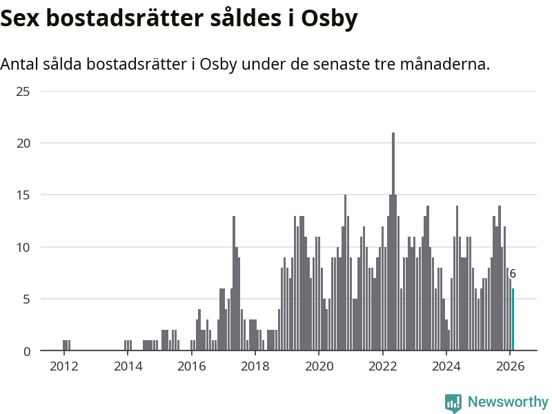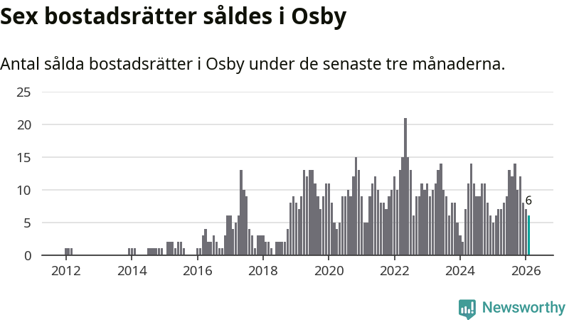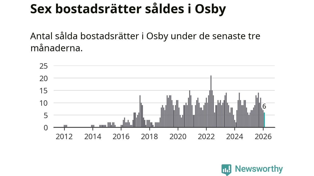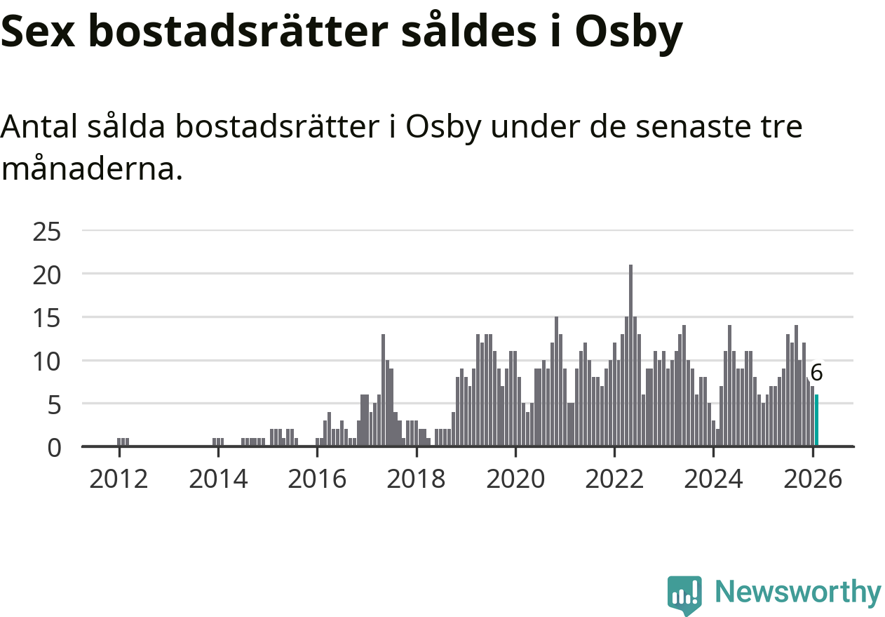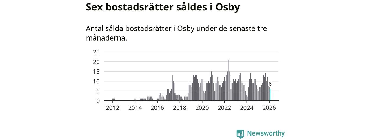 Mellan december och februari gjordes sammanlagt sex affärer med bostadsrätter i Osby kommun. Det är lika många affärer som vid motsvarande tid i fjol.
