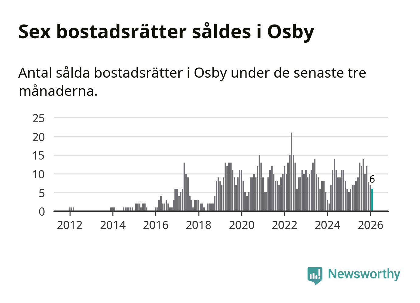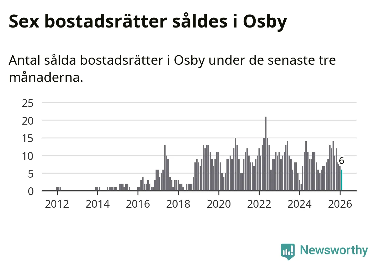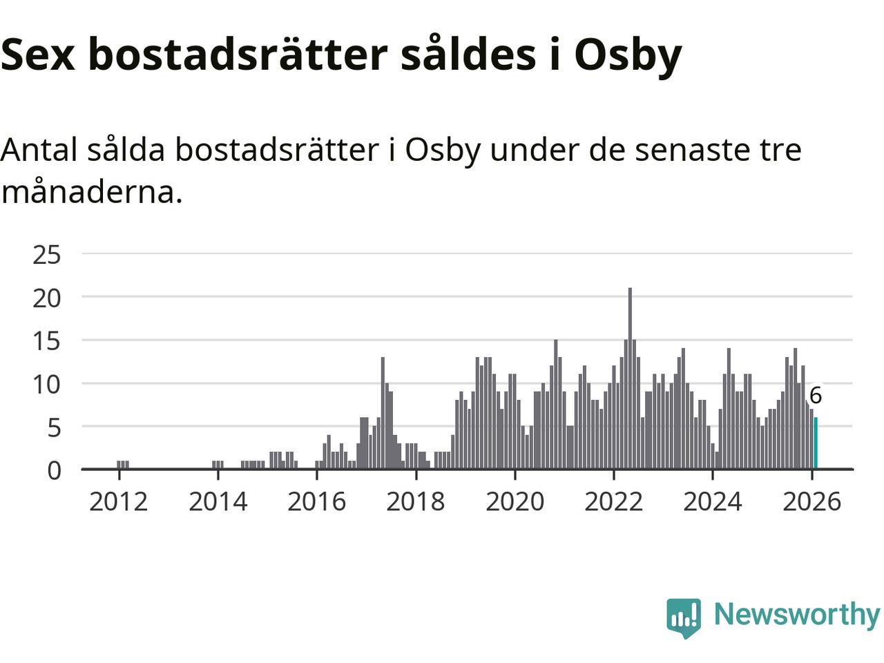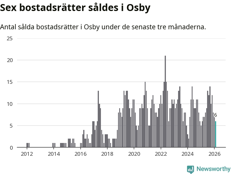 Mellan december och februari gjordes sammanlagt sex affärer med bostadsrätter i Osby kommun. Det är lika många affärer som vid motsvarande tid i fjol.
