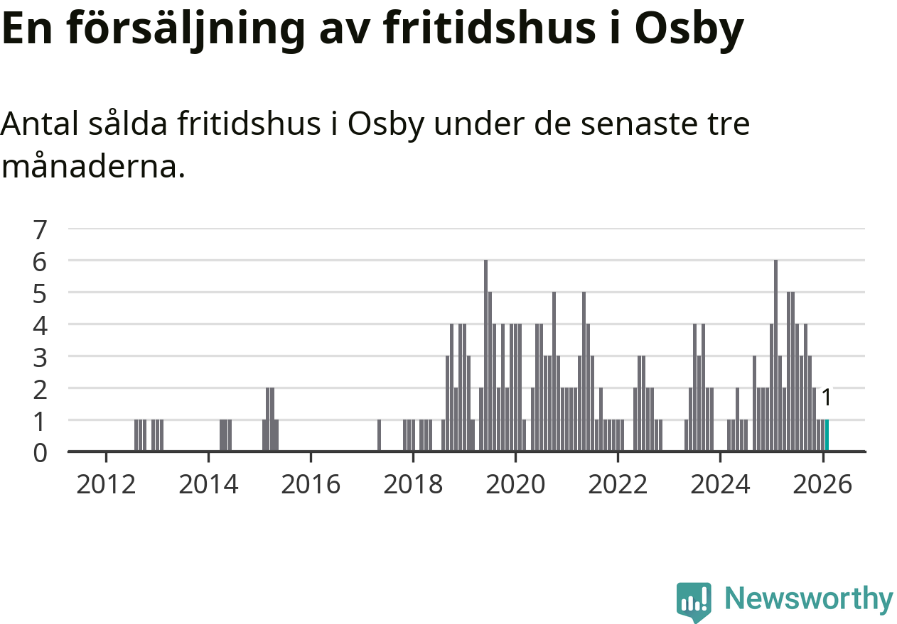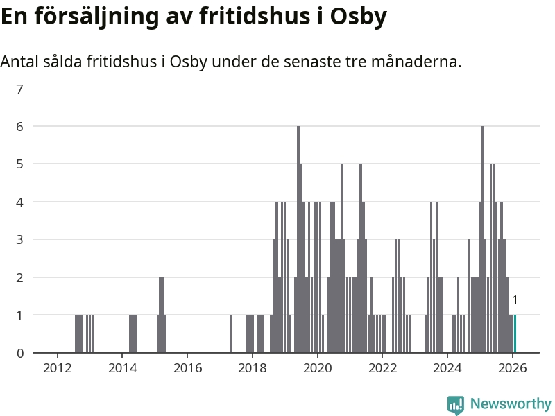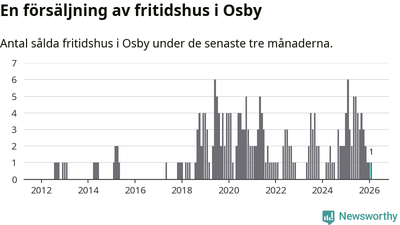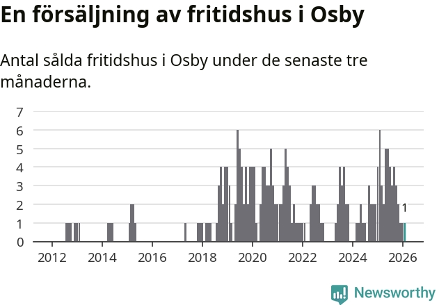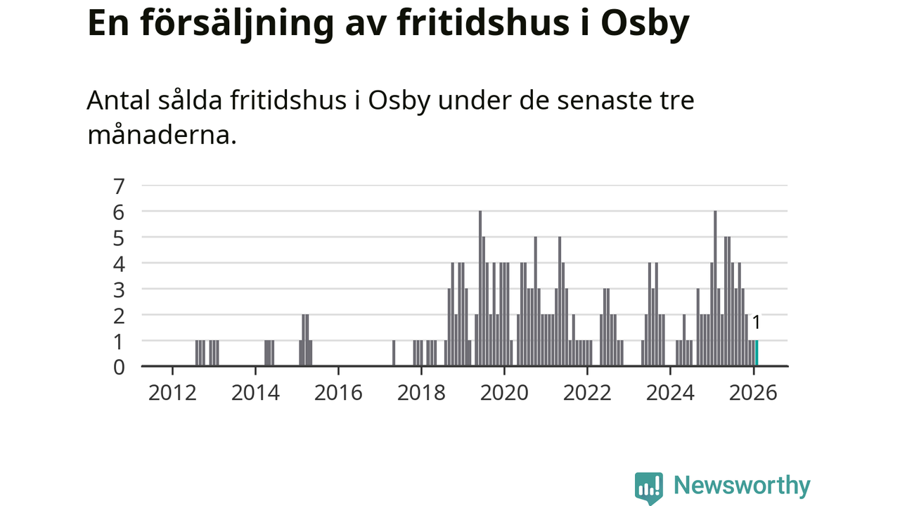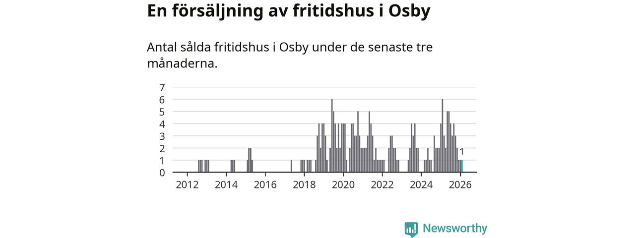 Mellan december och februari gjordes sammanlagt en affär med fritidshus i Osby kommun. Det kan jämföras med sex vid motsvarande tid i fjol.
