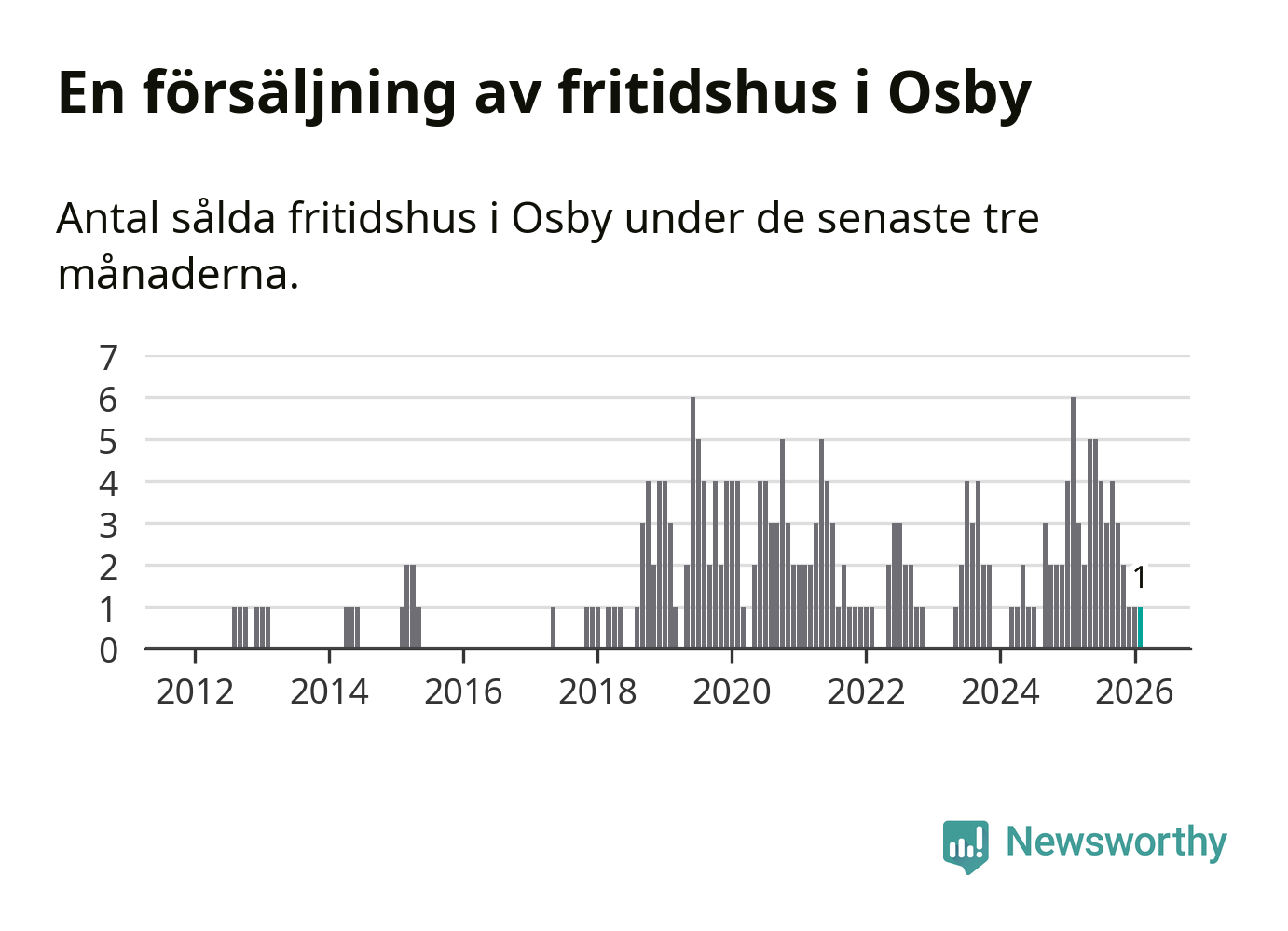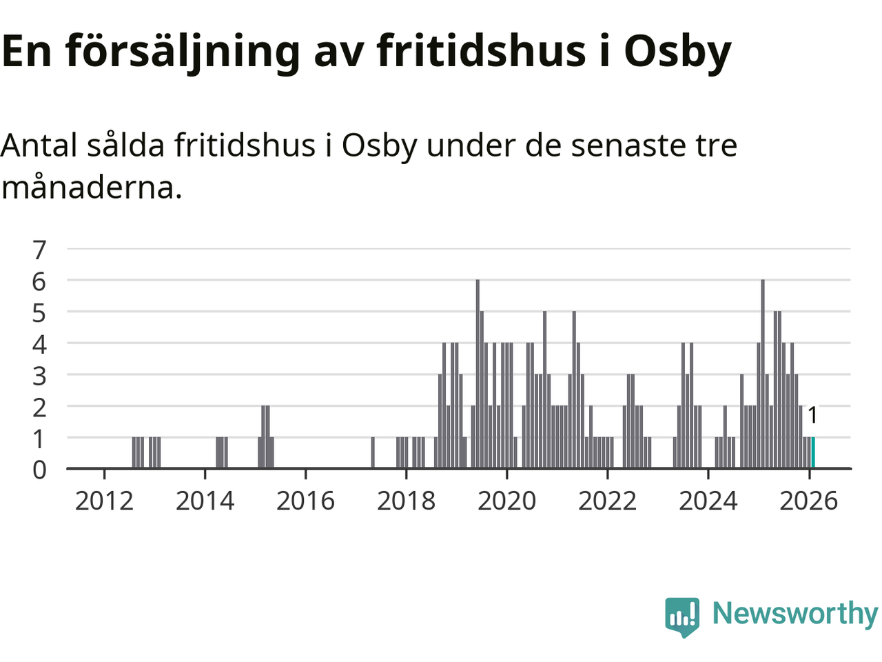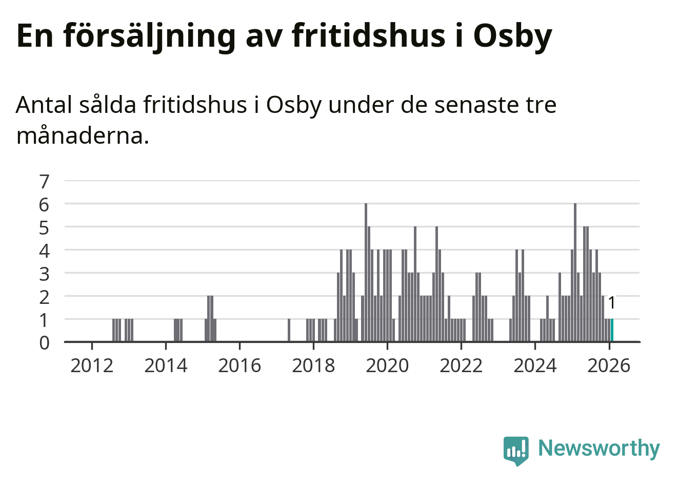 Mellan december och februari gjordes sammanlagt en affär med fritidshus i Osby kommun. Det kan jämföras med sex vid motsvarande tid i fjol.