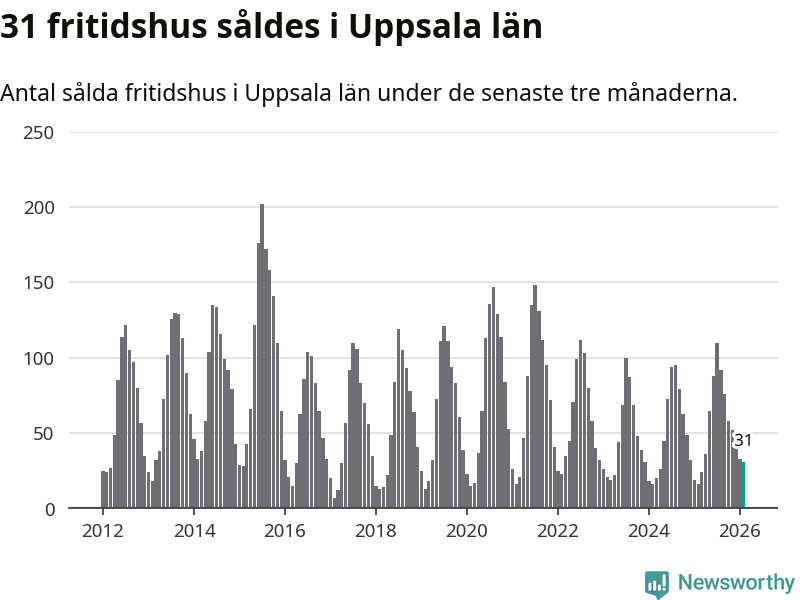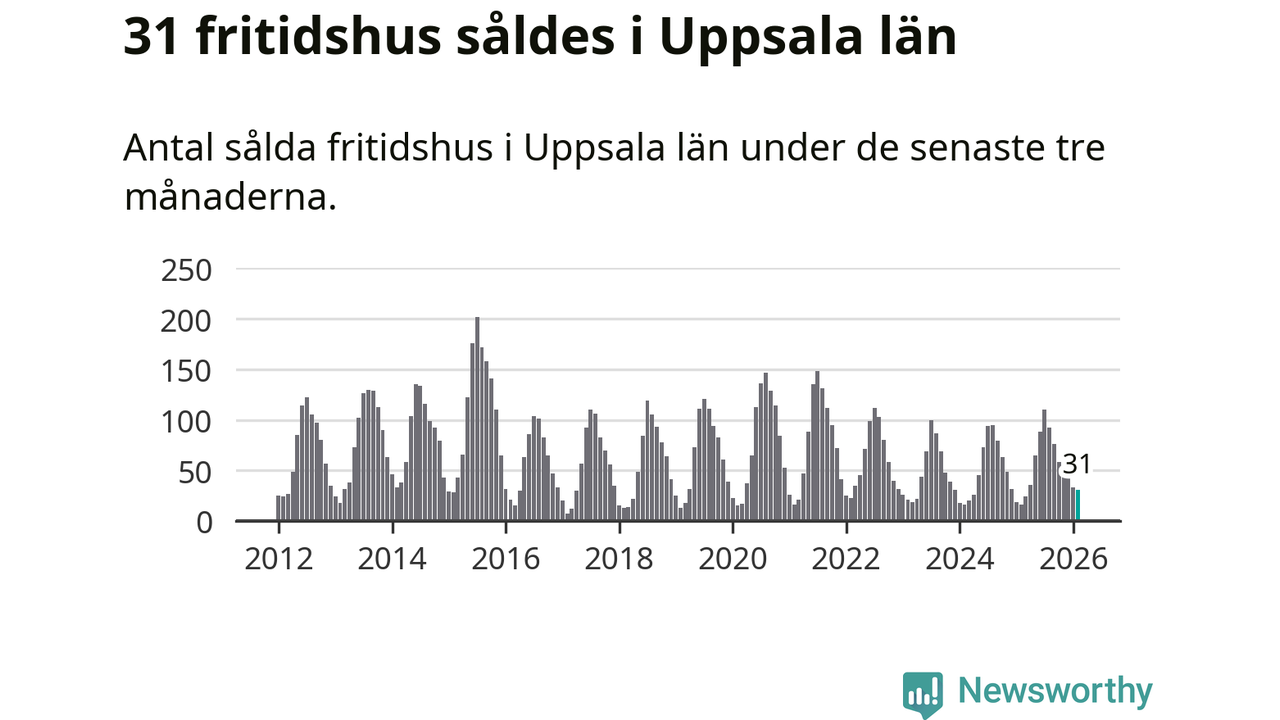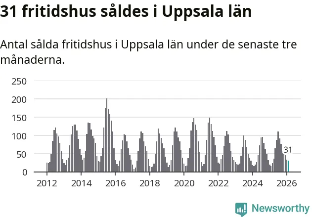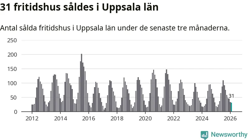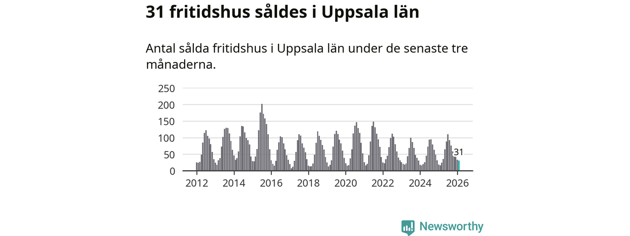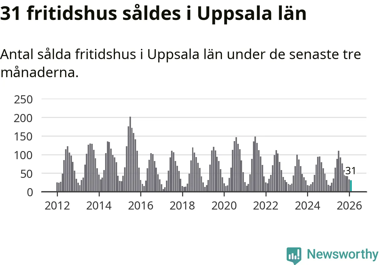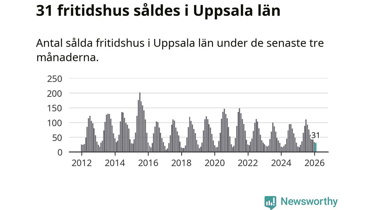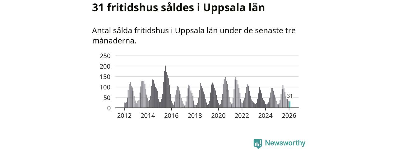 Sammanlagt såldes 31 fritidshus i Uppsala län mellan december 2025 och februari till ett genomsnittligt pris på 1,5 miljoner kronor. I fjol gjordes 16 affärer vid den här tiden på året.