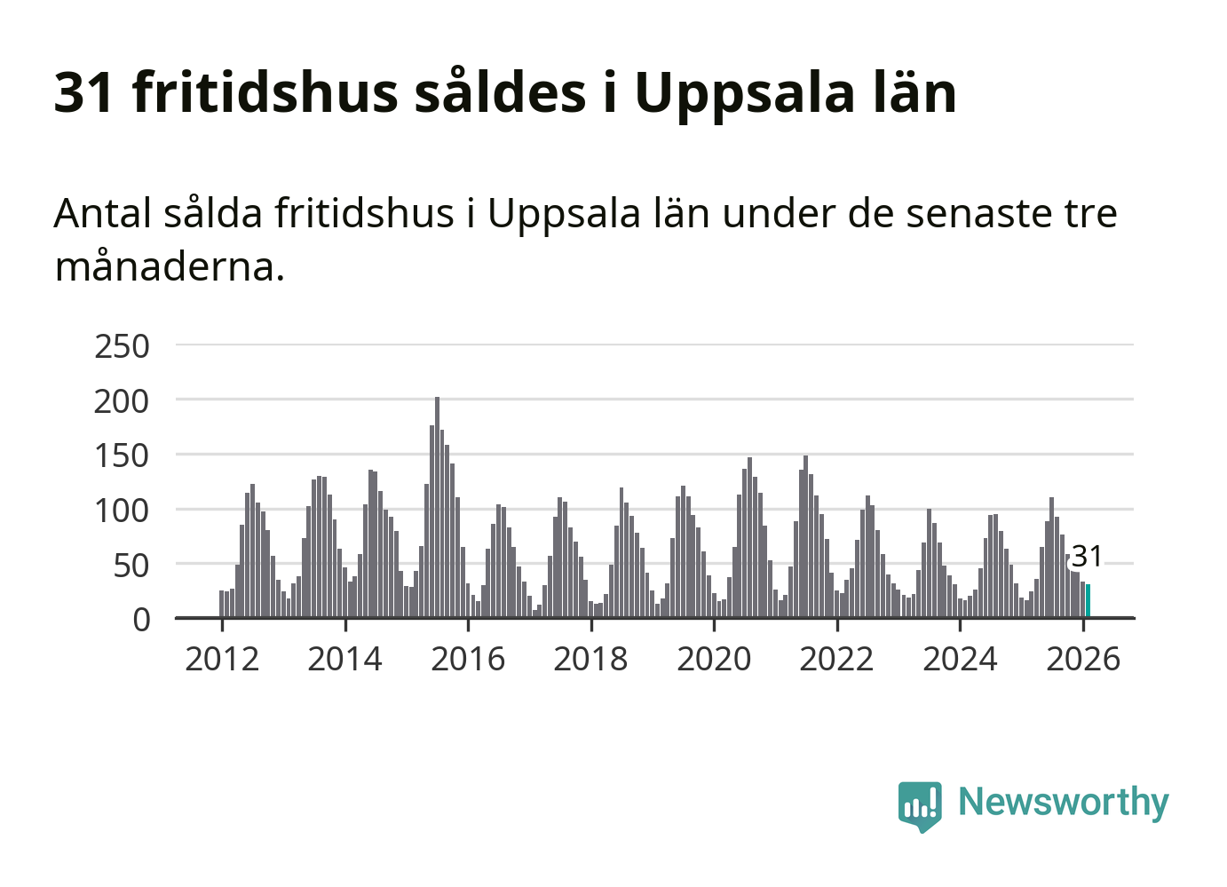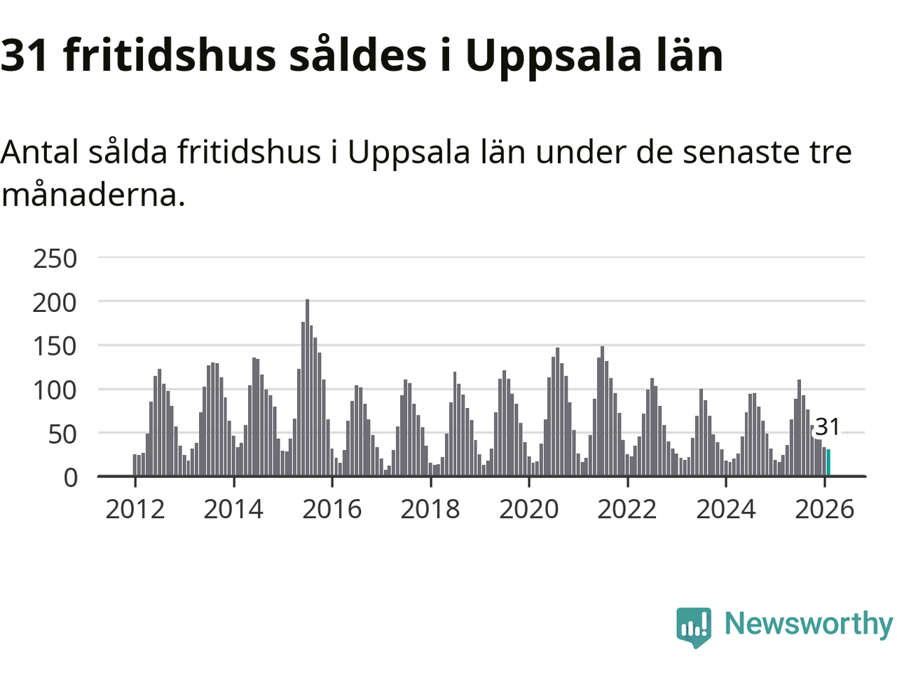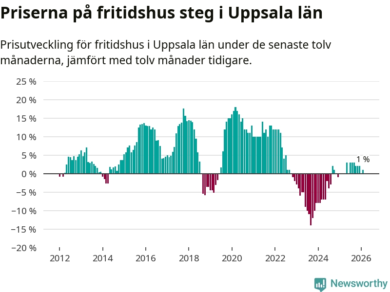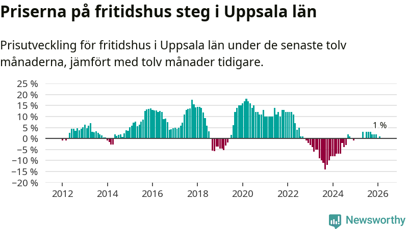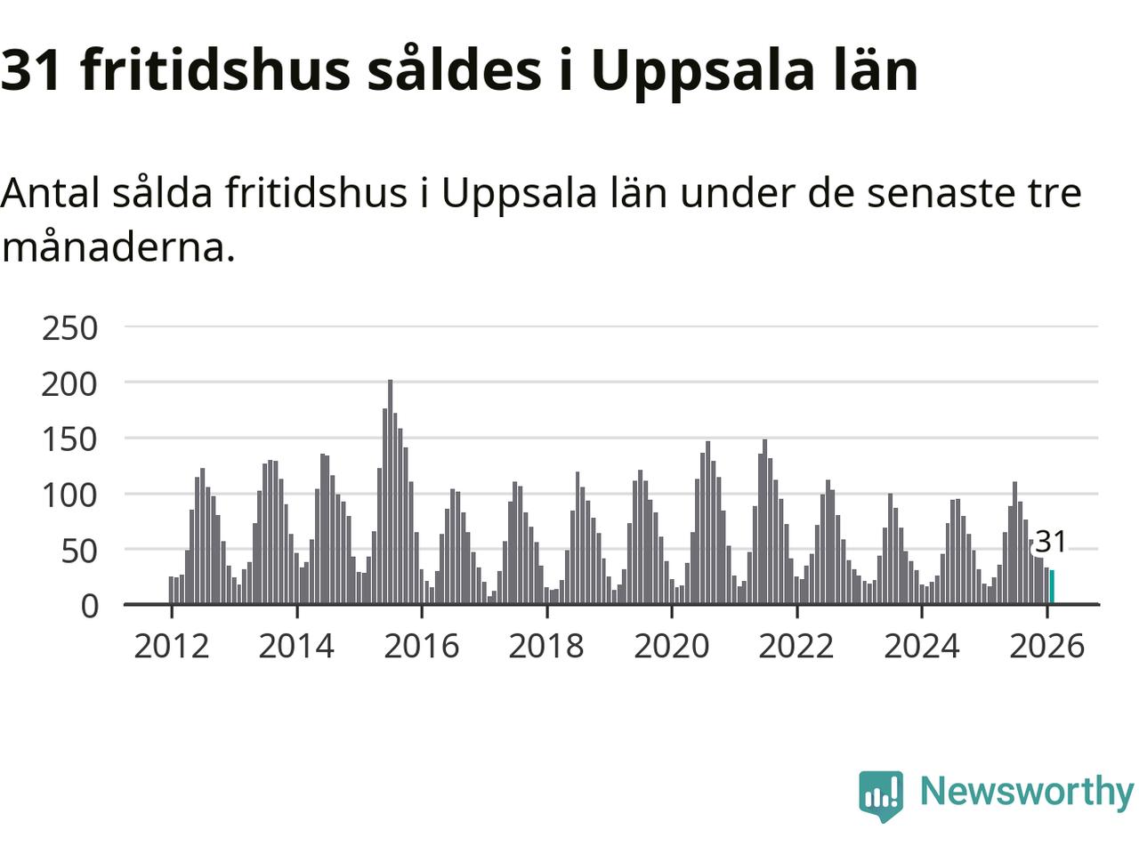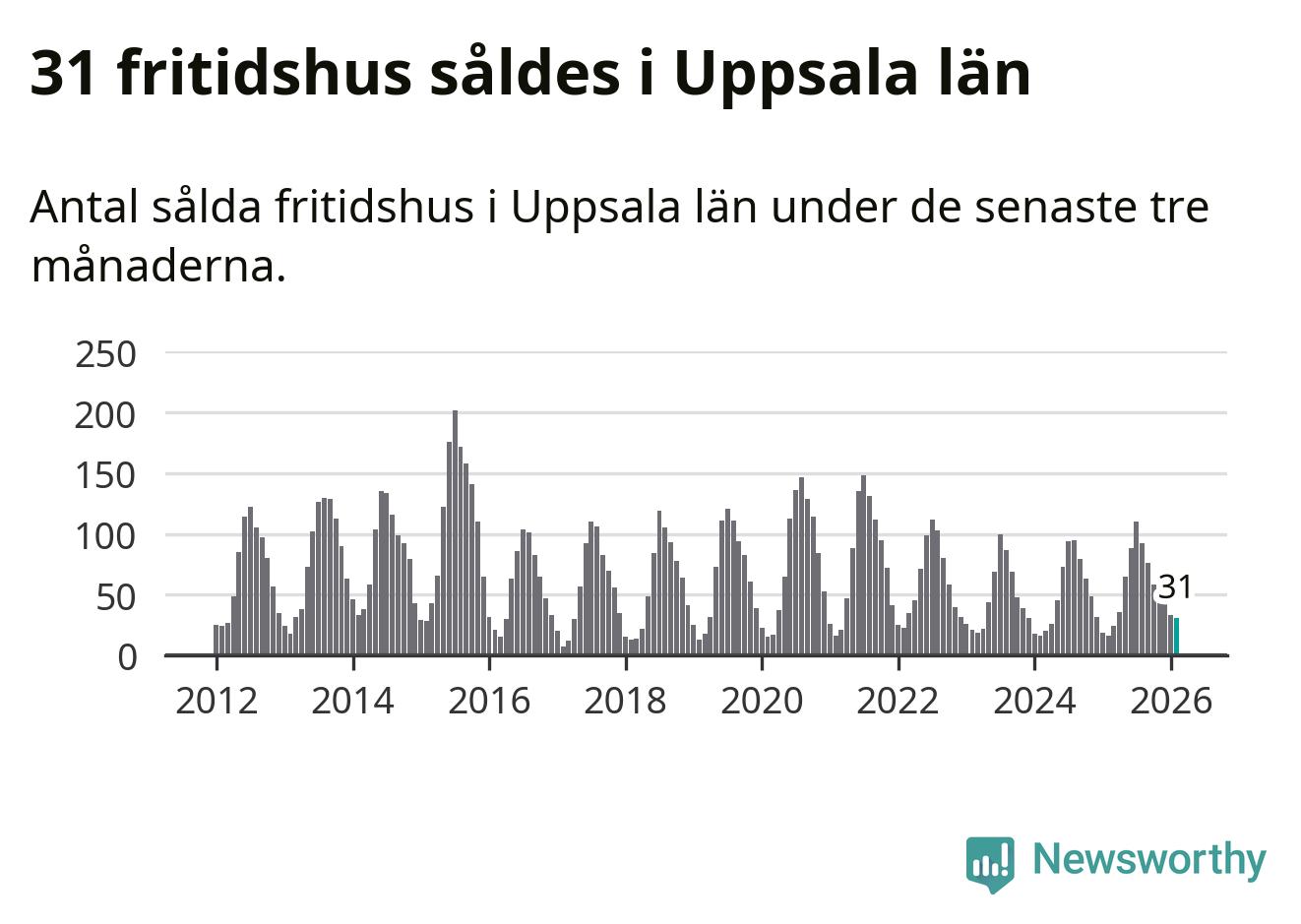 Sammanlagt såldes 31 fritidshus i Uppsala län mellan december 2025 och februari till ett genomsnittligt pris på 1,5 miljoner kronor. I fjol gjordes 16 affärer vid den här tiden på året.