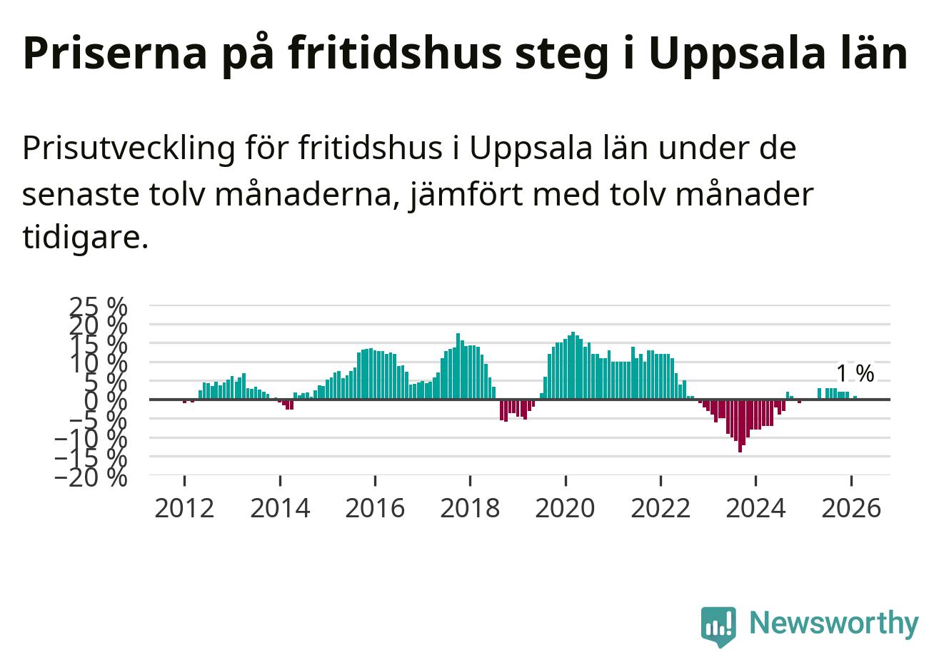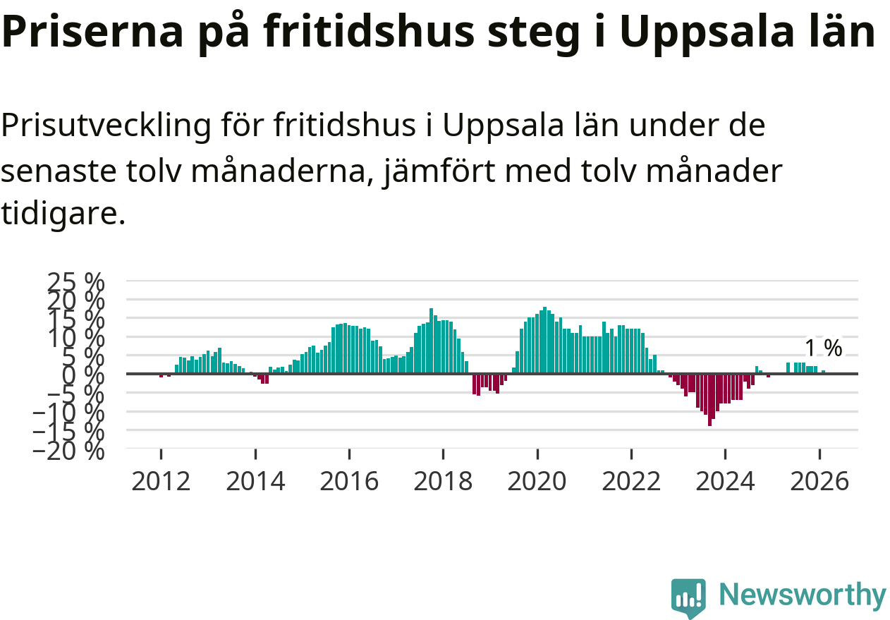 Priserna på fritidshus har gått upp i Uppsala län. Medelpriset på försäljningarna under de senaste tolv månaderna visar på en uppgång med 1 procent.