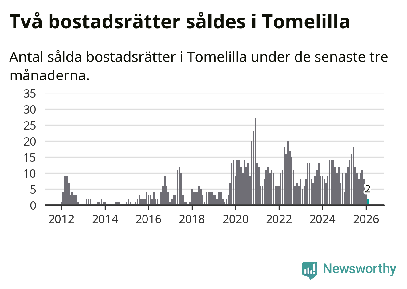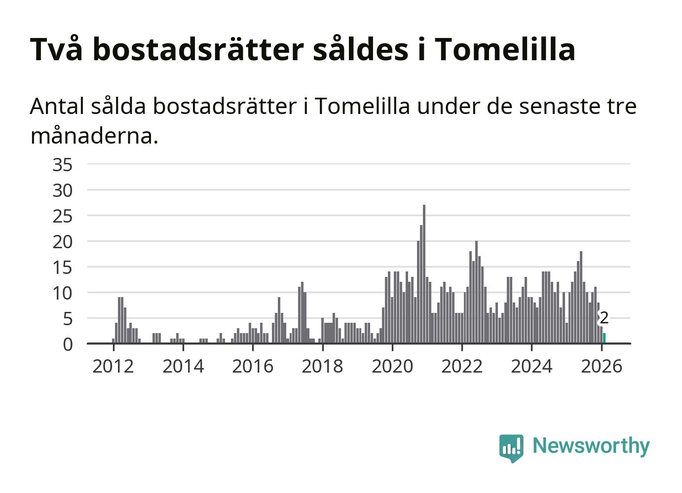 Graf: Antal sålda bostadsrätter i Tomelilla kommun