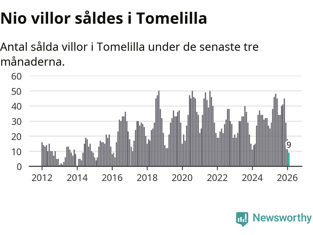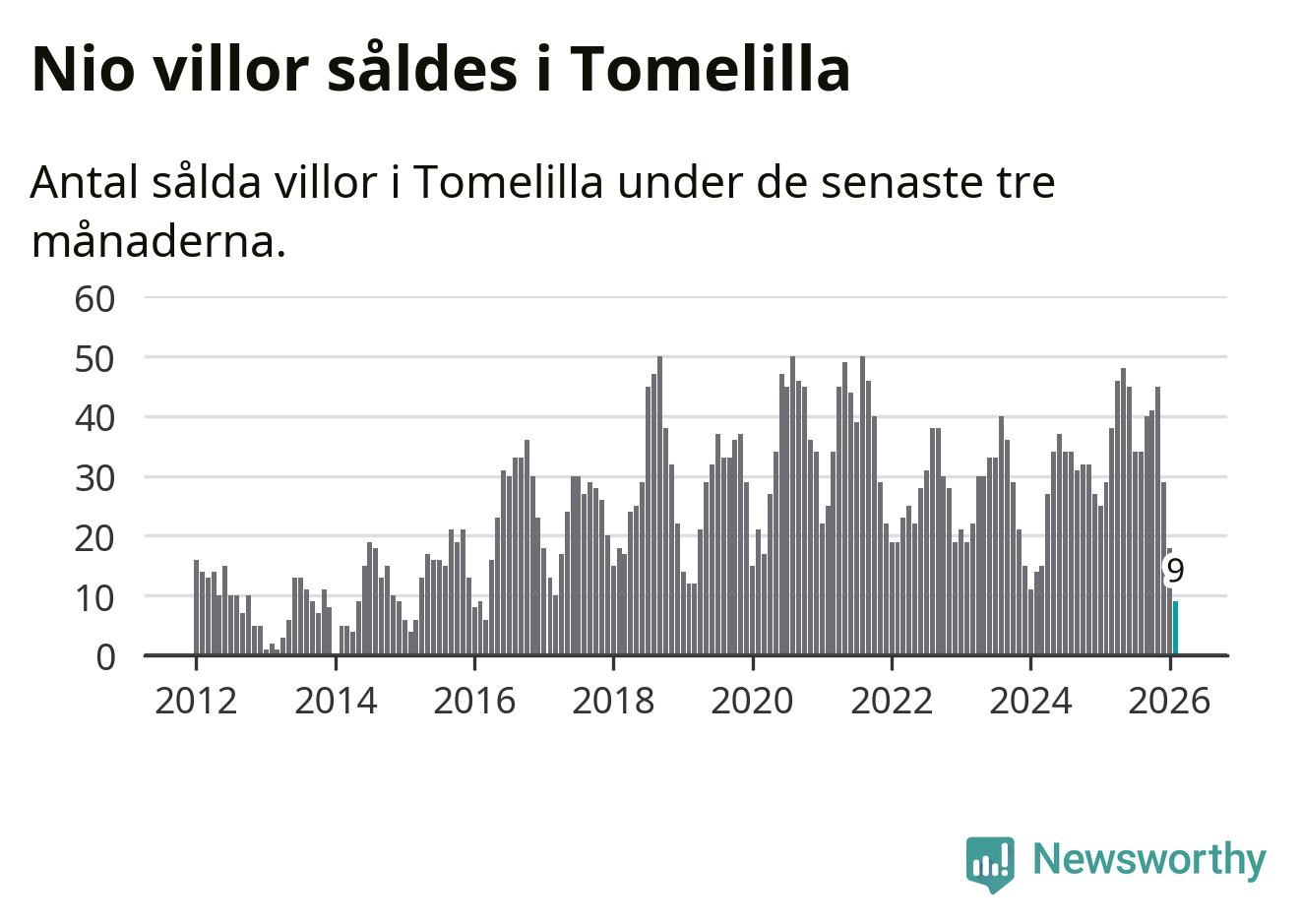 Graf: Antal sålda villor i Tomelilla kommun