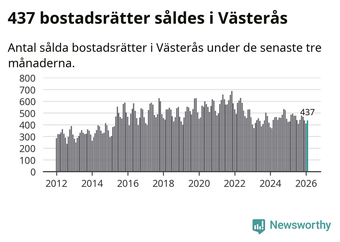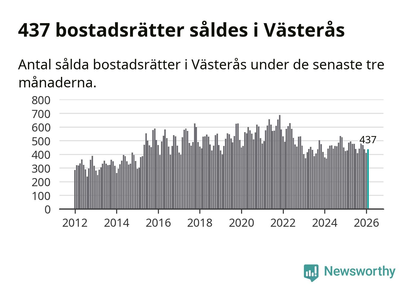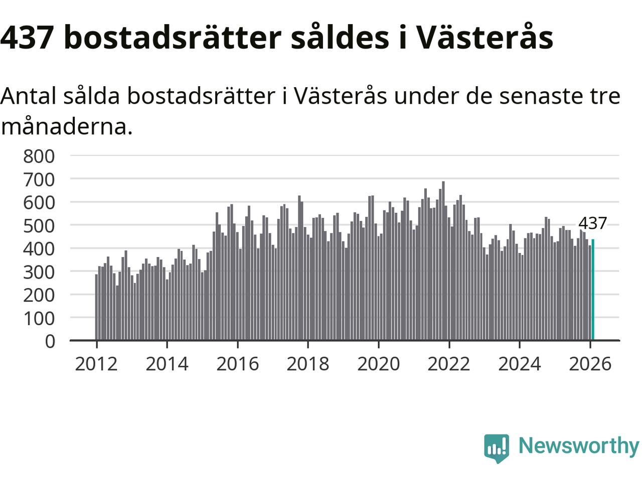 Sammanlagt såldes 437 bostadsrätter i Västerås kommun mellan december och februari till ett genomsnittligt pris på 1,7 miljoner kronor. I fjol gjordes 429 affärer vid den här tiden på året.