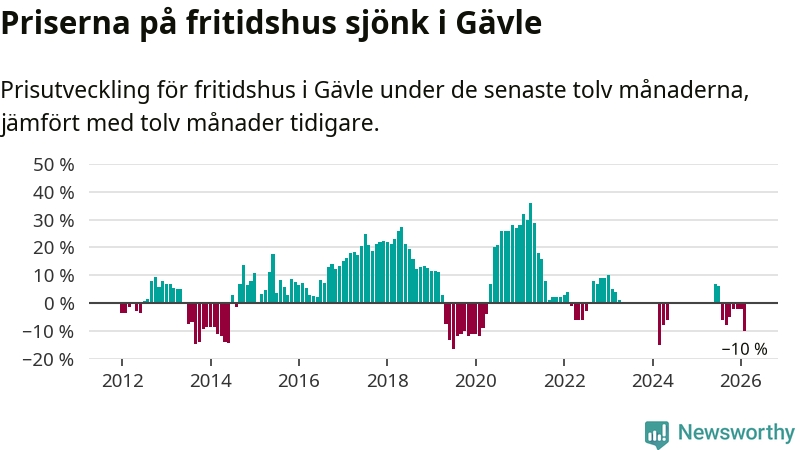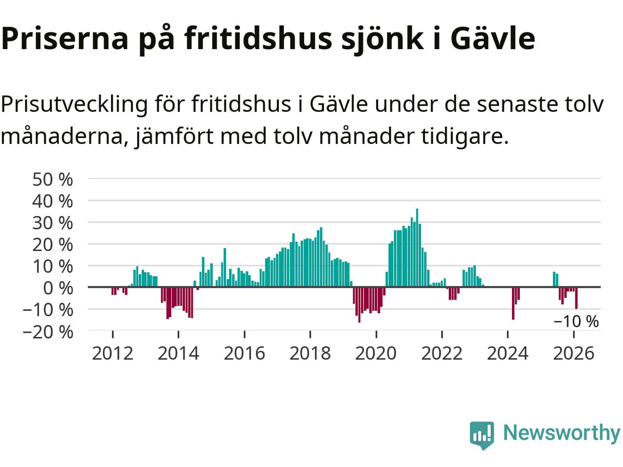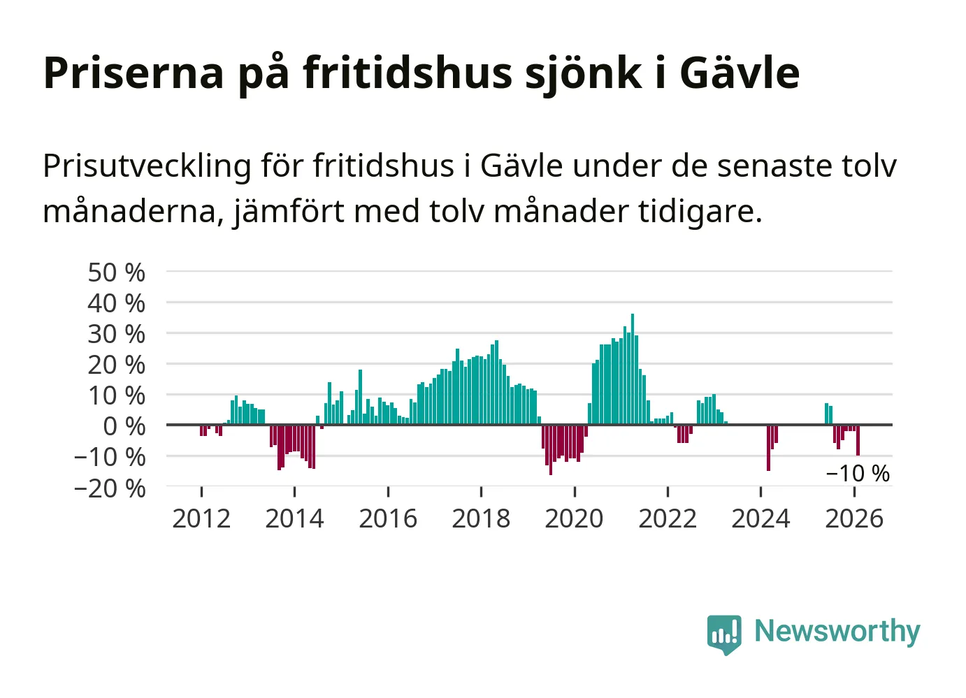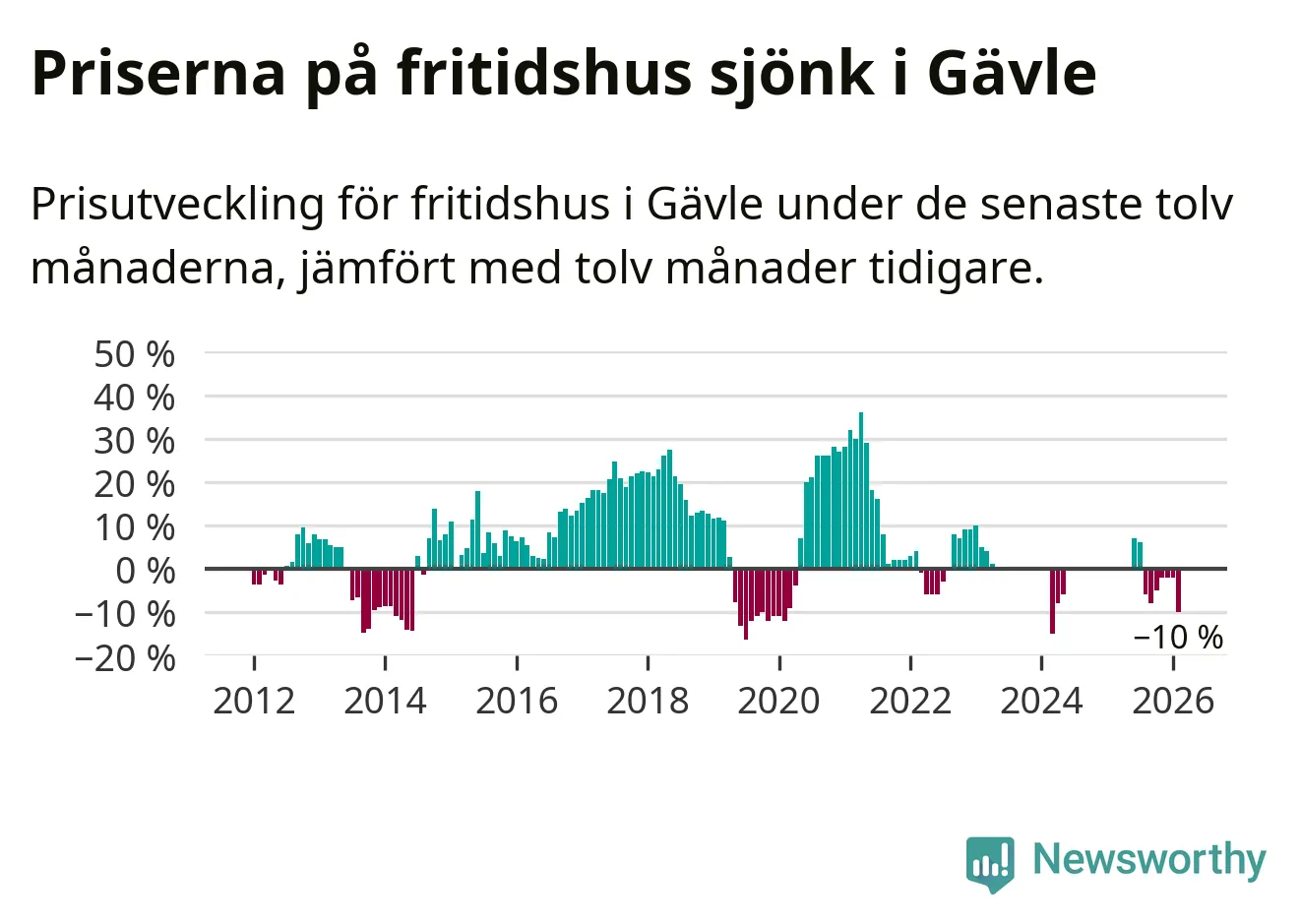 Priserna på fritidshus har gått ner i Gävle kommun. Medelpriset på försäljningarna under de senaste tolv månaderna visar på en nedgång med 10 procent.