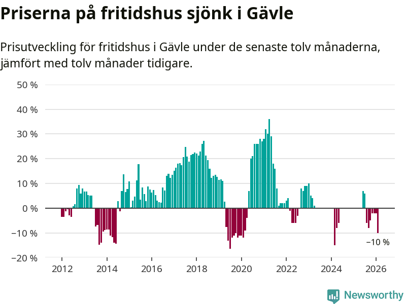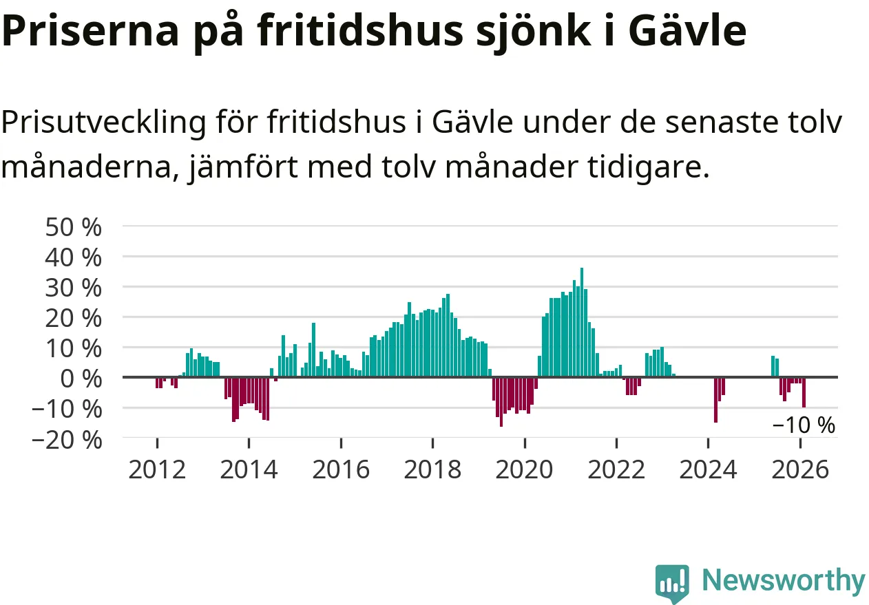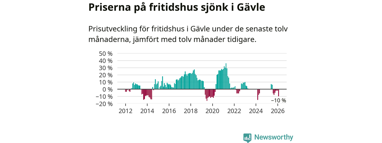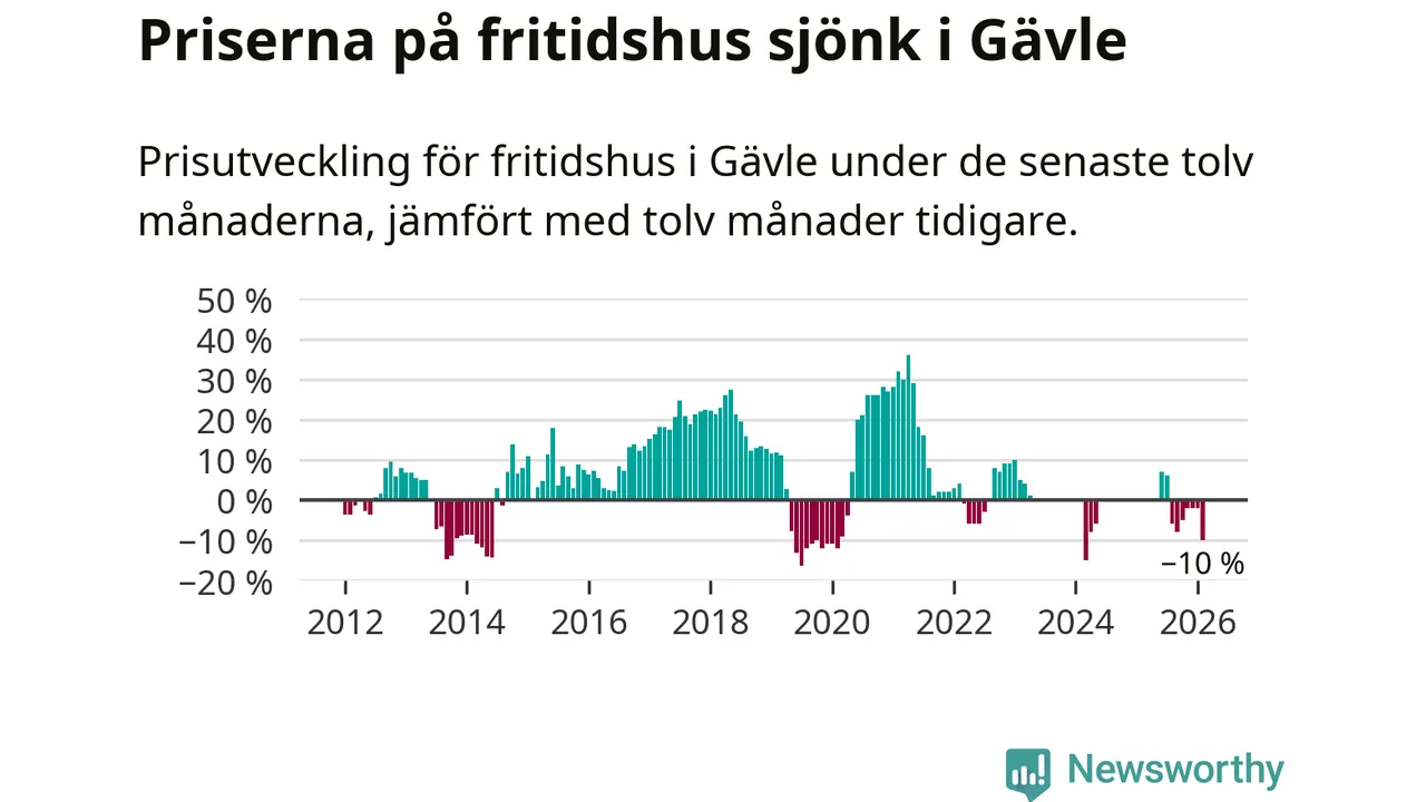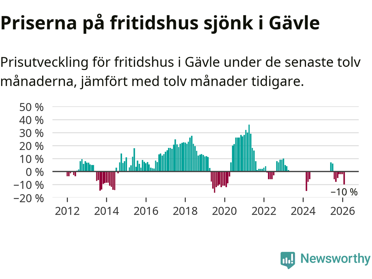 Priserna på fritidshus har gått ner i Gävle kommun. Medelpriset på försäljningarna under de senaste tolv månaderna visar på en nedgång med 10 procent.