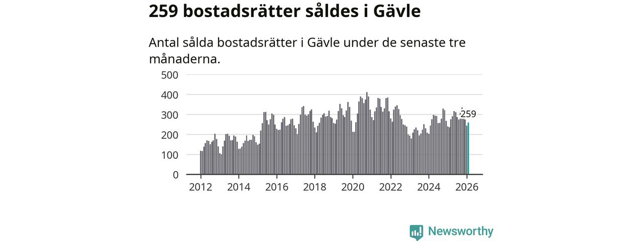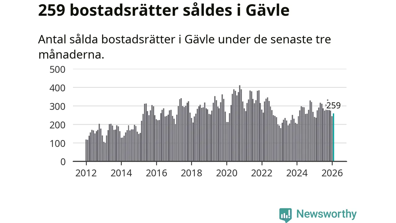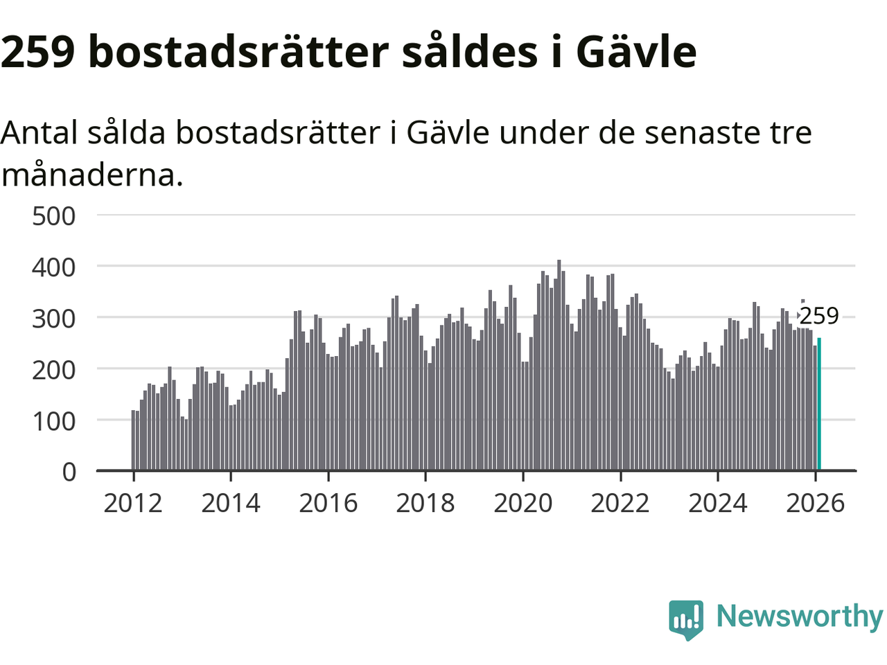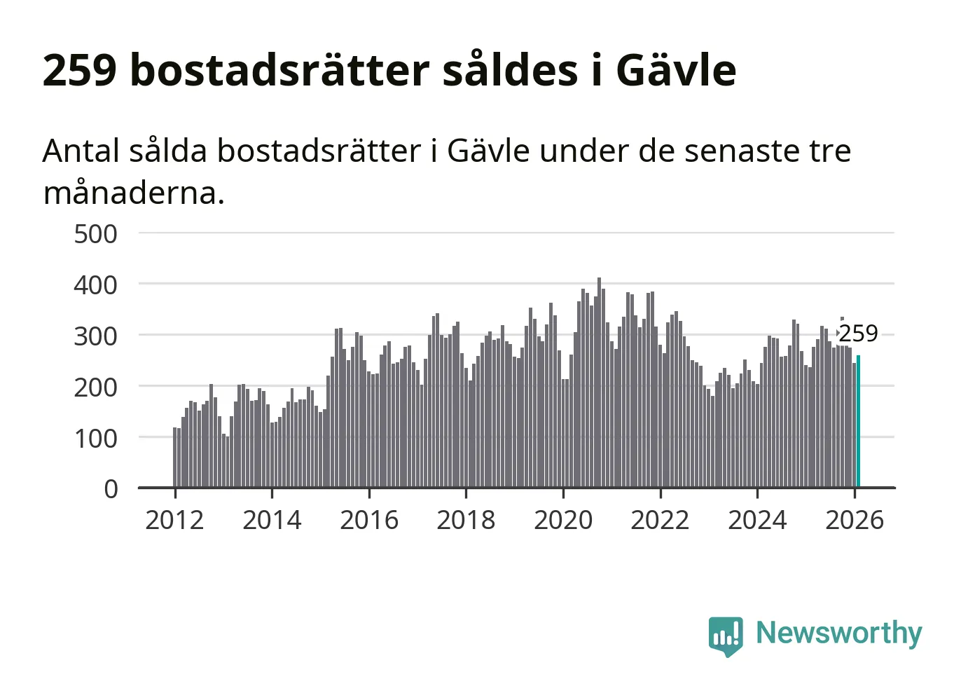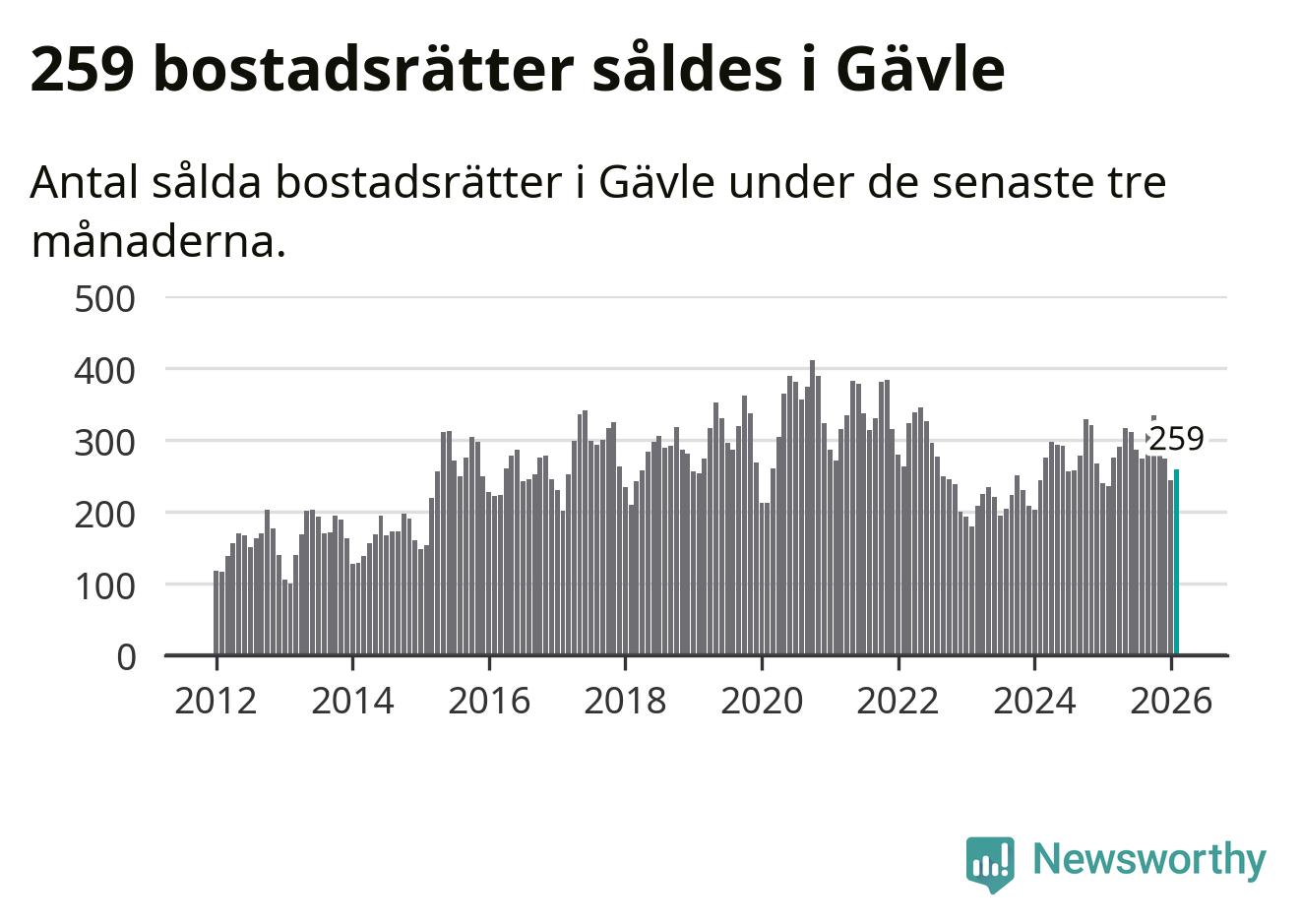 Sammanlagt såldes 259 bostadsrätter i Gävle kommun mellan december och februari till ett genomsnittligt pris på 1,7 miljoner kronor. I fjol gjordes 236 affärer vid den här tiden på året.