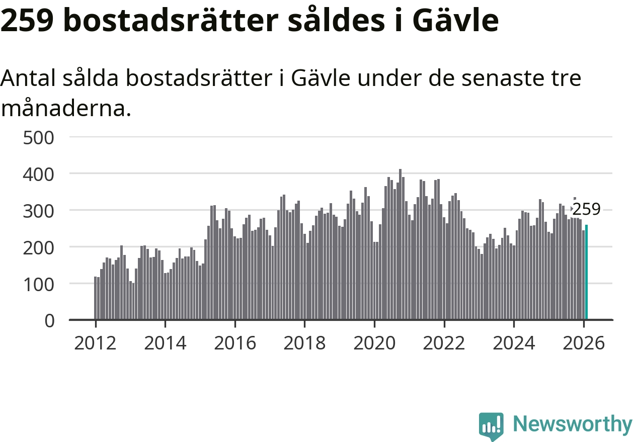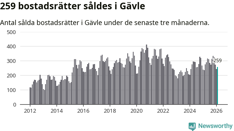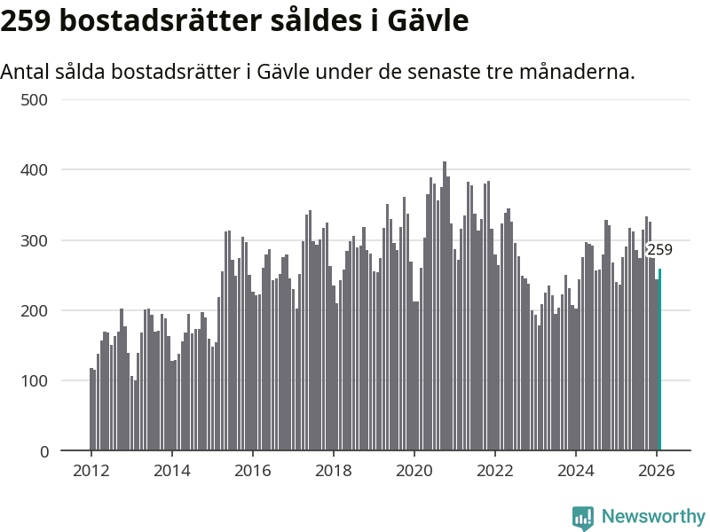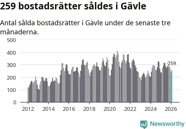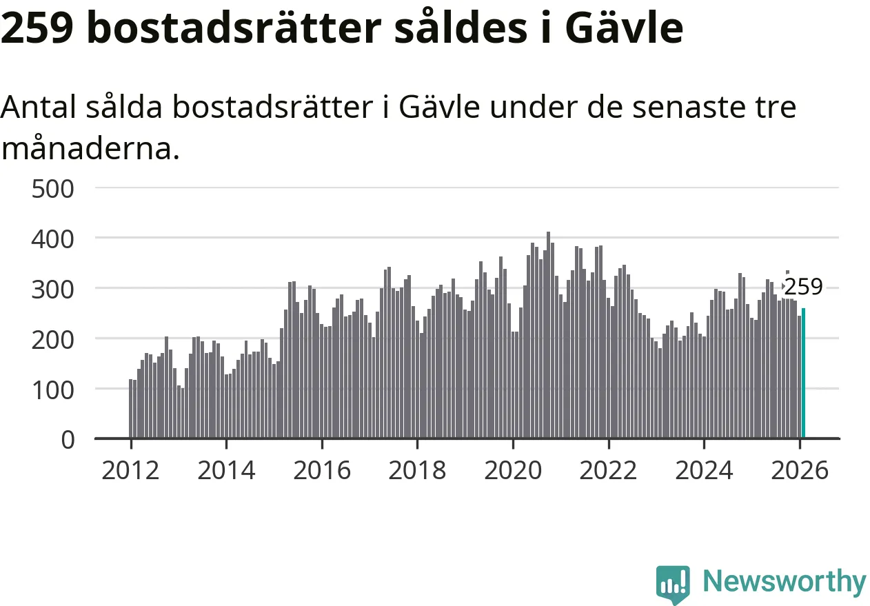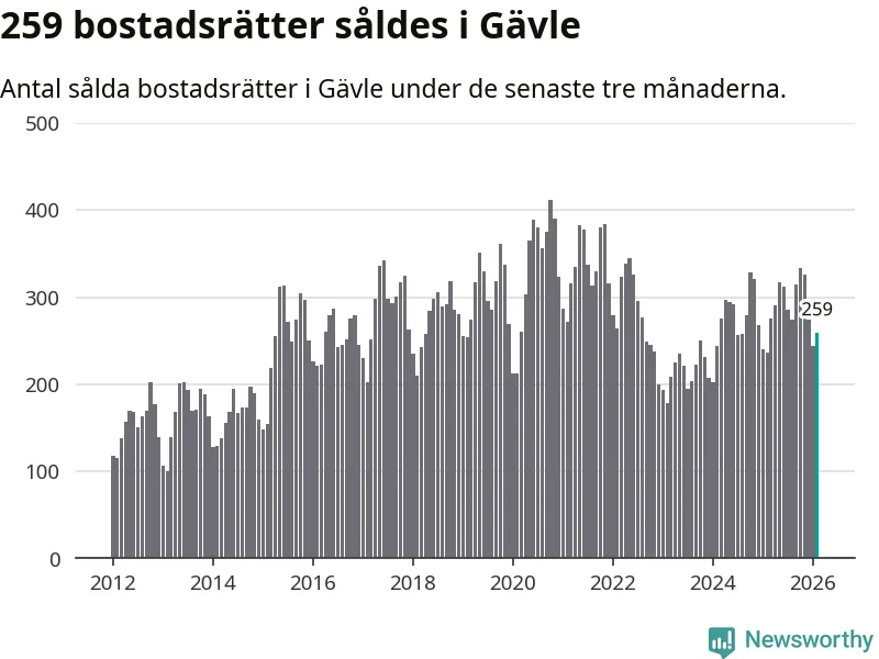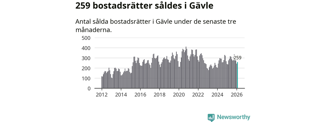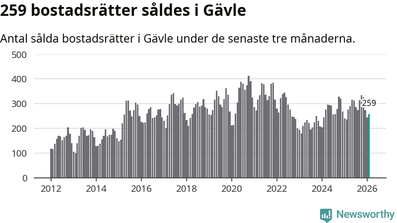 Sammanlagt såldes 259 bostadsrätter i Gävle kommun mellan december och februari till ett genomsnittligt pris på 1,7 miljoner kronor. I fjol gjordes 236 affärer vid den här tiden på året.