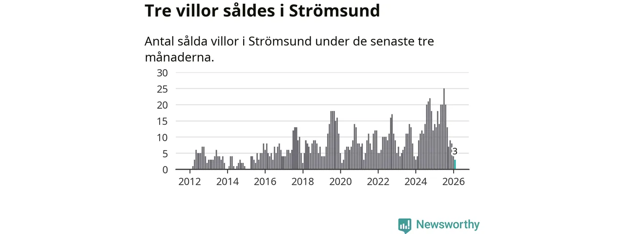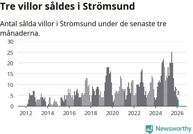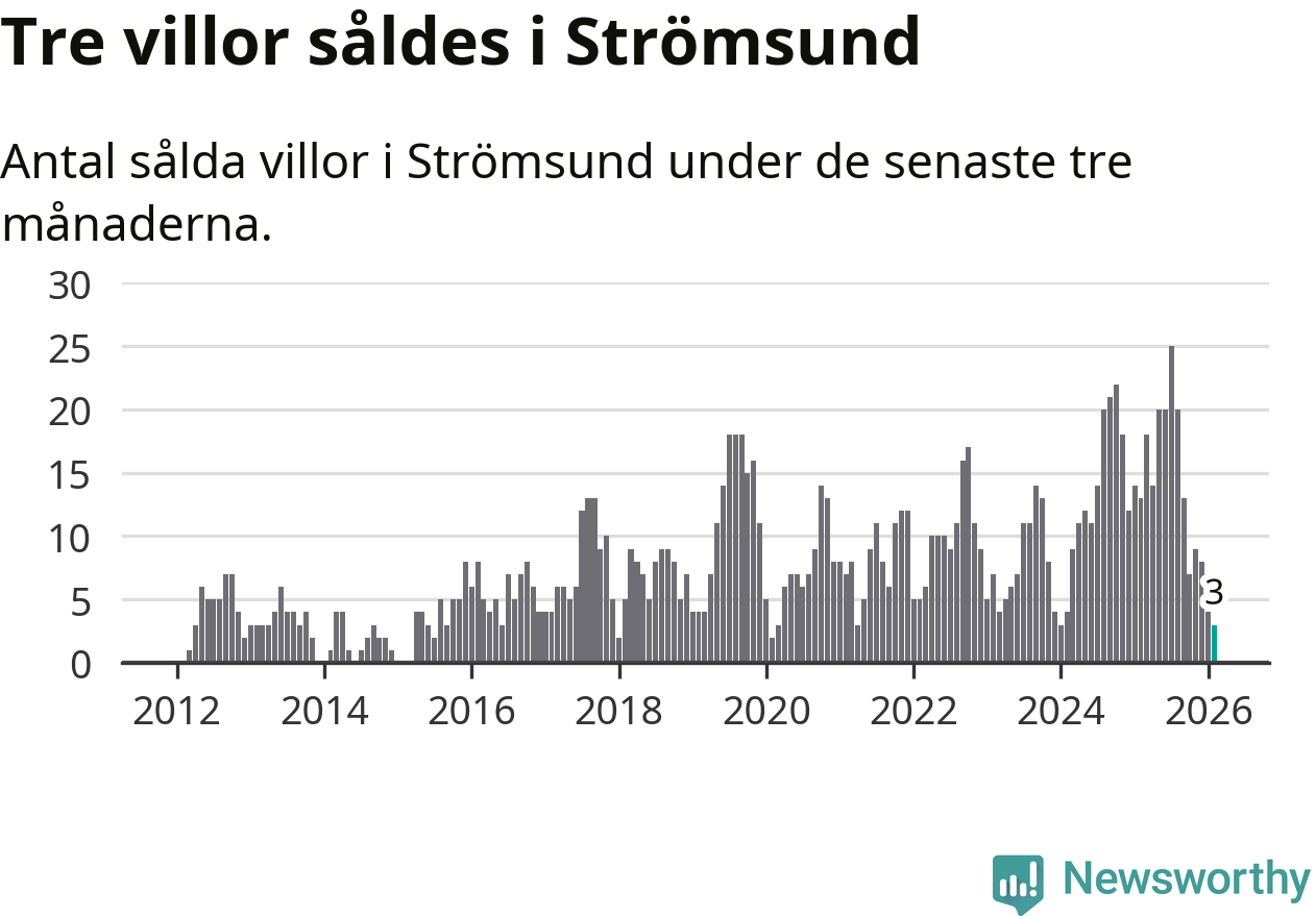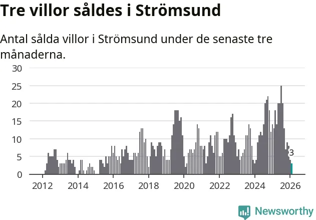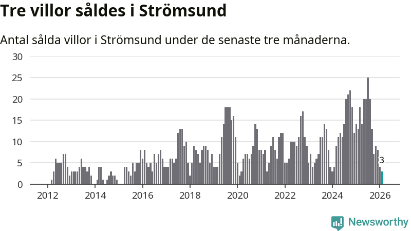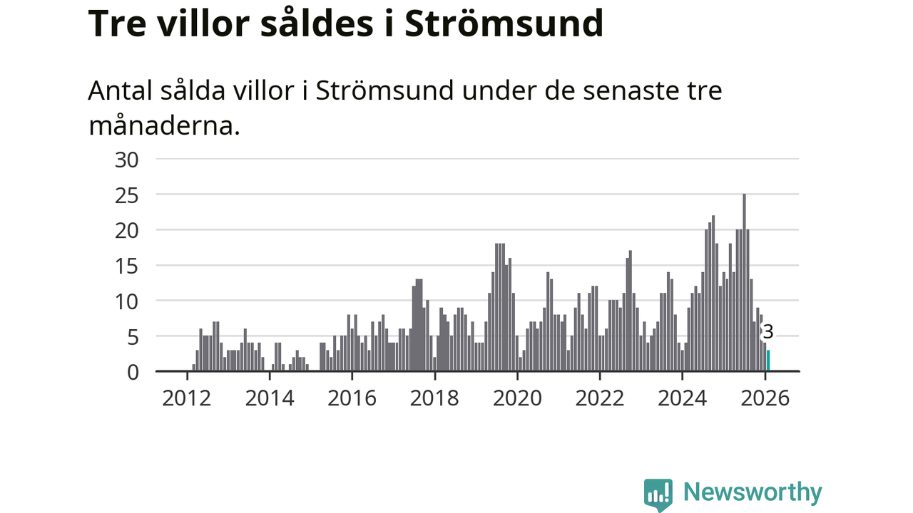 Mellan december och februari gjordes sammanlagt tre affärer med villor i Strömsunds kommun. Det kan jämföras med 13 vid motsvarande tid i fjol.