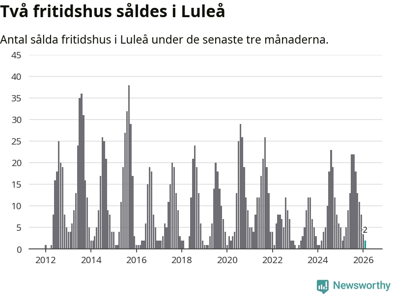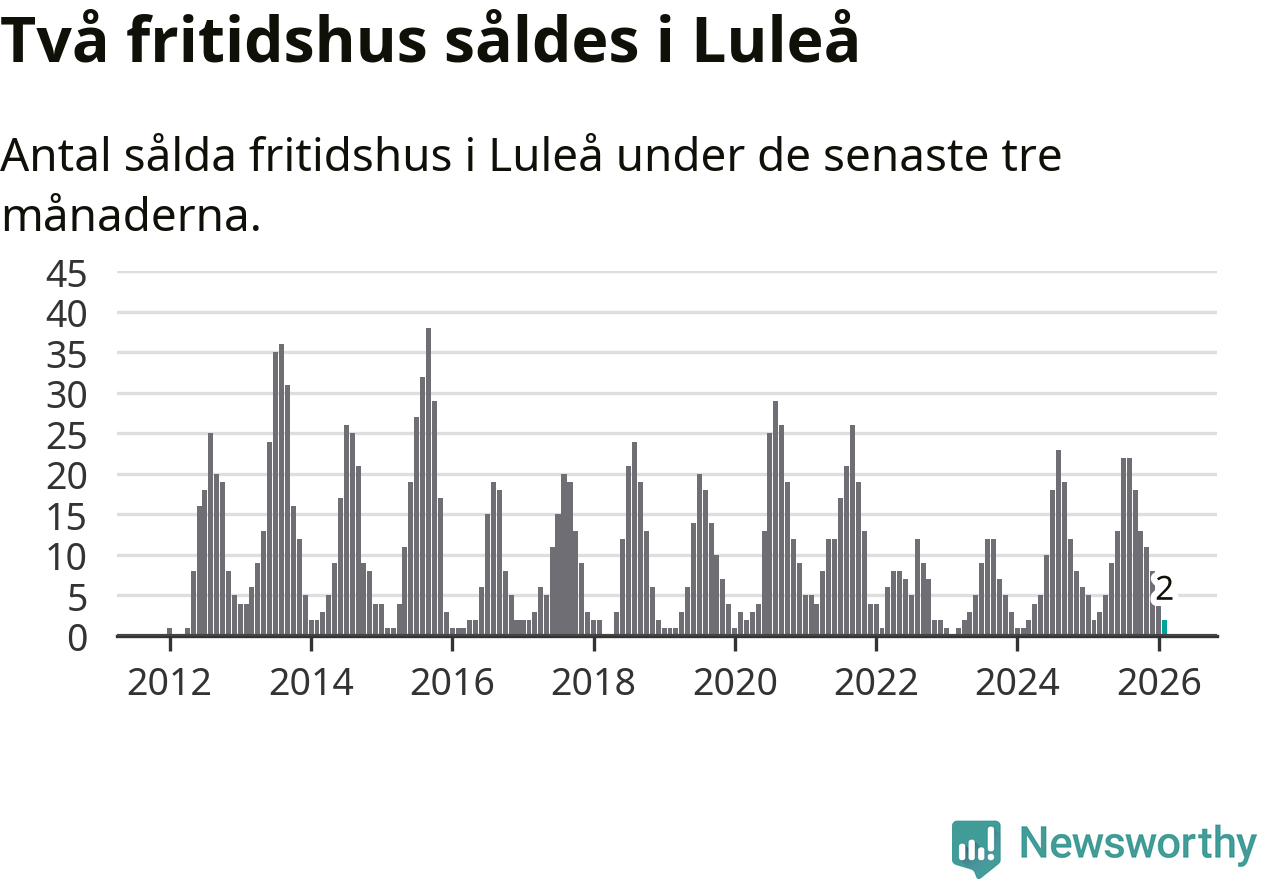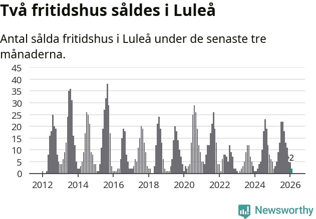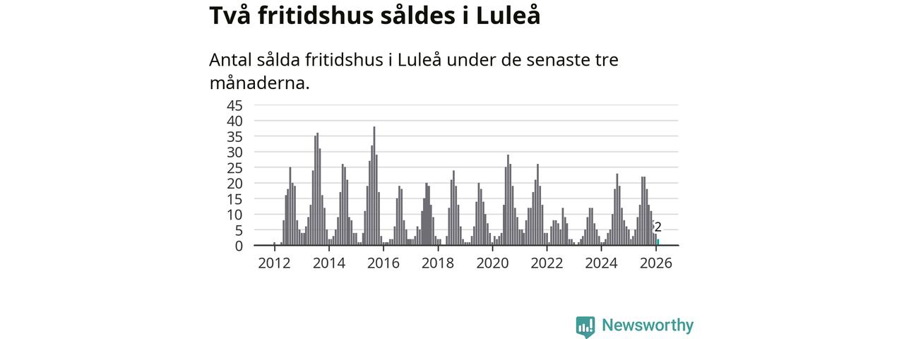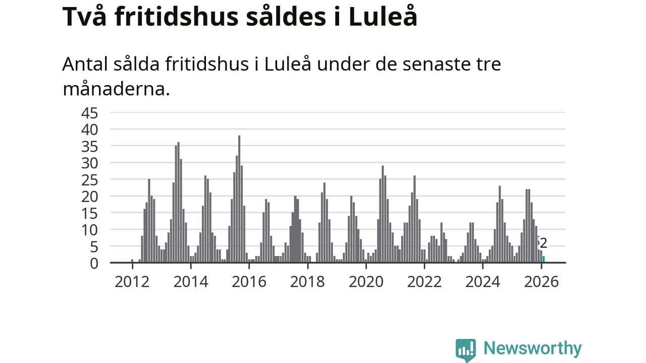 Sammanlagt såldes två fritidshus i Luleå kommun mellan december 2025 och februari till ett genomsnittligt pris på 2,1 miljoner kronor. I fjol gjordes två affärer vid den här tiden på året.