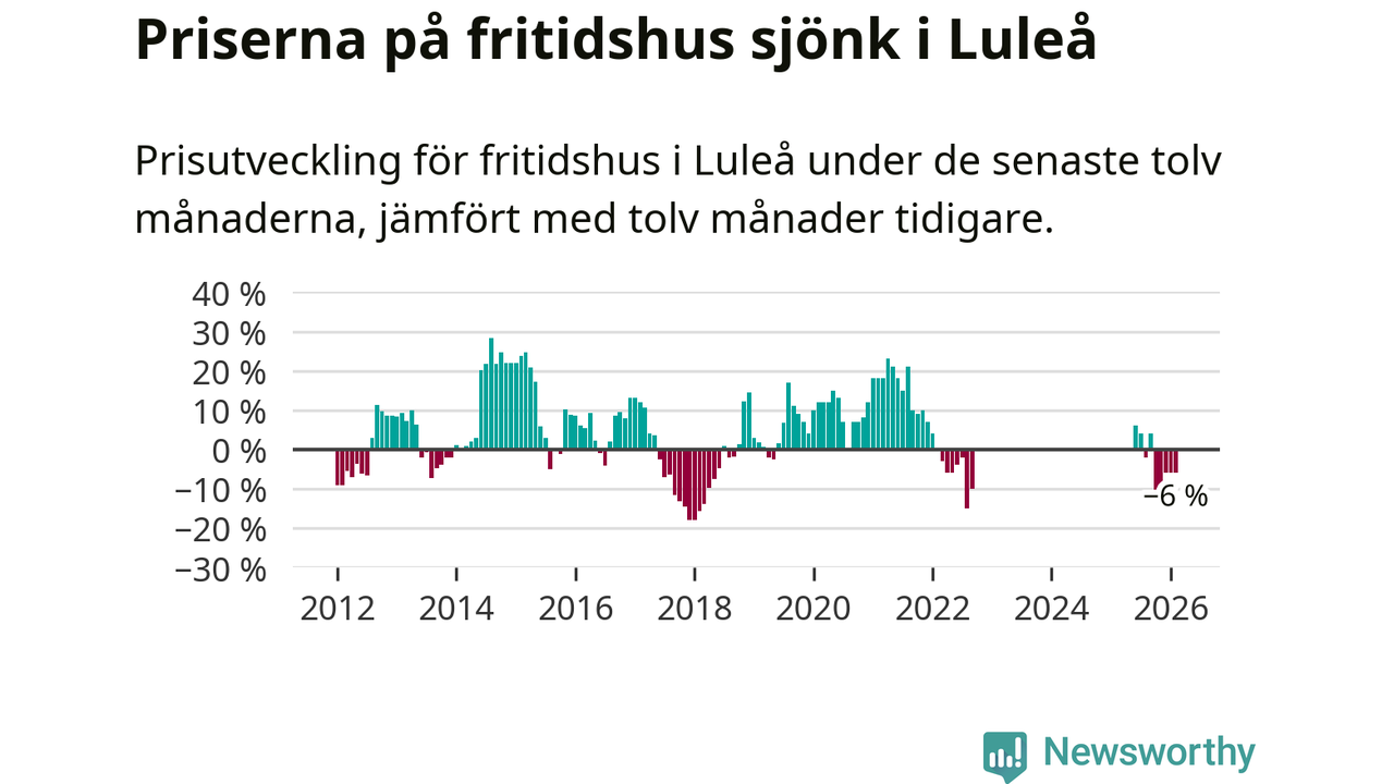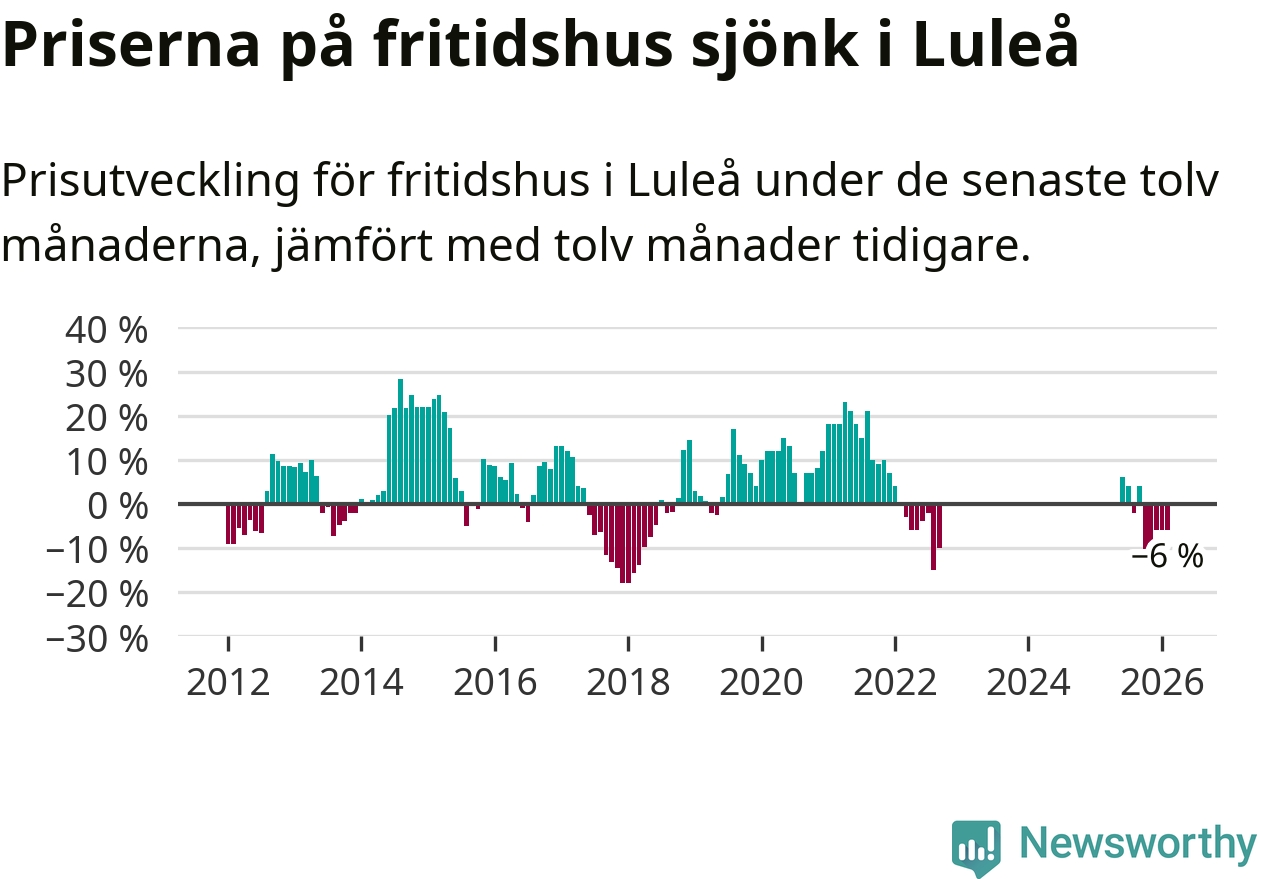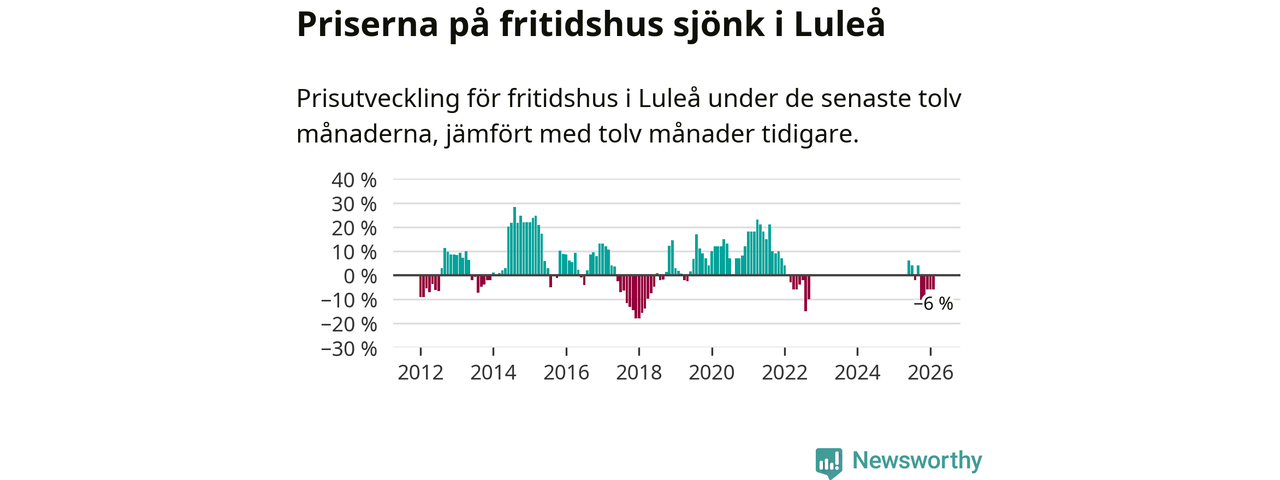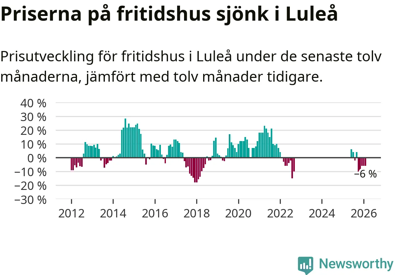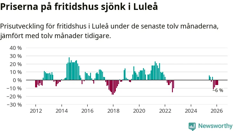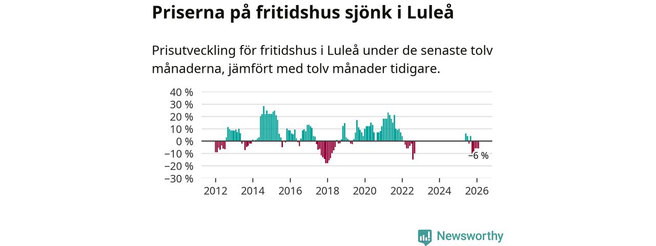 Priserna på fritidshus har gått ner i Luleå kommun. Medelpriset på försäljningarna under de senaste tolv månaderna visar på en nedgång med 6 procent.
