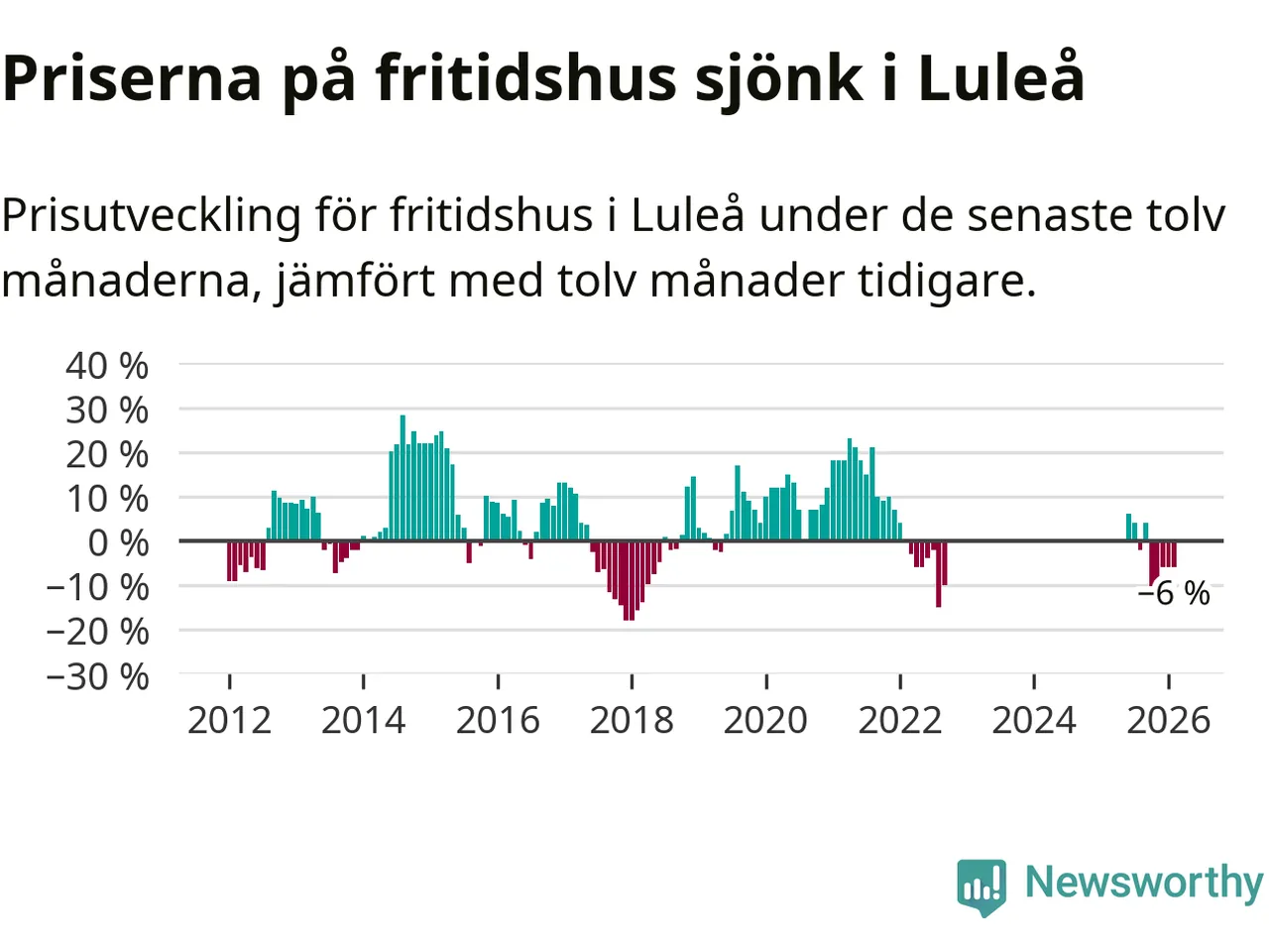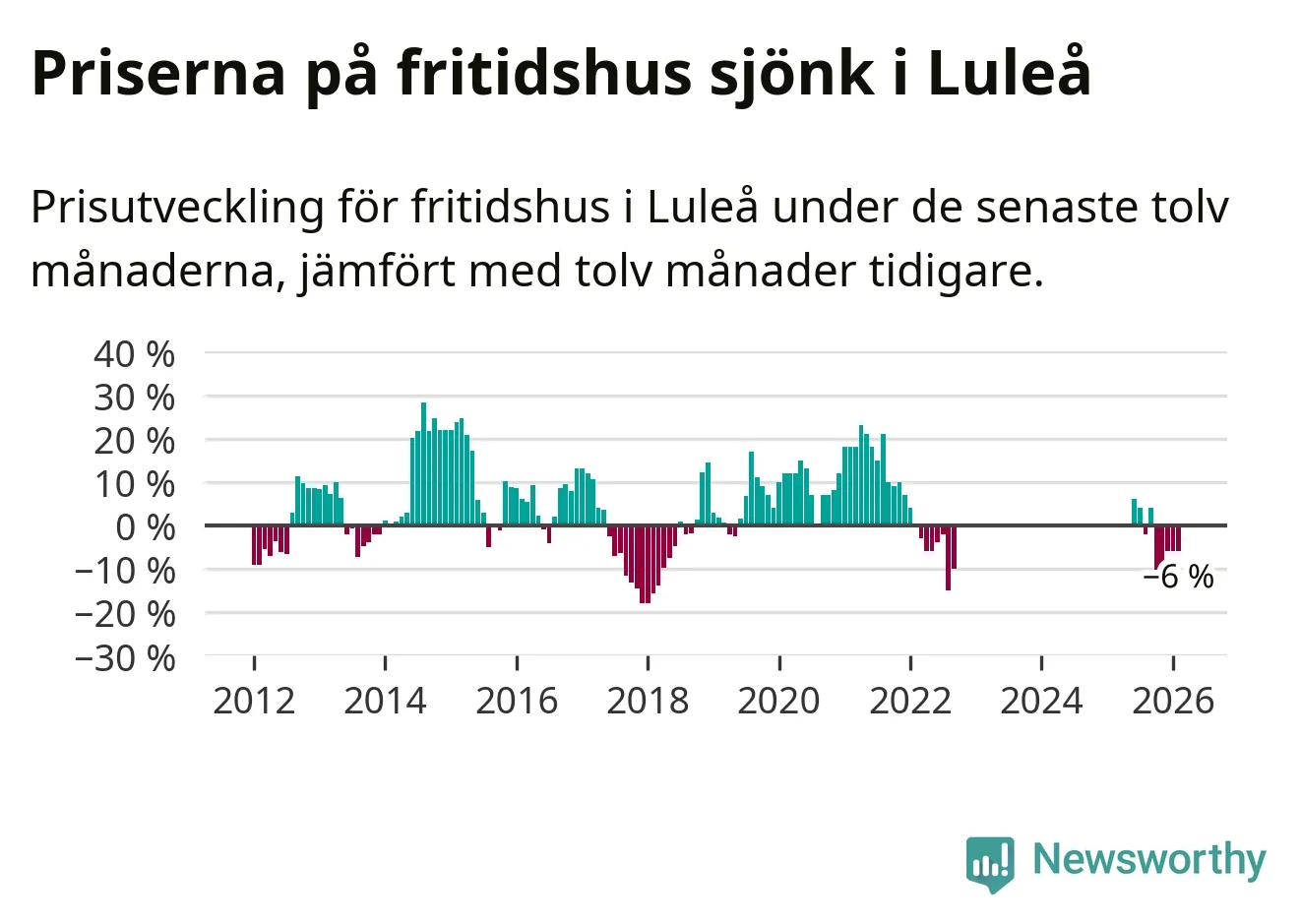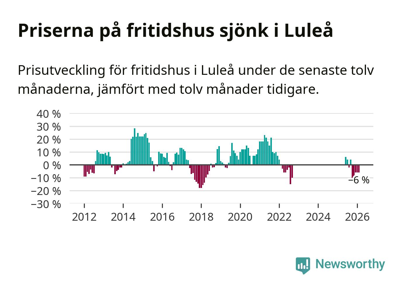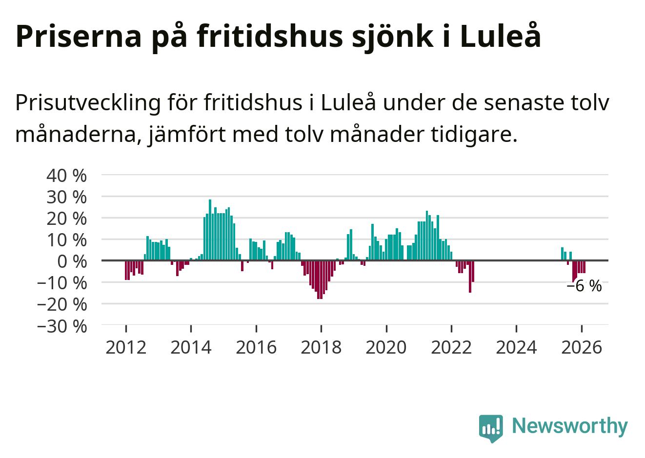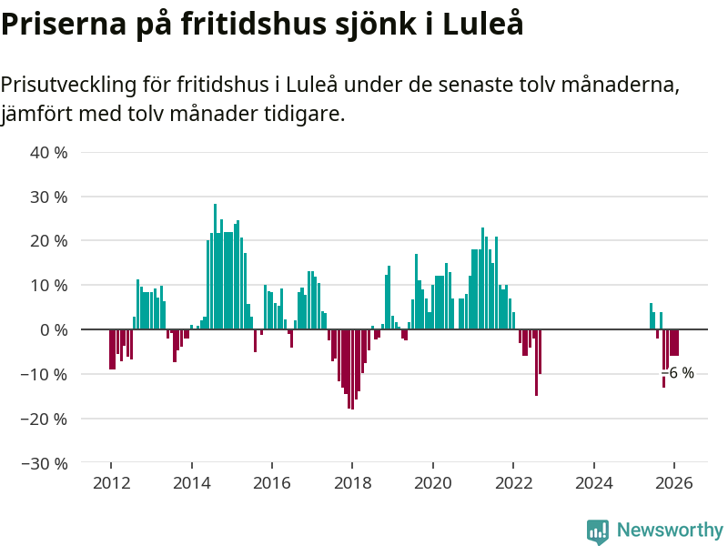 Priserna på fritidshus har gått ner i Luleå kommun. Medelpriset på försäljningarna under de senaste tolv månaderna visar på en nedgång med 6 procent.