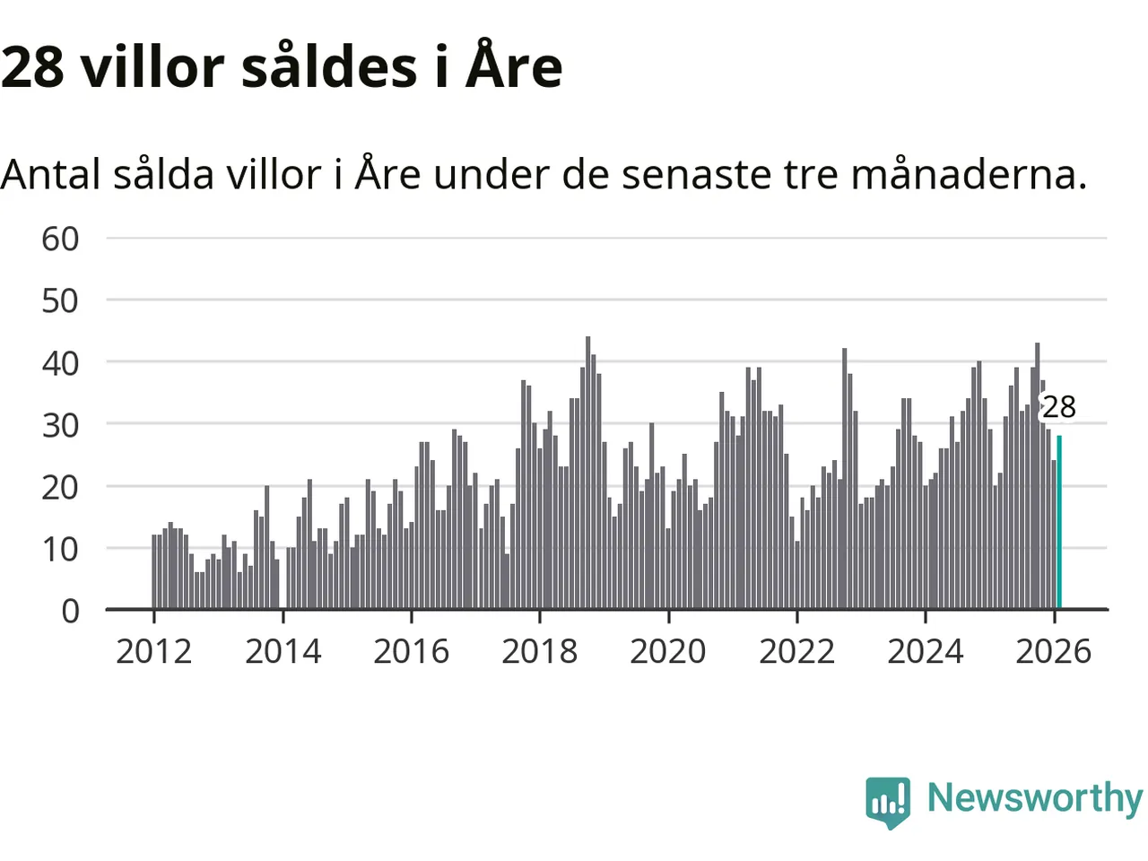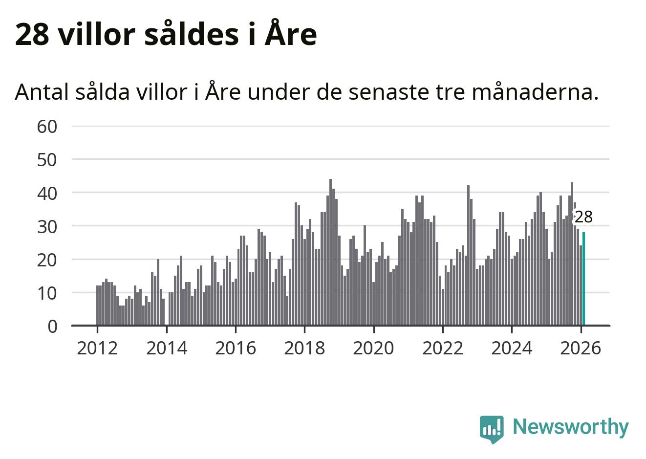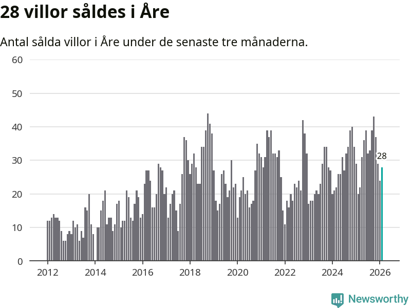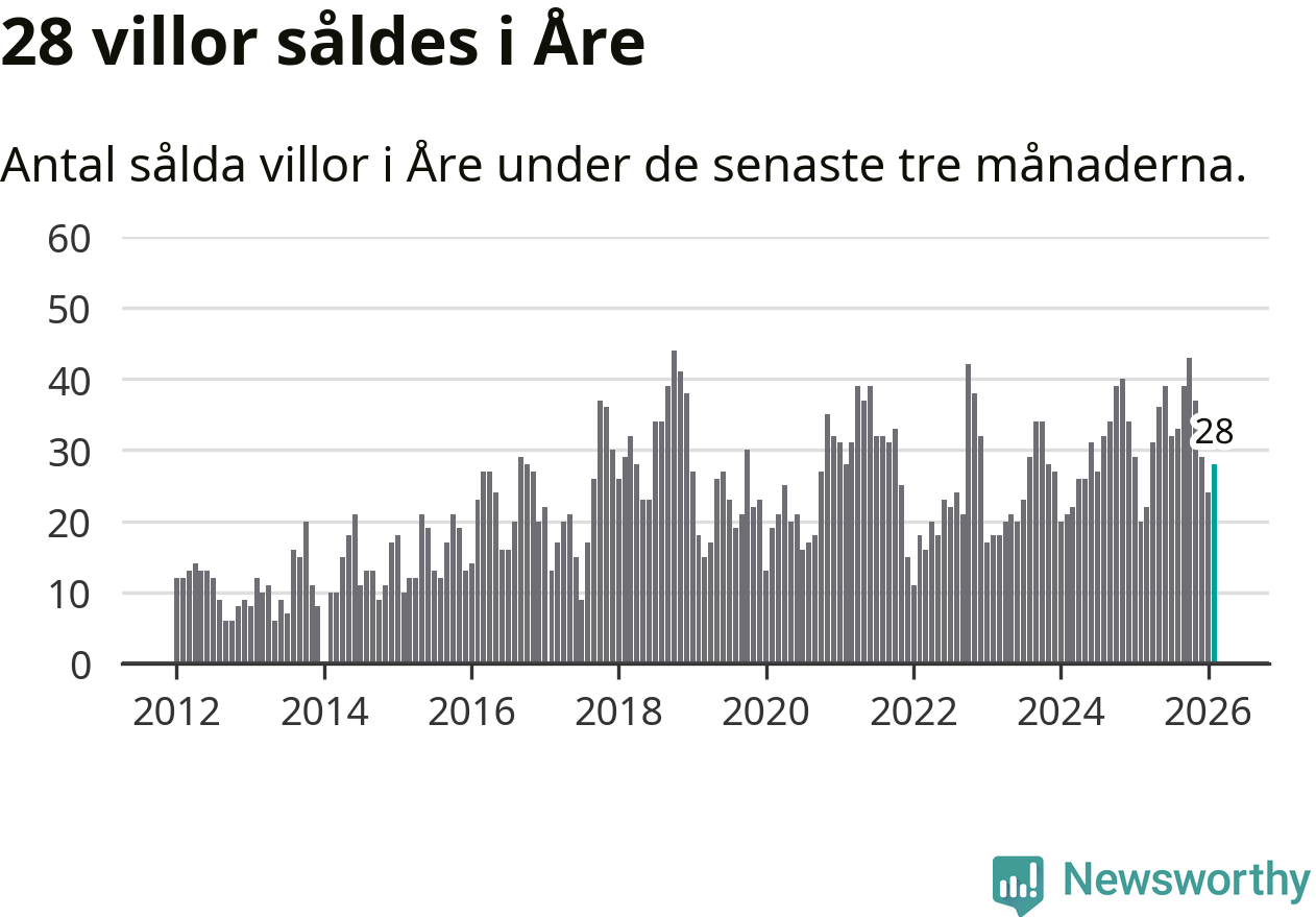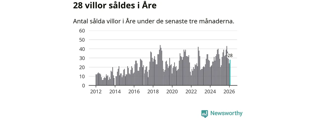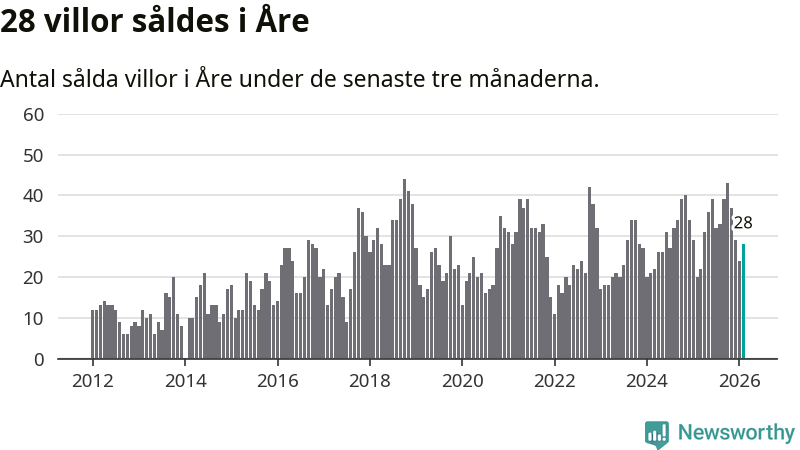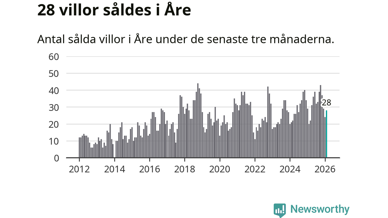 Mellan december och februari gjordes sammanlagt 28 affärer med villor i Åre kommun. Det kan jämföras med 20 vid motsvarande tid i fjol.