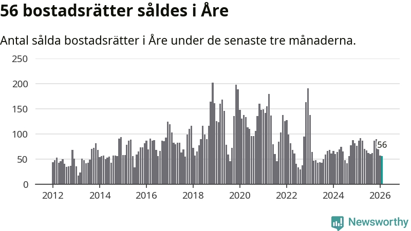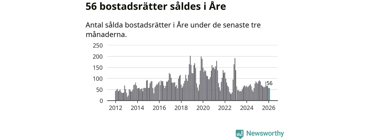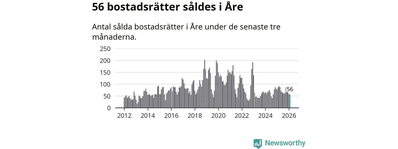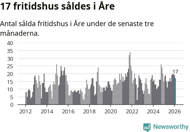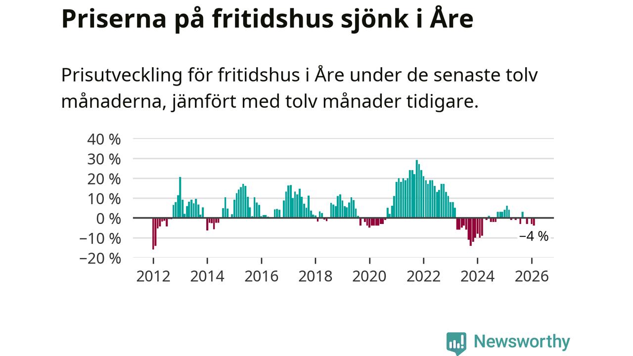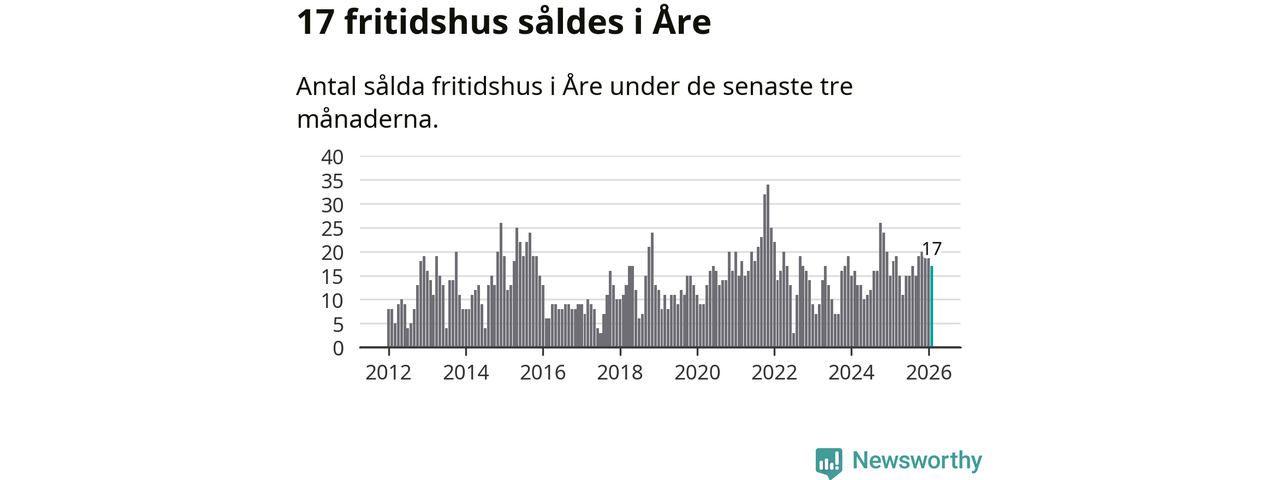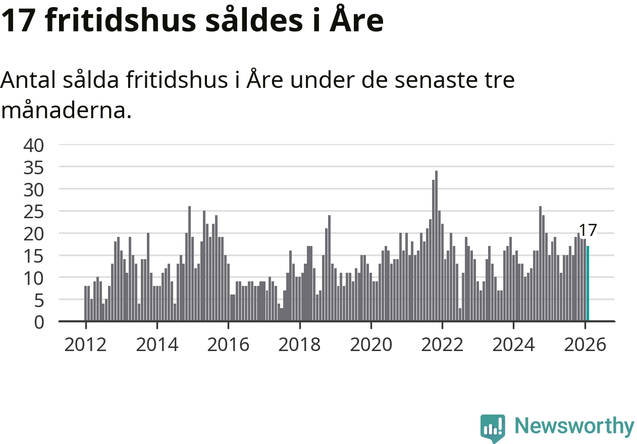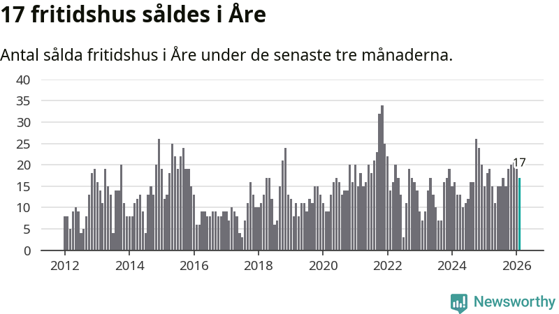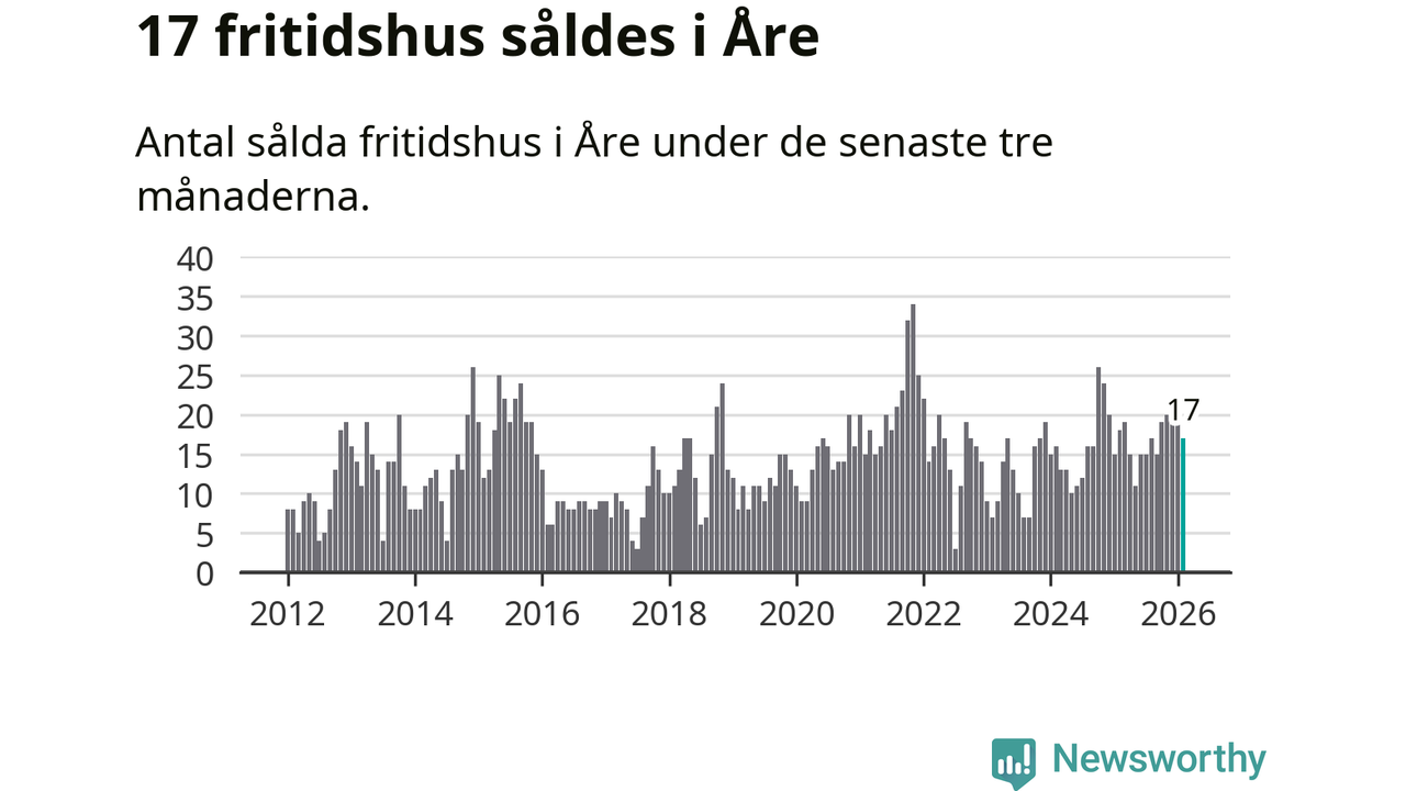 Sammanlagt såldes 17 fritidshus i Åre kommun mellan december 2025 och februari till ett genomsnittligt pris på 3,4 miljoner kronor. I fjol gjordes 18 affärer vid den här tiden på året.