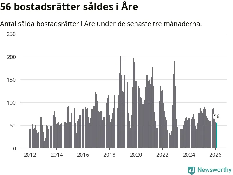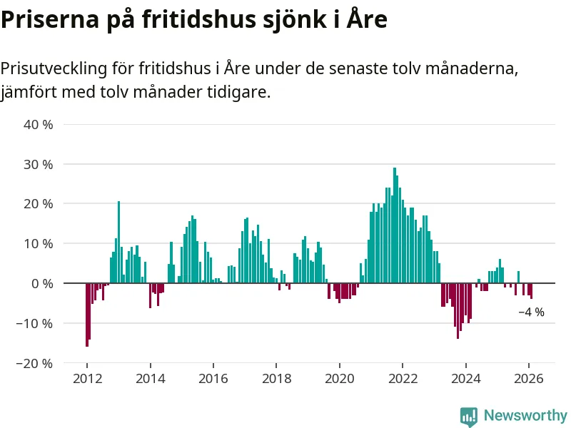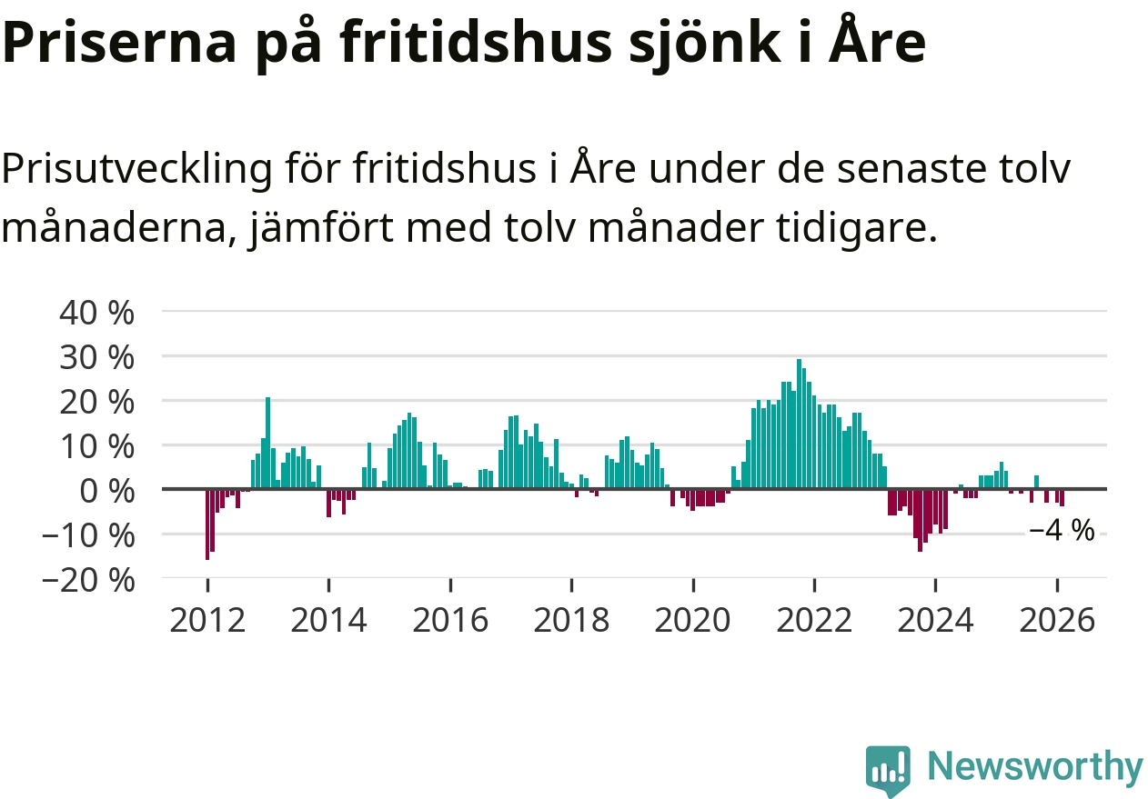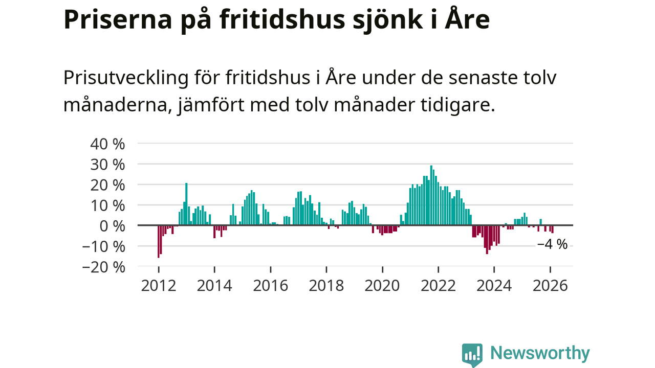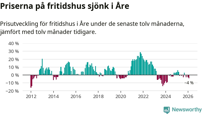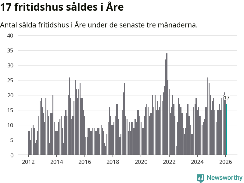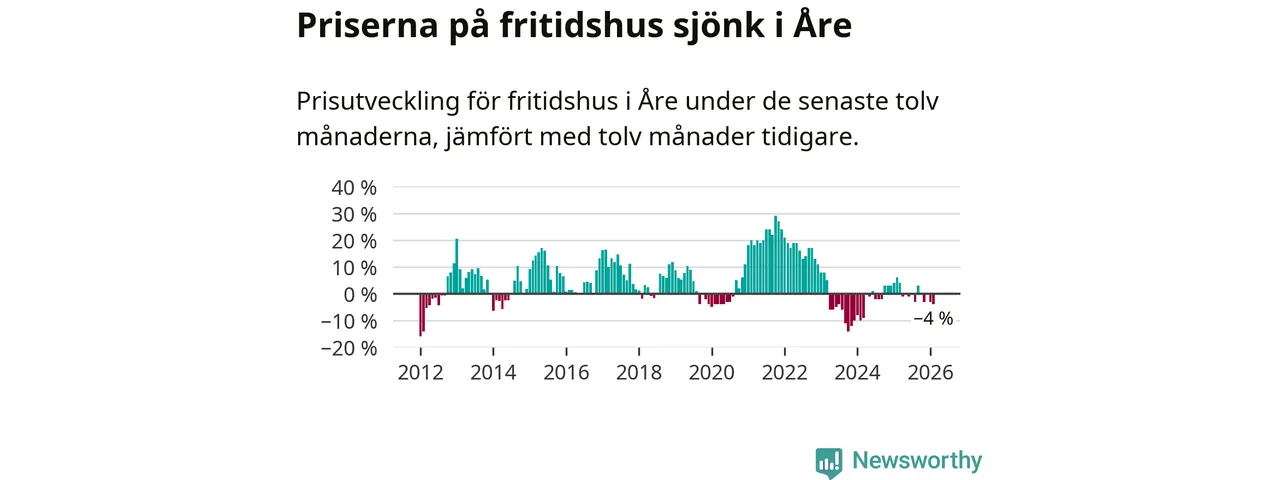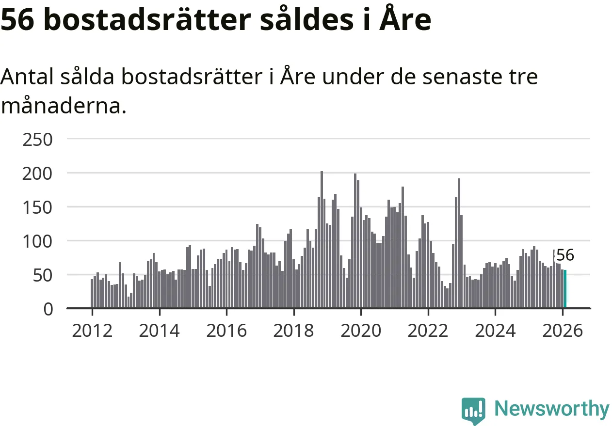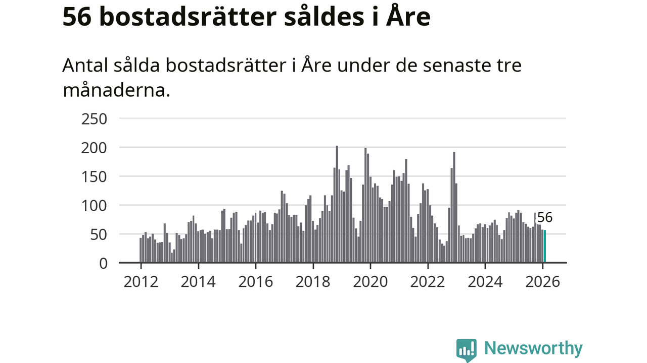 Sammanlagt såldes 17 fritidshus i Åre kommun mellan december 2025 och februari till ett genomsnittligt pris på 3,4 miljoner kronor. I fjol gjordes 18 affärer vid den här tiden på året.