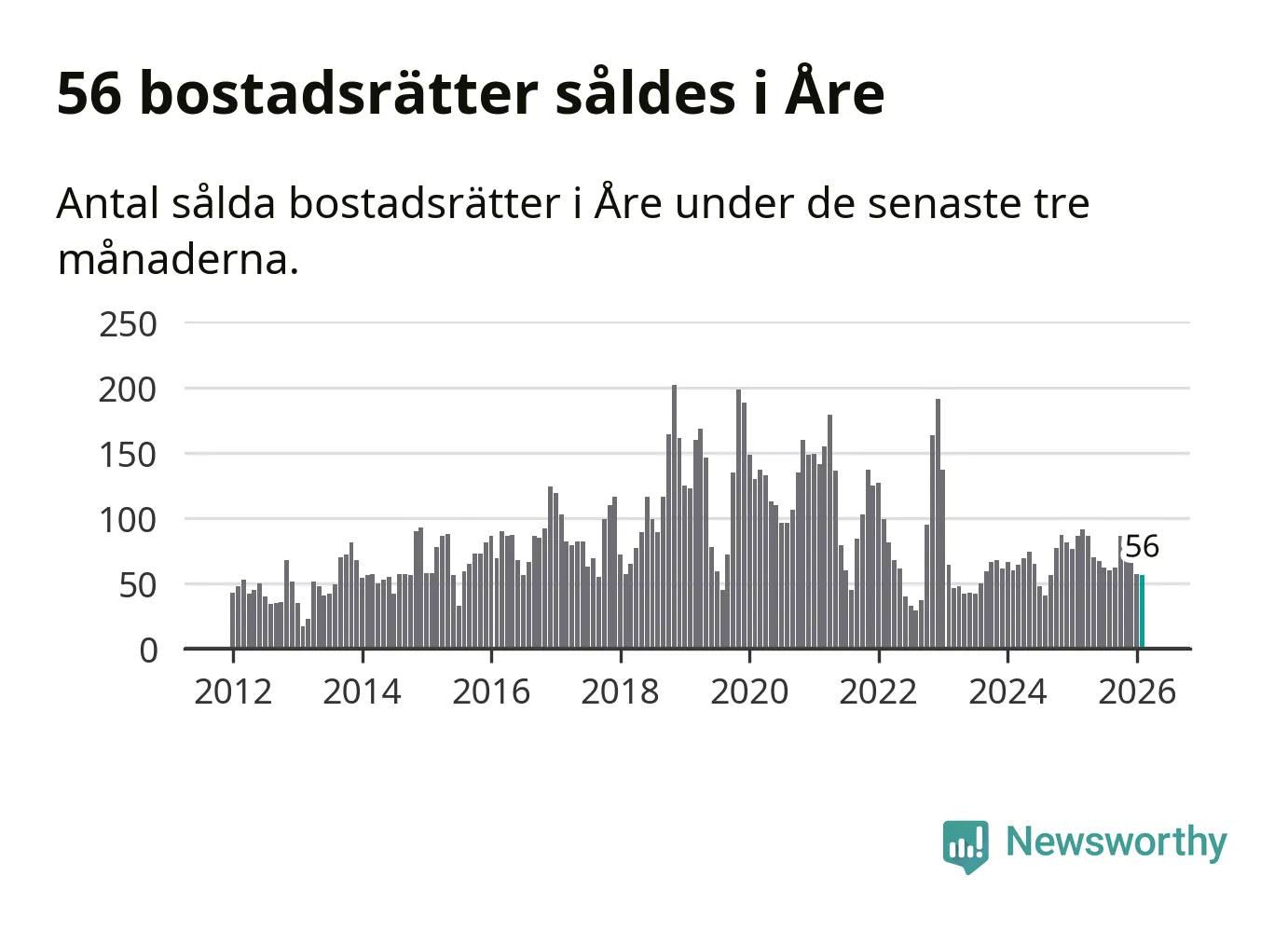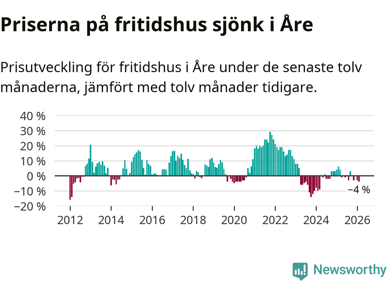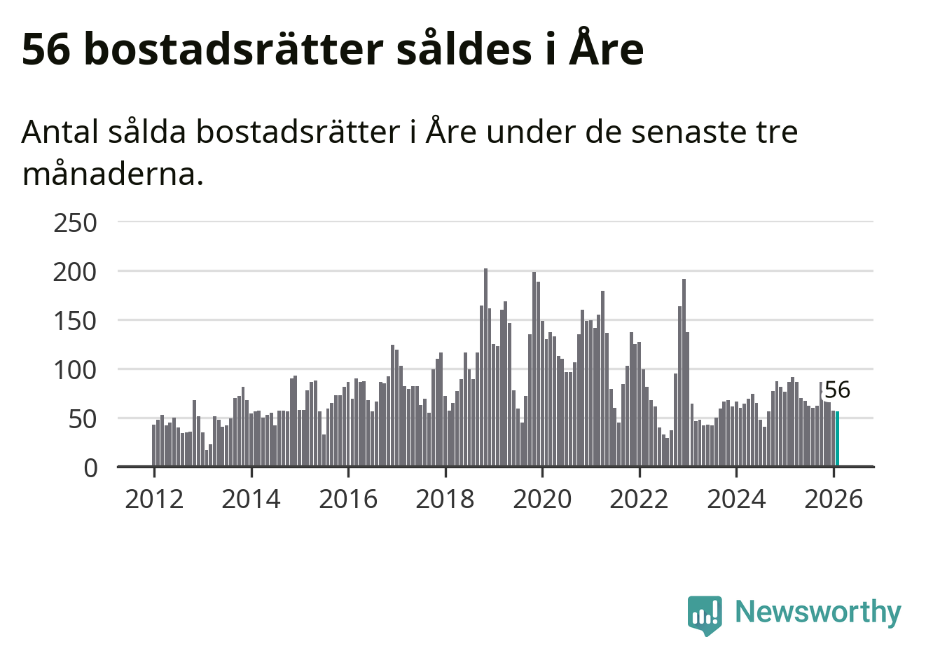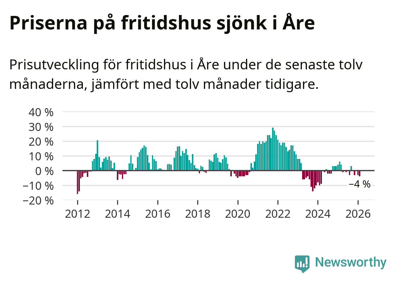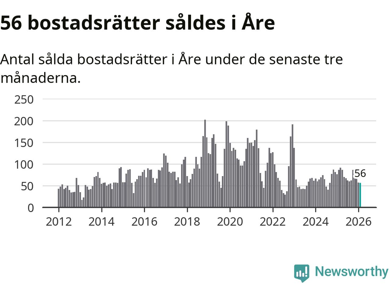 Sammanlagt såldes 17 fritidshus i Åre kommun mellan december 2025 och februari till ett genomsnittligt pris på 3,4 miljoner kronor. I fjol gjordes 18 affärer vid den här tiden på året.