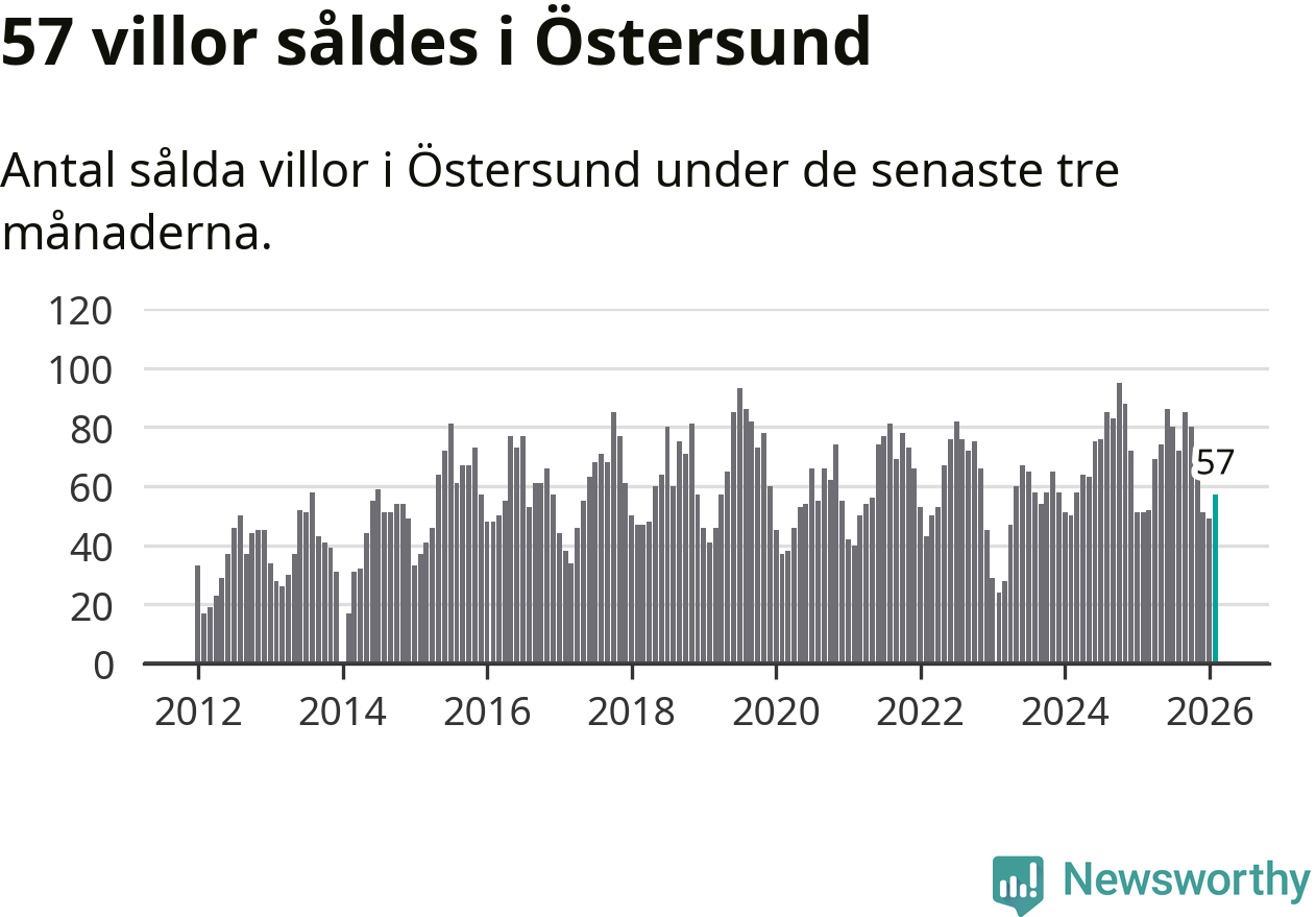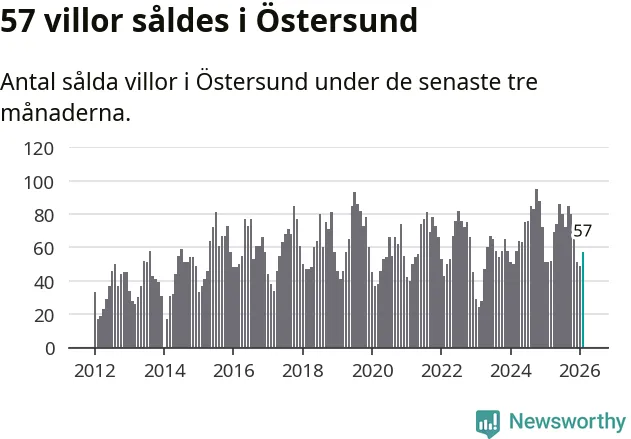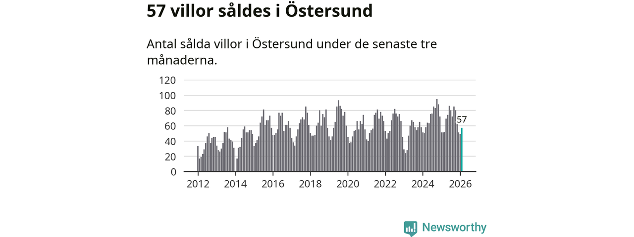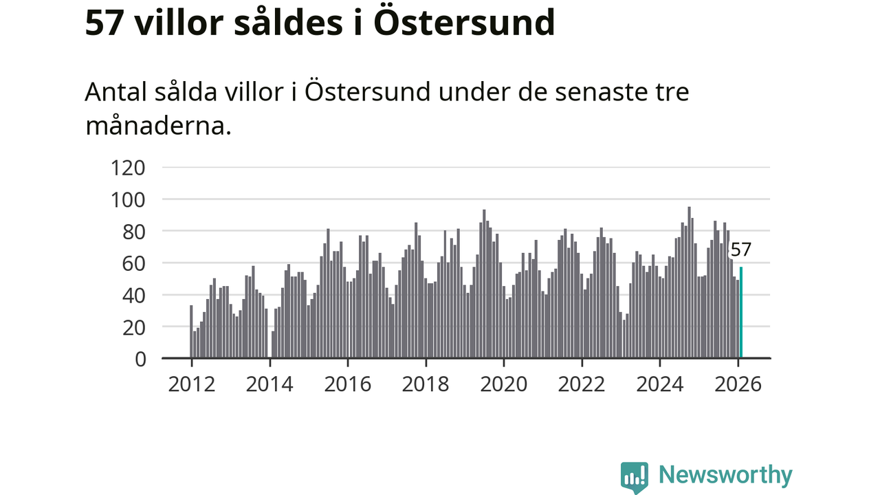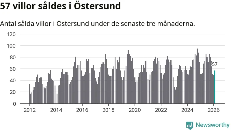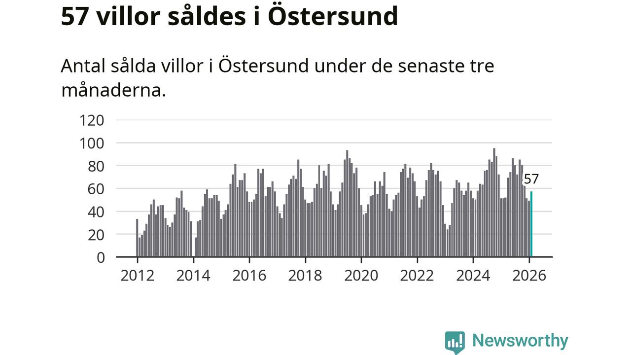 Sammanlagt såldes 57 villor i Östersunds kommun mellan december och februari till ett genomsnittligt pris på 3,7 miljoner kronor. I fjol gjordes 51 affärer vid den här tiden på året.