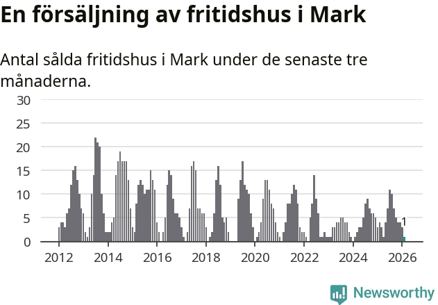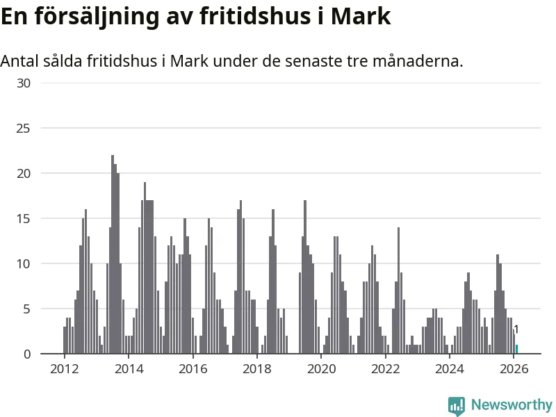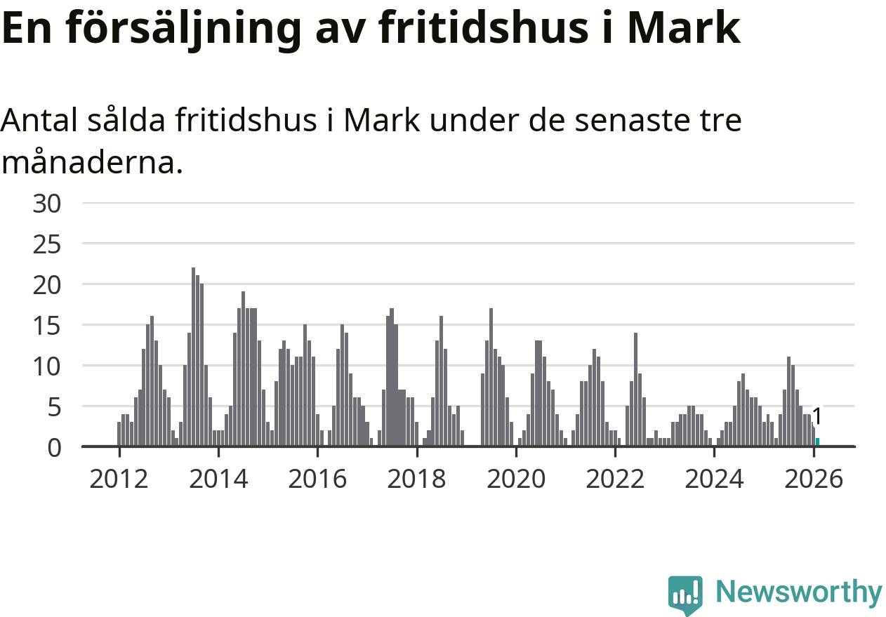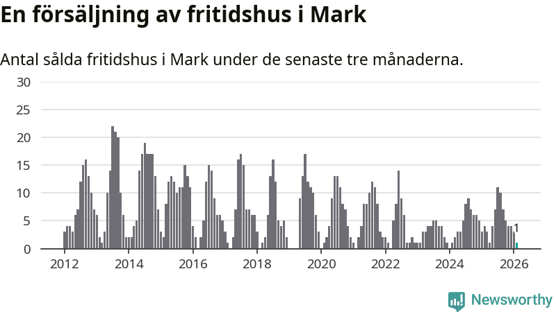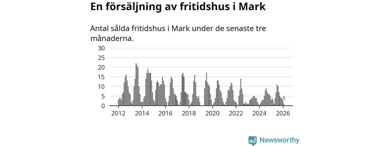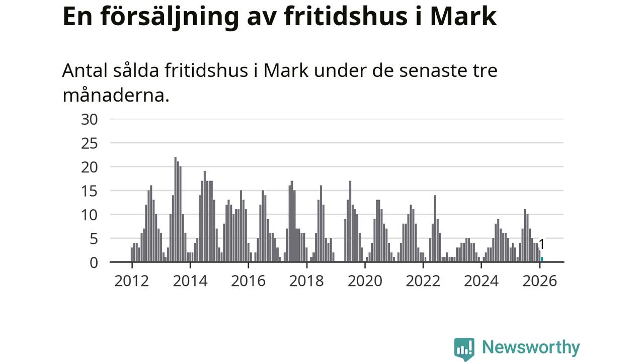 Mellan december och februari gjordes sammanlagt en affär med fritidshus i Marks kommun. Det kan jämföras med fyra vid motsvarande tid i fjol.