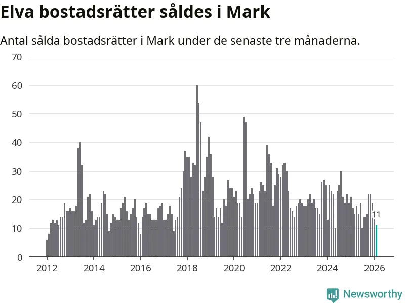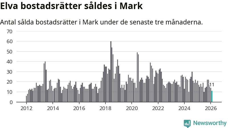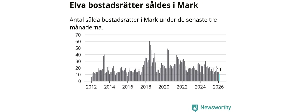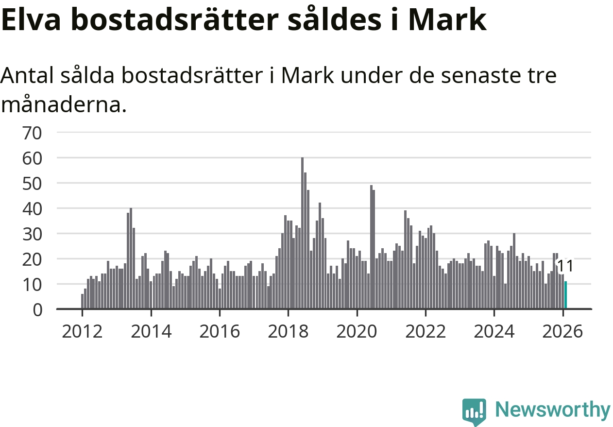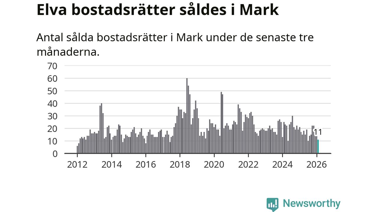 Mellan december och februari gjordes sammanlagt elva affärer med bostadsrätter i Marks kommun. Det kan jämföras med 17 vid motsvarande tid i fjol.