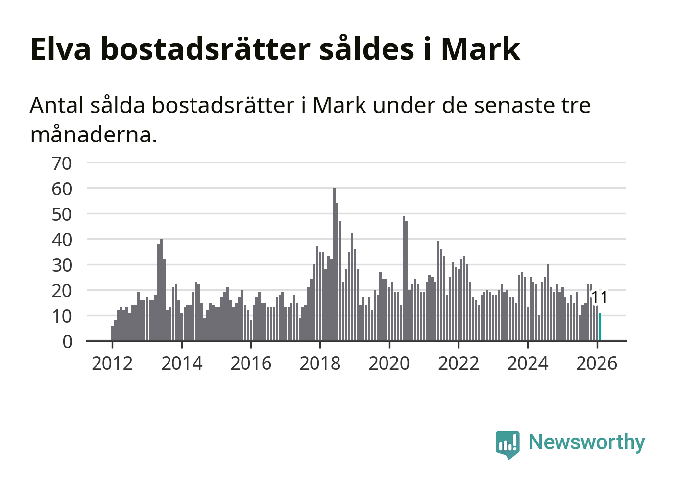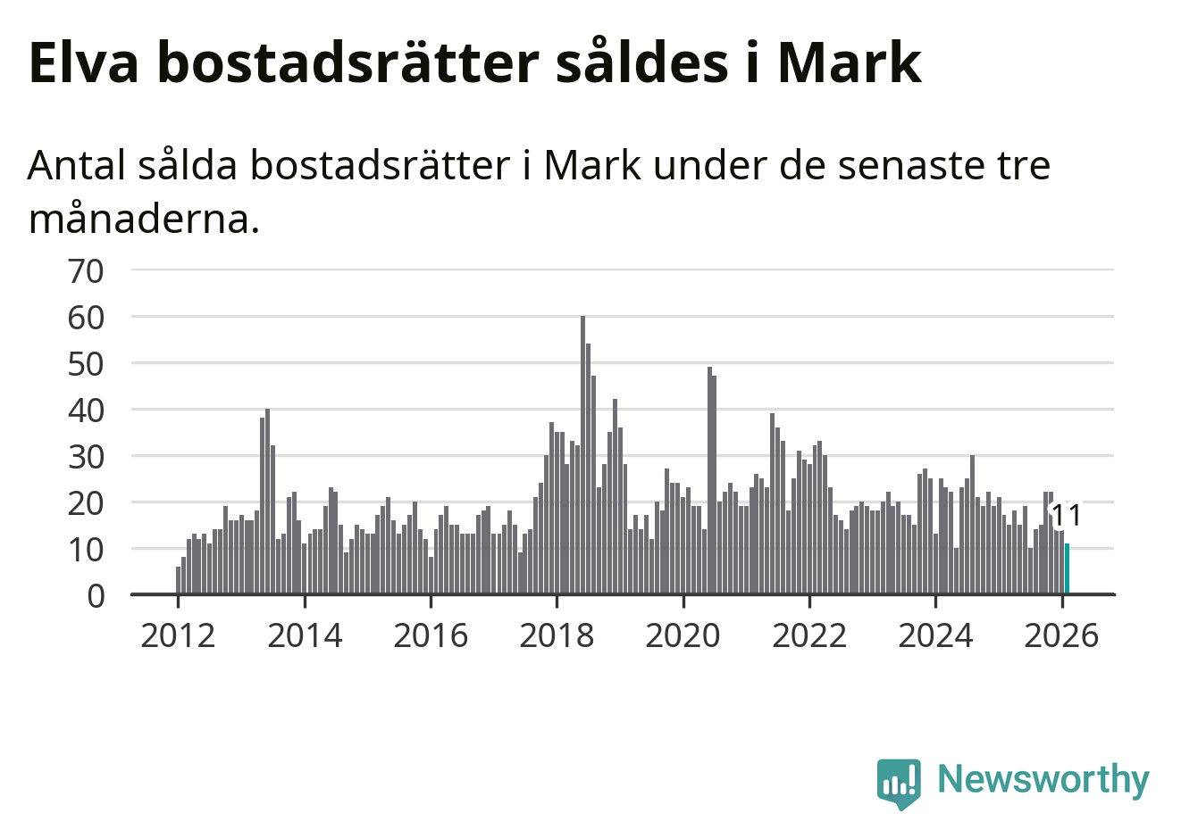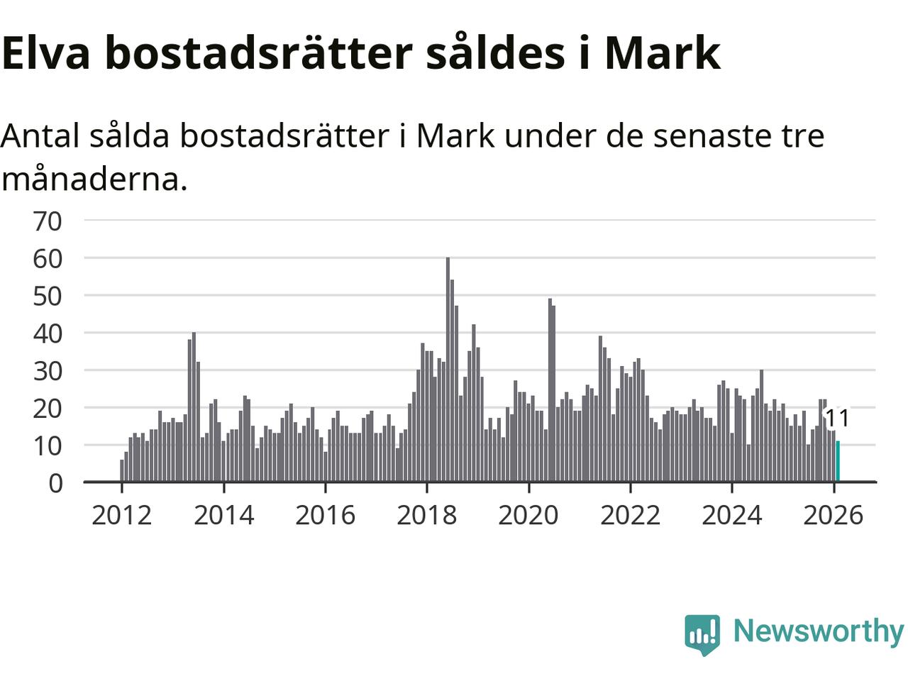 Mellan december och februari gjordes sammanlagt elva affärer med bostadsrätter i Marks kommun. Det kan jämföras med 17 vid motsvarande tid i fjol.
