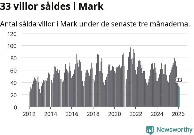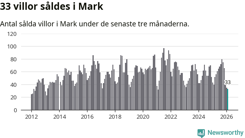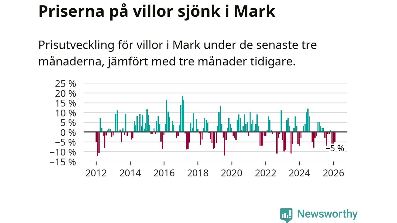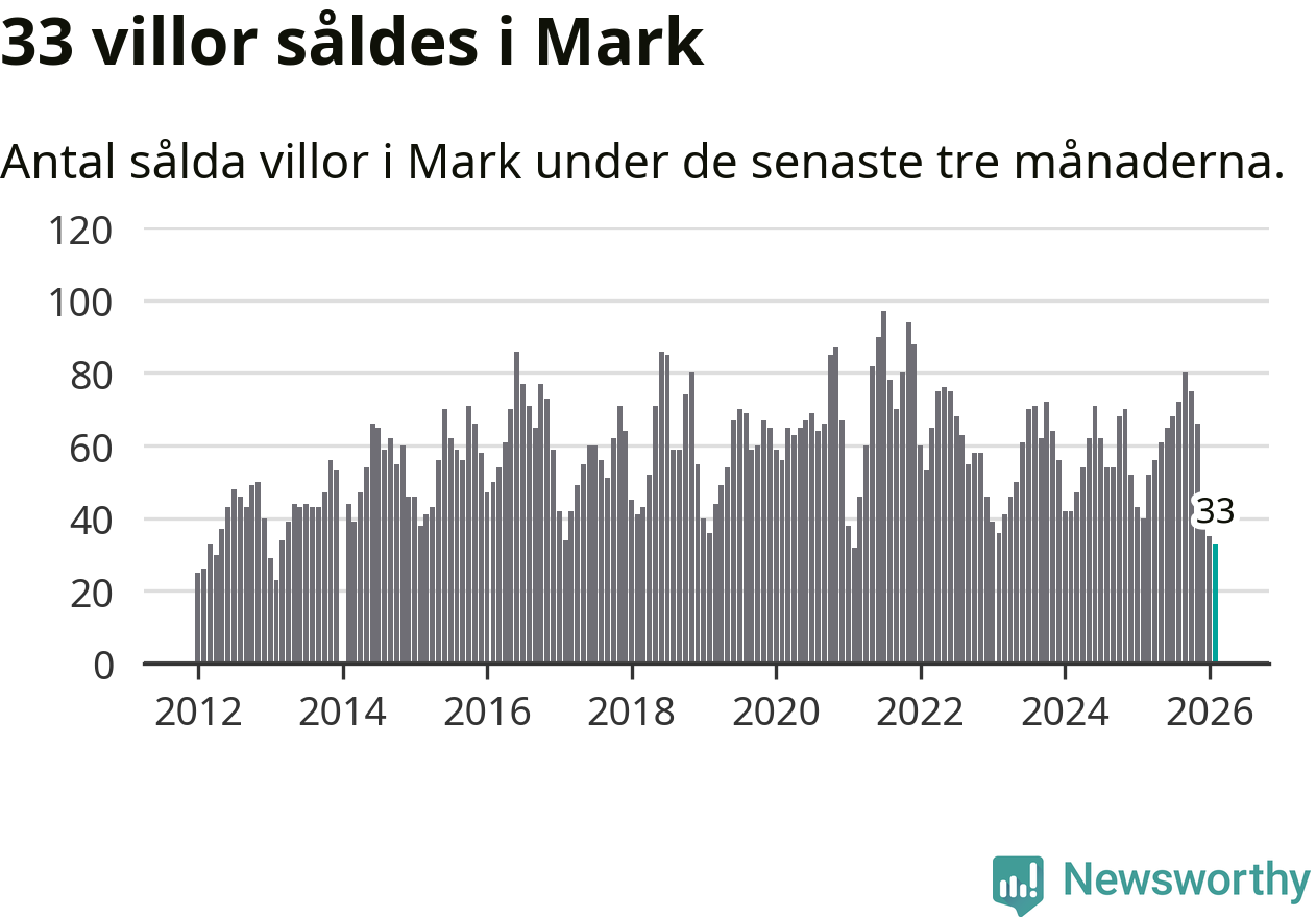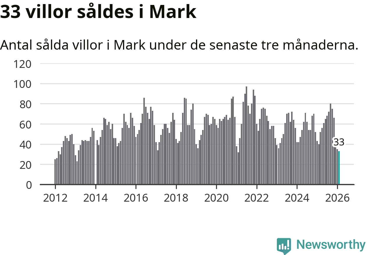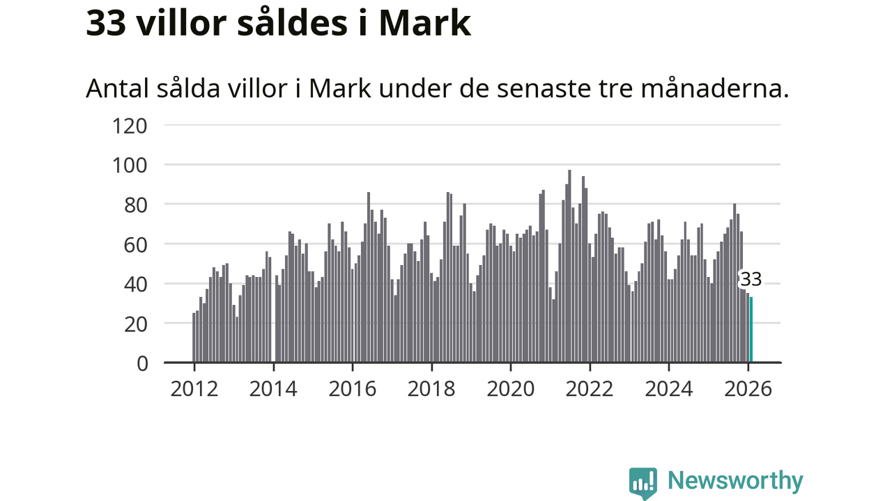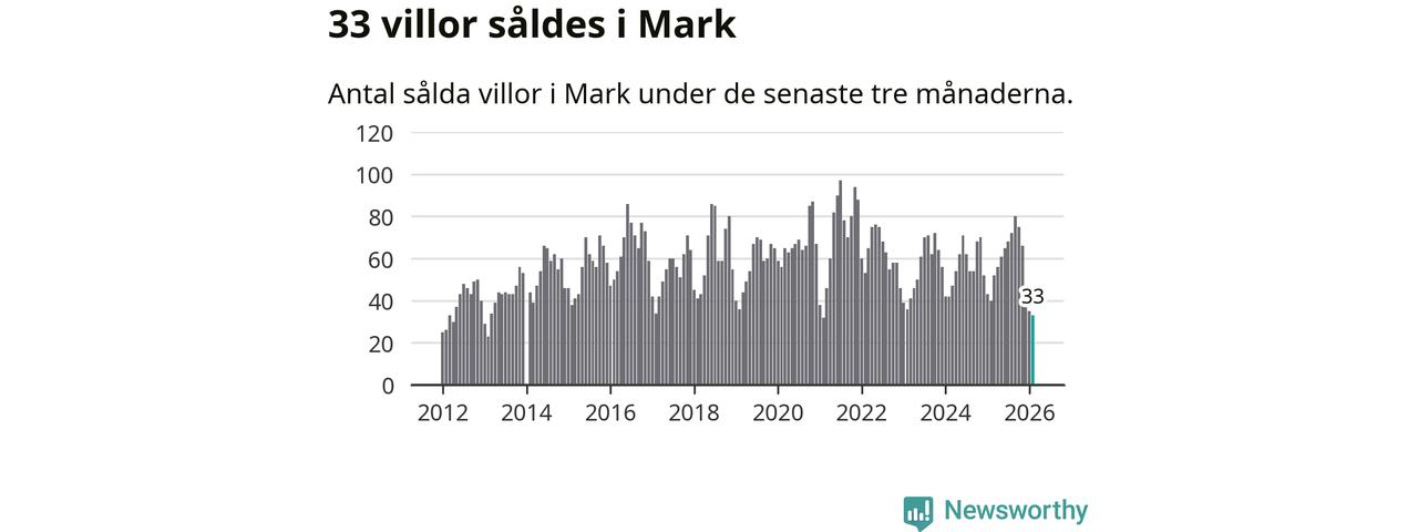 Mellan december och februari såldes 33 villor i Marks kommun. Det är färre än någon tremånadersperiod sedan 2021.