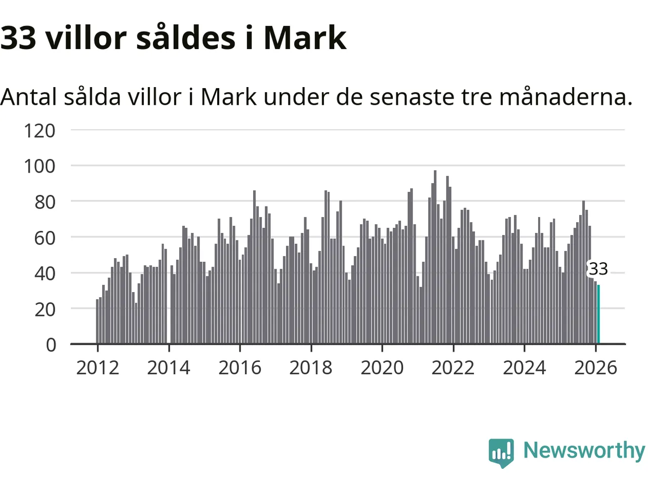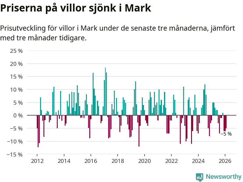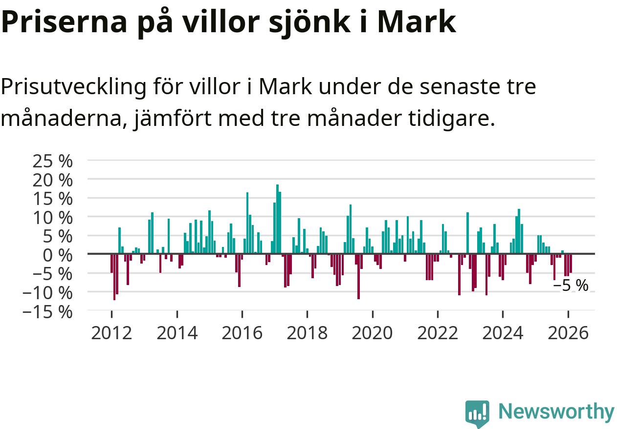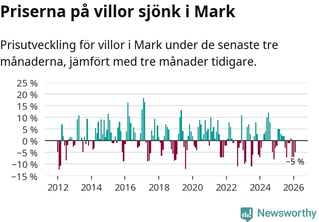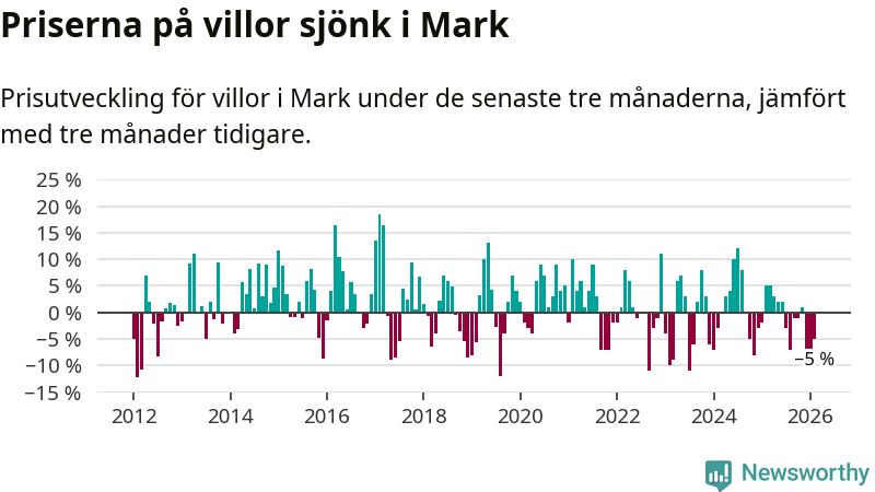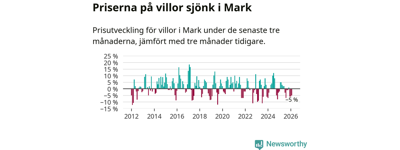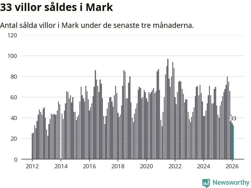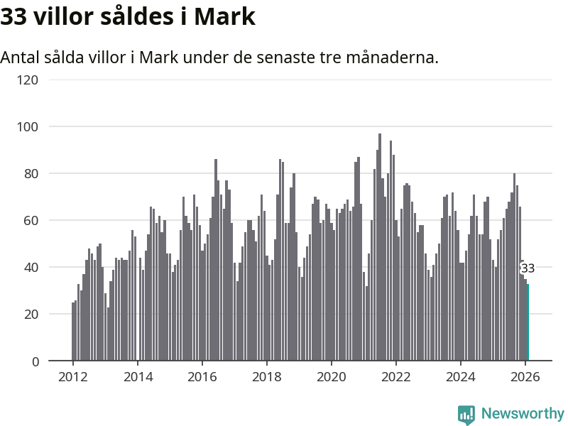 Mellan december och februari såldes 33 villor i Marks kommun. Det är färre än någon tremånadersperiod sedan 2021.