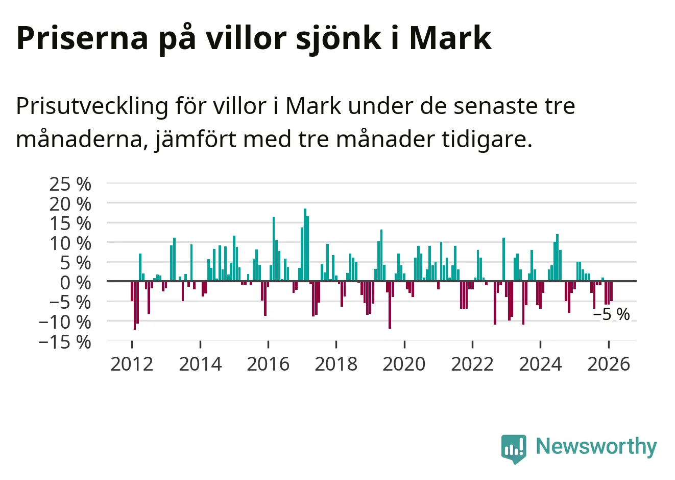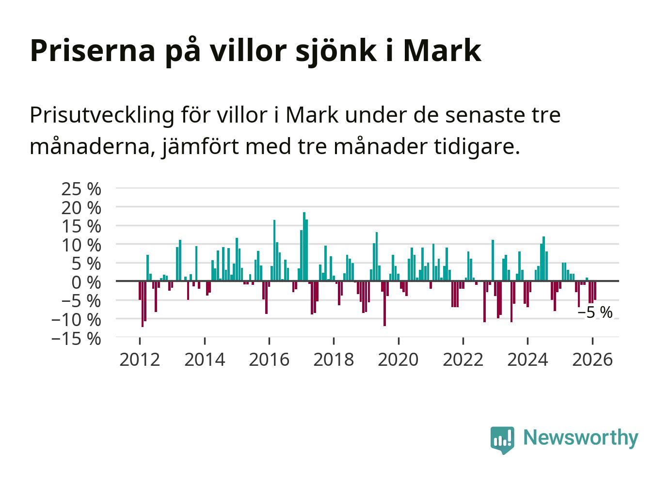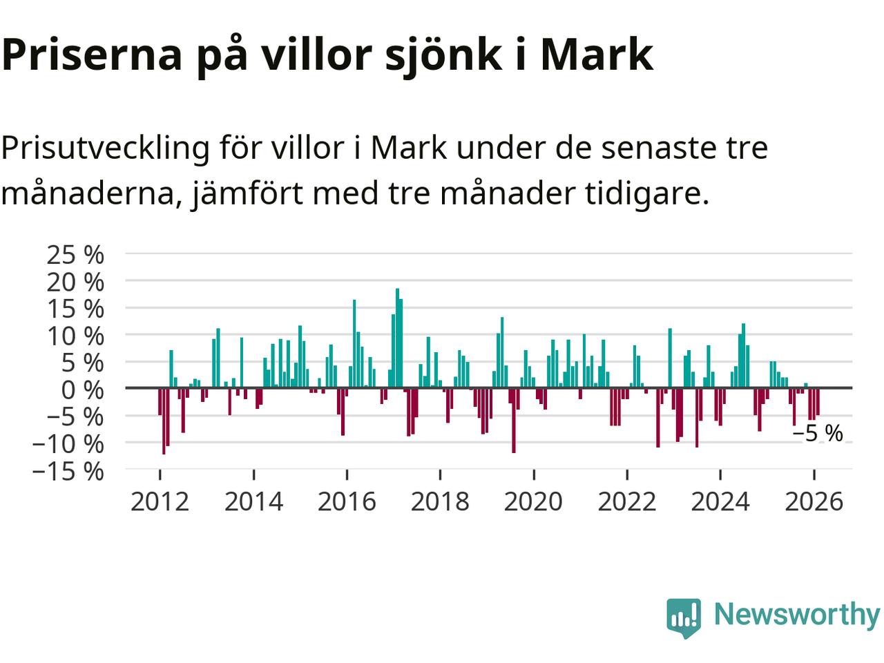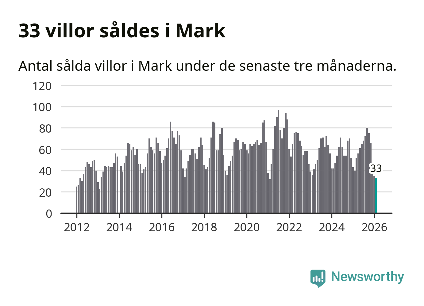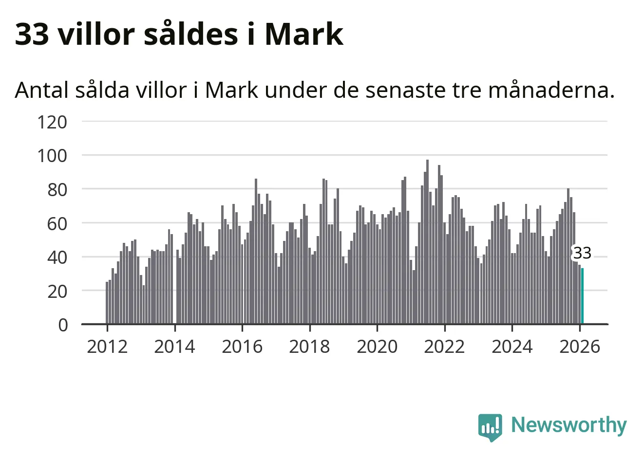 Mellan december och februari såldes 33 villor i Marks kommun. Det är färre än någon tremånadersperiod sedan 2021.