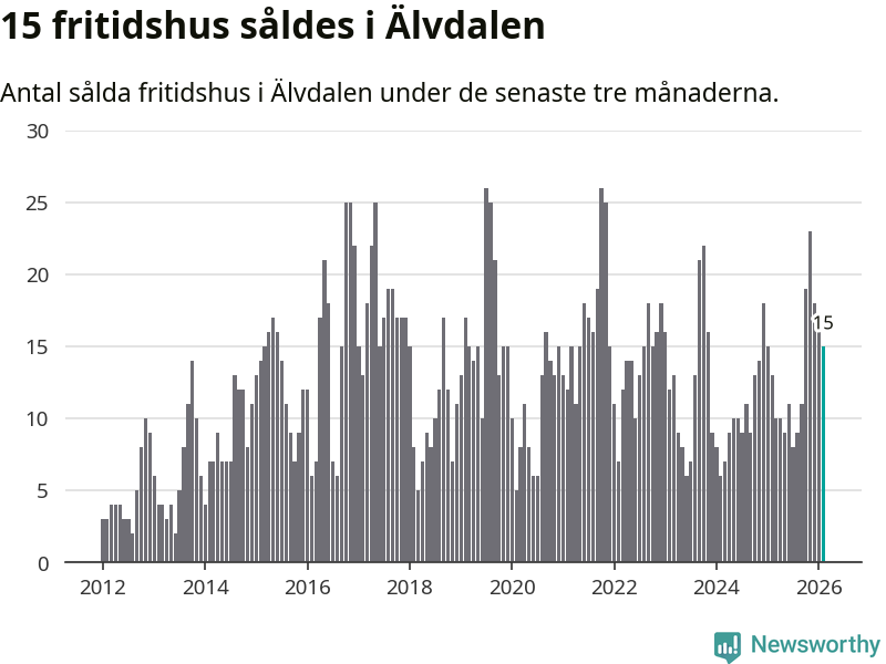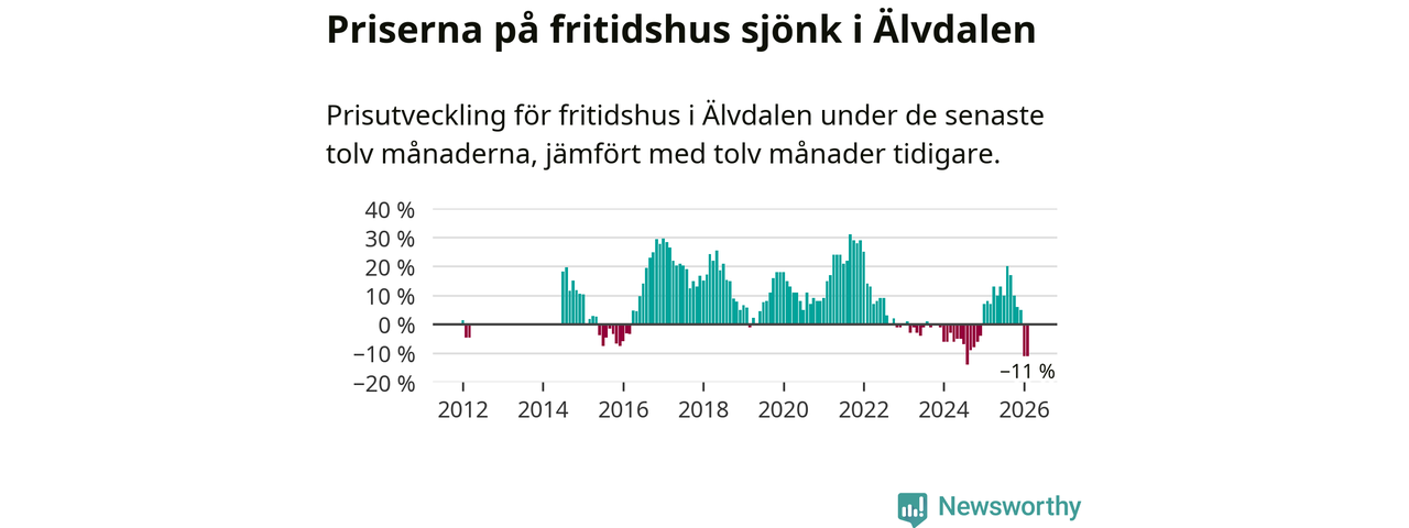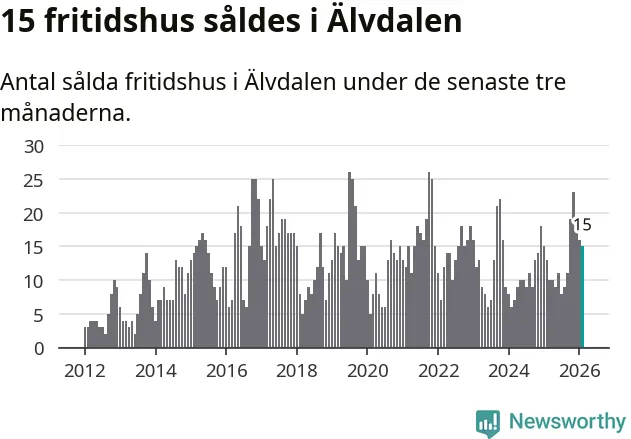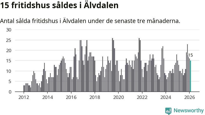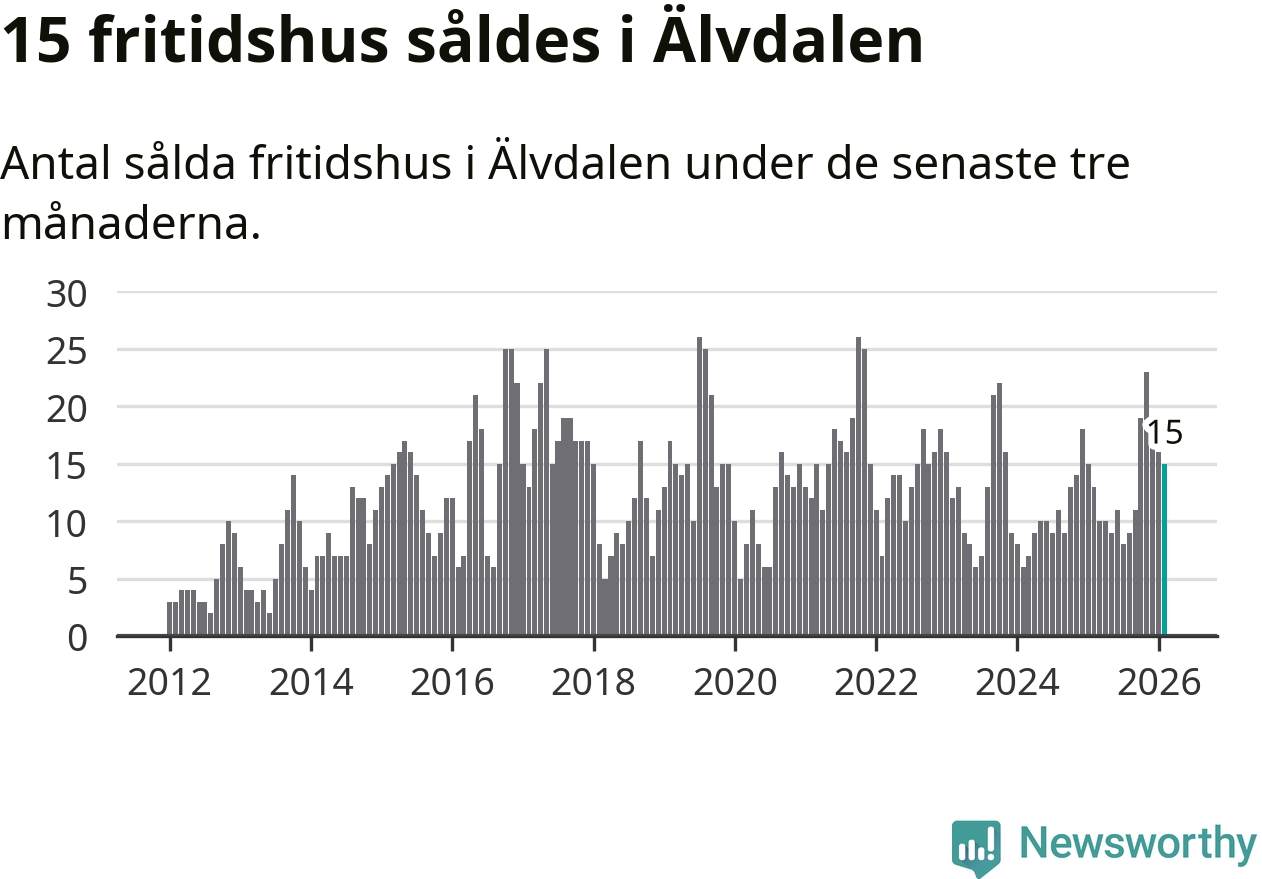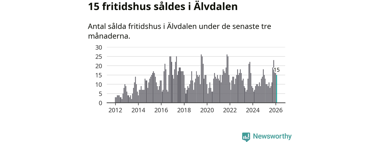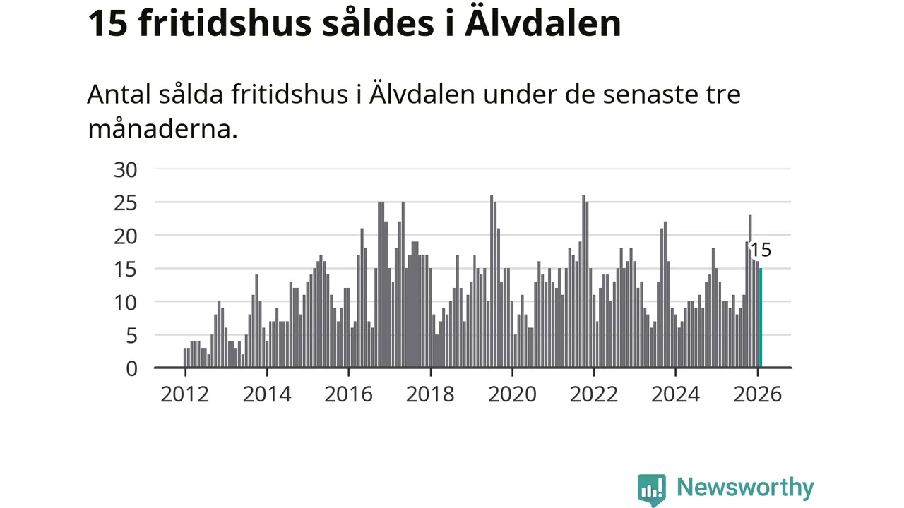 Sammanlagt såldes 15 fritidshus i Älvdalens kommun mellan december 2025 och februari till ett genomsnittligt pris på 2,6 miljoner kronor. I fjol gjordes 13 affärer vid den här tiden på året.